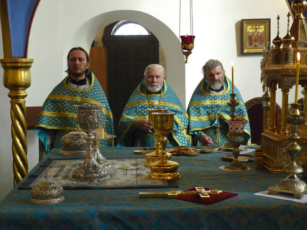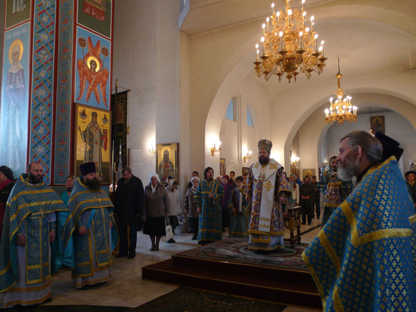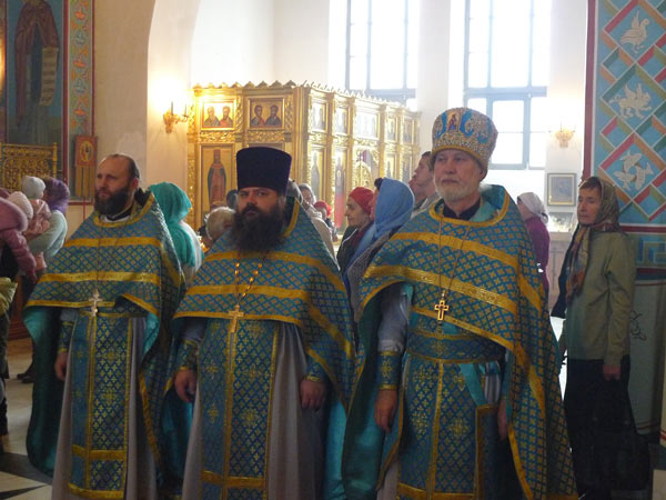 Владыке сослужили секретарь епархиального управления, настоятель собора протоиерей Сергий Тимонов, протоиереи Димитрий Ляпустин и Александр Фоминых, священники Иоанн Комаров, Сергий Максименко и Алексий Сорокин.