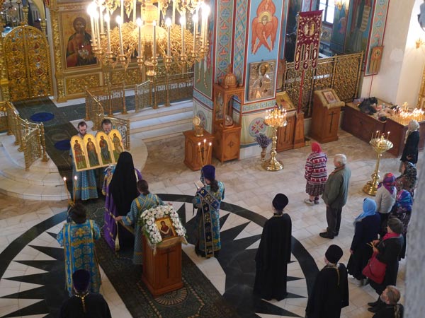 Завершая богослужения, архипастырь произнес слово, в котором рассказал о событии явления Божией Матери, покрывающей людей Своим Честным Покровом, бывшем во Влахернском храме в Константинополе и о особом почитании этого праздника в Русской Православной Церкви.