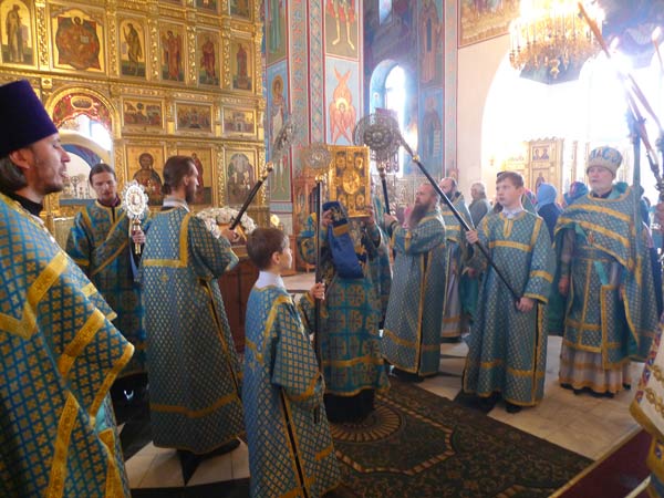 14 октября 2015 года, в день праздника Покрова Пресвятой Богородицы, память апостола от 70-ти Анании и преподобного Романа Сладкопевца, Преосвященный архиепископ Абаканский и Хакасский Ионафан совершил праздничную Божественную Литургию в Спасо-Преображенском кафедральном соборе.