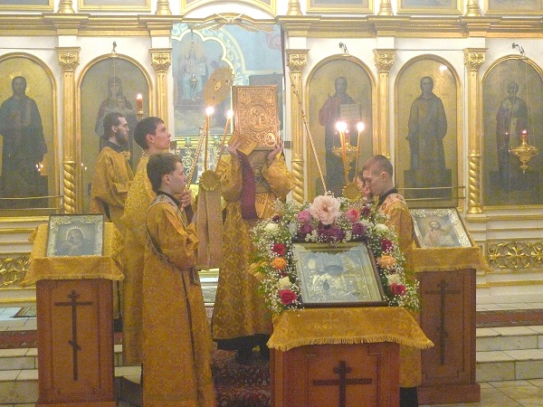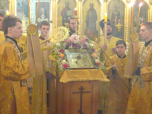 На полиелее перед празднично украшенной иконой, освященной на мощах святого, было пропето величание святителю Николаю.