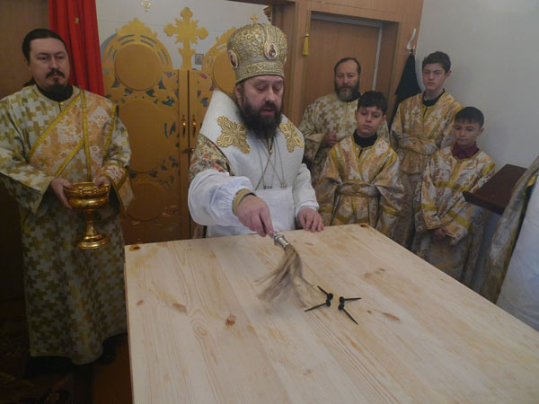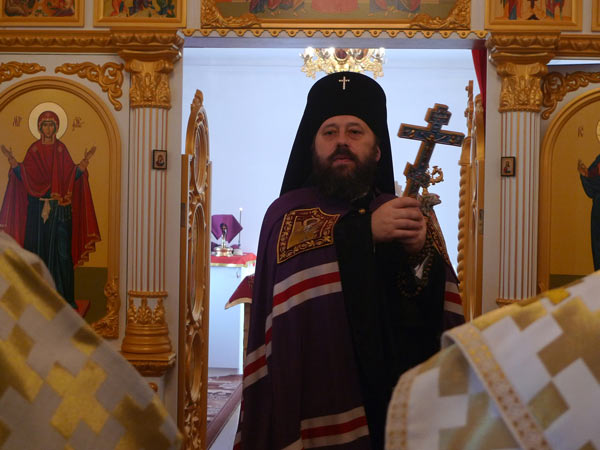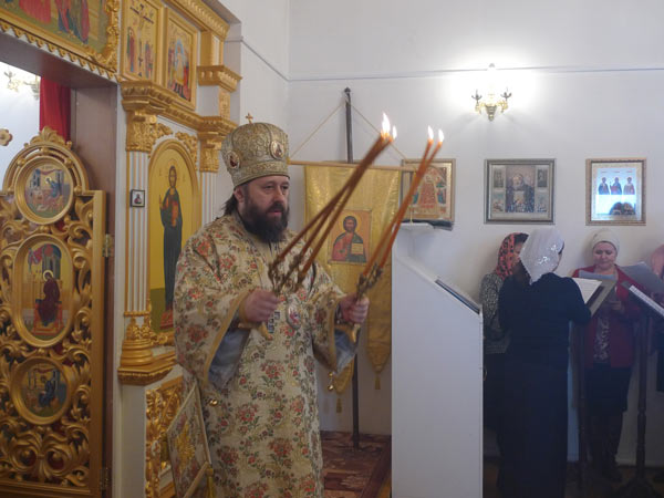Владыке сослужили протоиерей Вадим Меньшов и священник Павел Кузьмин, диаконский чин составили протодиакон Андрей Ермаков, диаконы Дионисий Ворошилов и Борис Дьячков. Богослужебные песнопения исполнила группа архиерейского хора под управлением Марии Ермаковой.
