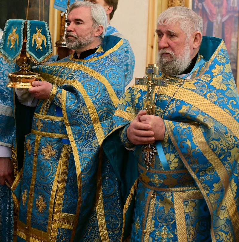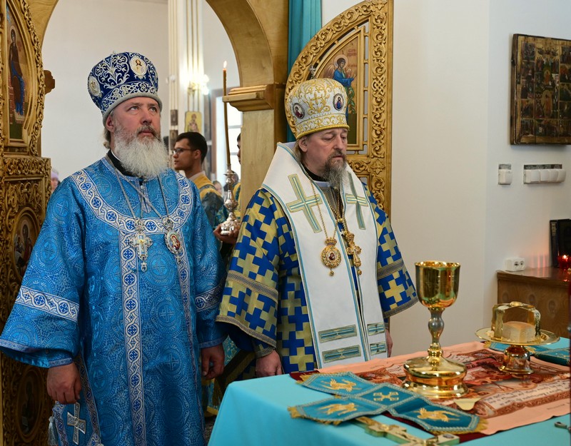 Высокопреосвященнейшим владыкам сослужили настоятель Преображенского кафедрального собора города Белгорода протоиерей Олег Кобец и клирики Белогородской епархии; благочинный Первого районного округа протоиерей Герман Кузнецов, секретарь Иркутской епархии священник Стефан Бажков, настоятель храма священник Даниил Рудь и клирики Иркутской епархии.