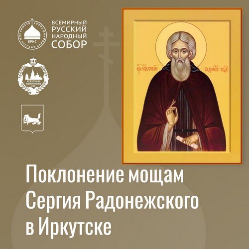 Ковчег с частью мощей святого преподобного Сергия Радонежского прибудет в Иркутскую митрополию 27 июня 2022 года в рамках всероссийского крестного хода, посвященного 600-летию обретения мощей Сергия Радонежского – одного из самых почитаемых на Руси святых. Святыня пробудет в Иркутске в течение двух дней: с 27 по 28 июня 2022 года.