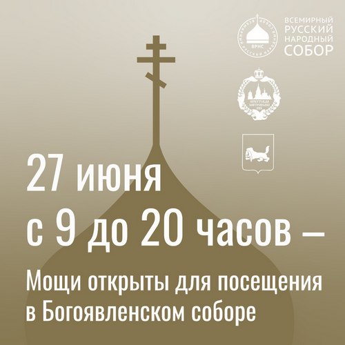 В 9.00 утра следующего дня, 28 июня 2022 года, в соборе Богоявления состоится Архиерейская литургия, а в 11.00 утра верующие смогут присоединиться к Крестному ходу, который пройдет с мощами от Богоявленского до Харлампиевского храма.