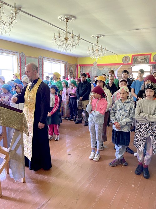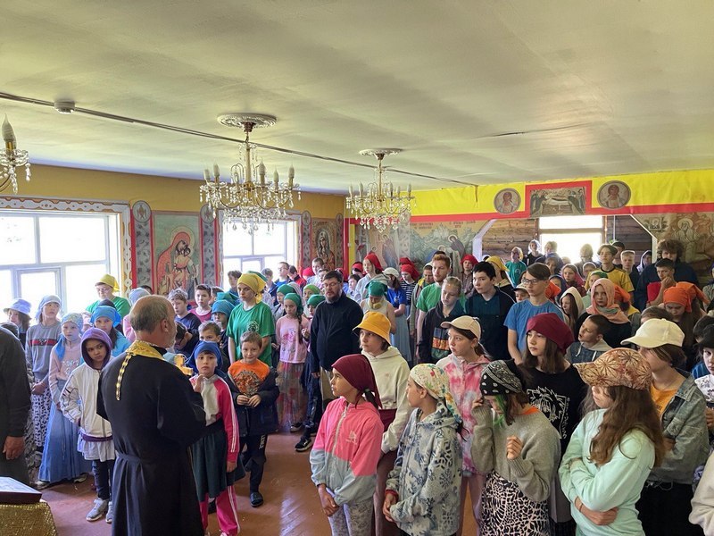 11 июля, в канун праздника первоверховных апостолов Петра и Павла, митрополит Максимилиан принял участие в вечернем богослужении в лагерном храме во имя преподобного Серафима Саровского: читал паремии, помогал вожатым петь на клиросе, а также обратился ко всем насельникам лагеря с вдохновенными словами проповеди.
