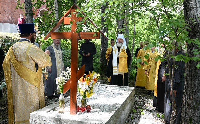 После митрополит Максимилиан отслужил заупокойную литию на могиле протоиерея Анатолия Медведева, которая находится на территории храма.