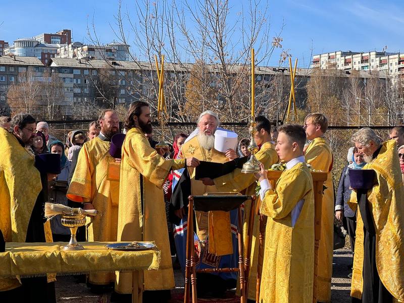 Возглавил молебен митрополит Иркутский и Ангарский Максимилиан. По окончании молебна было возглашено многолетие, после чего владыка окропил территорию будущей стройки святой водой и обратился к многочисленным верующим, которые пришли помолиться о начале благого дела, с приветственным словом.