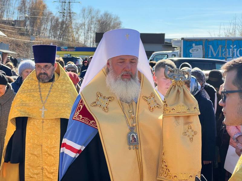 Первый молебен на месте строительства храма в Университетском возглавил митрополит Максимилиан