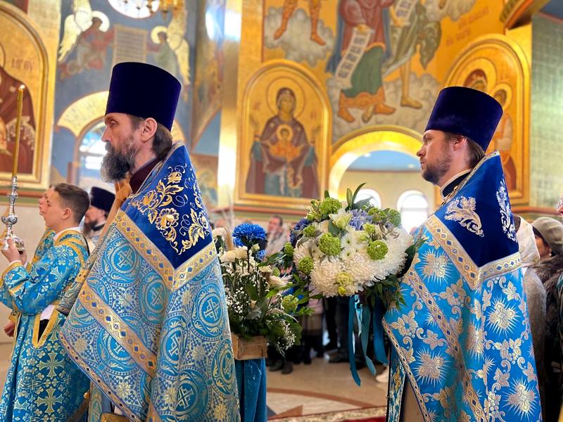 Со словами проповеди к прихожанам обратился священник Дионисий Василенко. Напомнив об исторических событиях праздника, настоятель храма призвал задуматься над вопросом, почему лишь блаженный Андрей и его ученик Епифаний удостоились увидеть Богородицу. Отец Дионисий подчеркнул, что это произошло потому, что, по всей вероятности, блаженный Андрей не только горячо молился в этот момент, как остальные горожане, но и был по-Евангельски чист сердцем.
