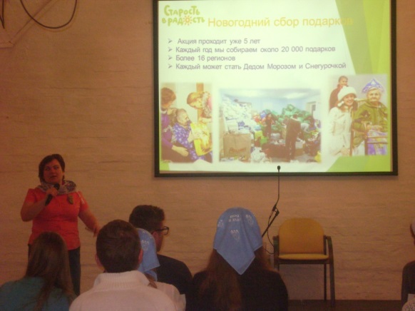 9.30 – 11.30 - встреча с А.И. Романовской (Директором по развитию благотворительного фонда помощи пожилым людям и инвалидам «Старость в радость»).