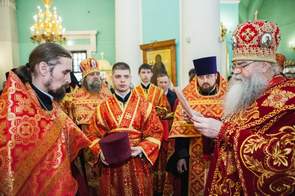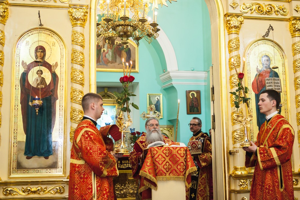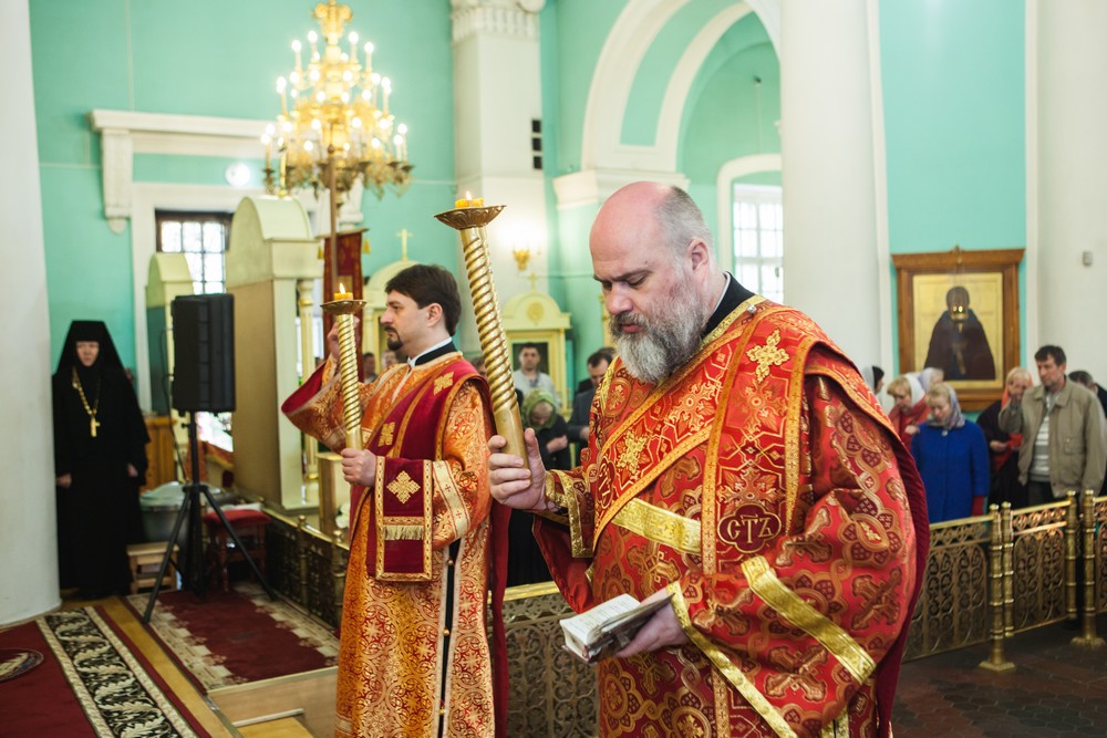После Евангелия, которое прочитал Владыка Константин, а также сугубой и просительной ектений священнослужители, антифонно с хором, исполнили стихиры Пасхи.