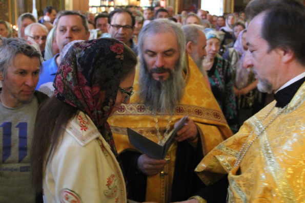 В канун престольного праздника Никольского собора на всенощном бдении настоятель храма протоиерей Иоанн Барсуков и директор курсов настоятель Новоиерусалимского архиерейского подворья иеромонах Роман (Модин) вручили 16 добровольцам епархиальные удостоверения с благословением митрополита Казанского и Татарстанского Феофана.