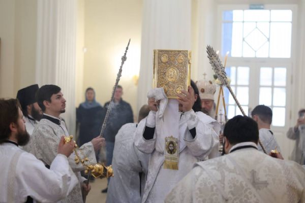 Песнопения исполнил архиерейский смешанный хор под управлением Марины Литвиненко. На мирной и сугубой ектениях были вознесены молитвы о Российском воинстве и о мире. За богослужением также возносились сугубые прошения об упокоении душ вождей и воинов, за веру и Отечество жизнь положивших.