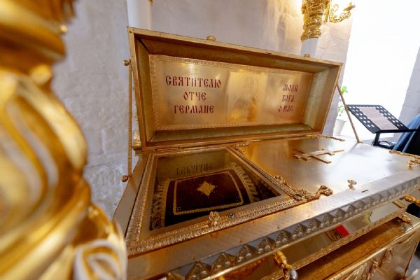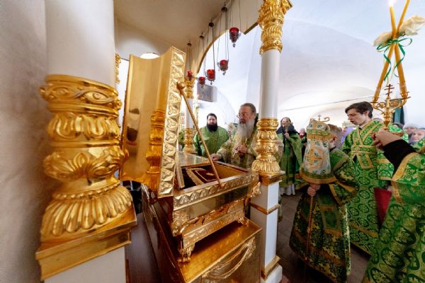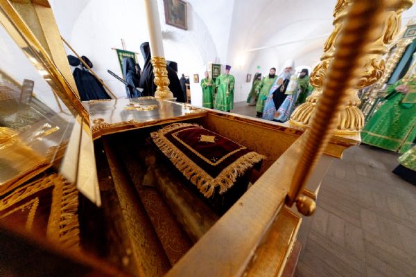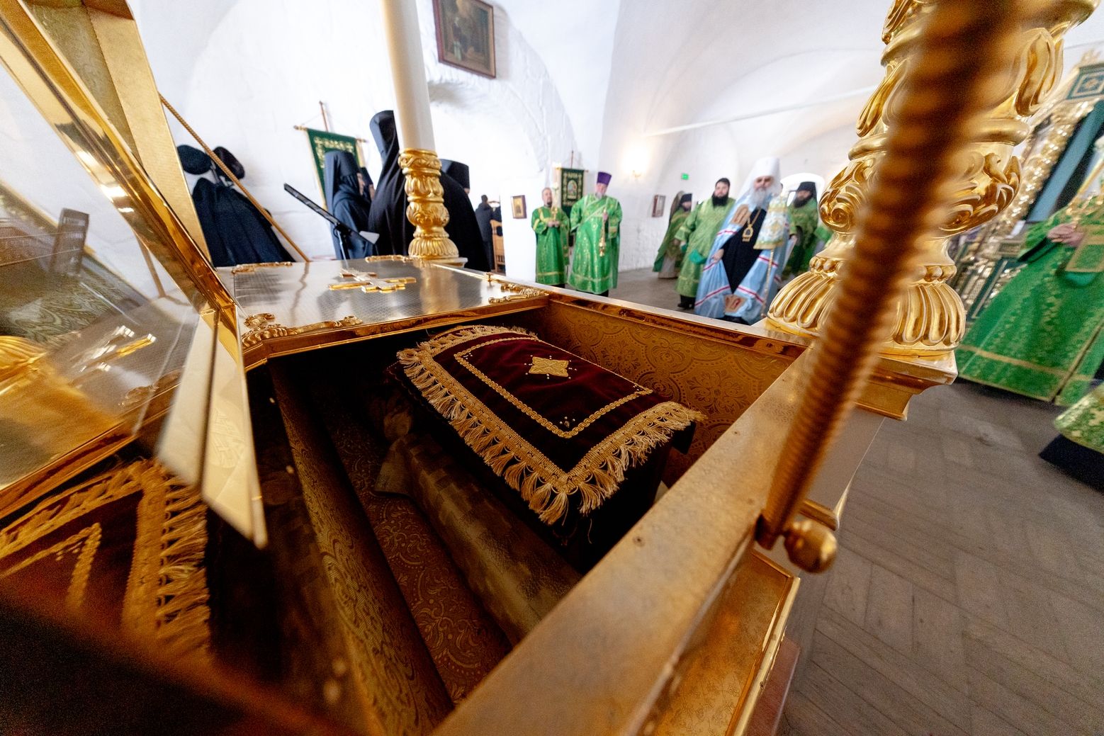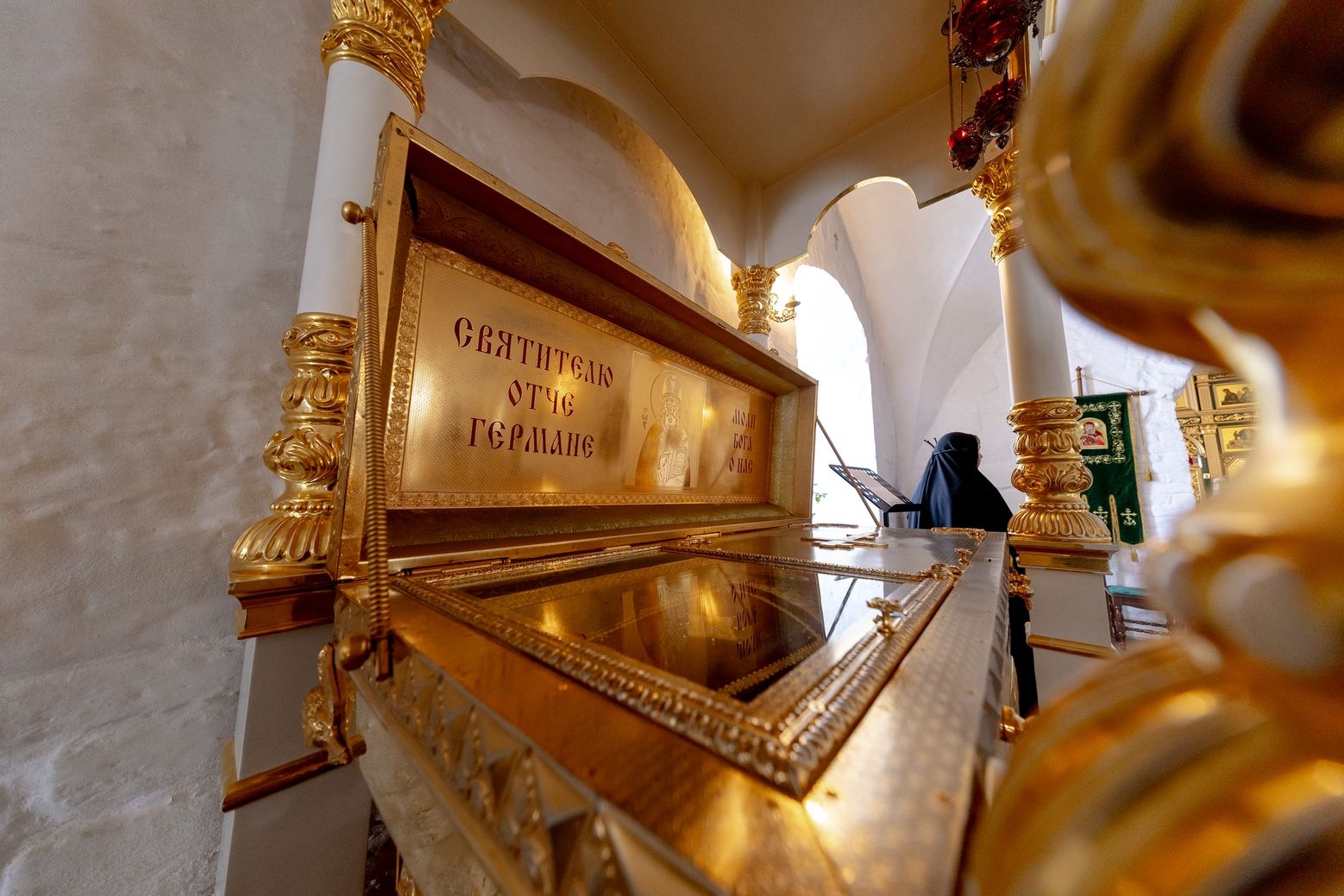 В завершение было совершено славление Всем преподобным отцам и матерям, в подвиге просиявшим. Духовенство пропело величание святителю Герману Казанскому перед ракой с мощами святого.