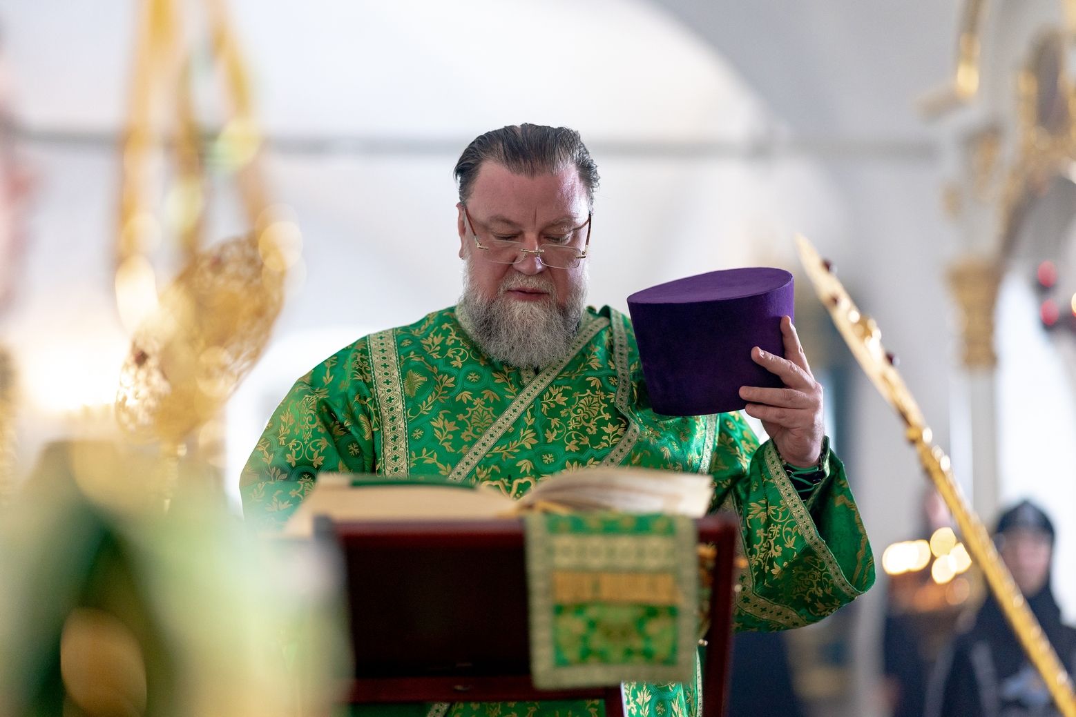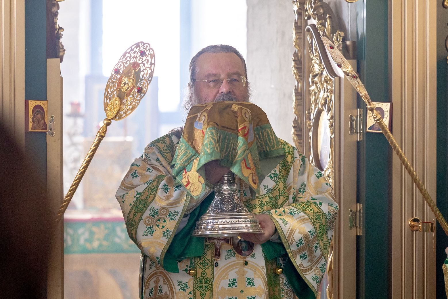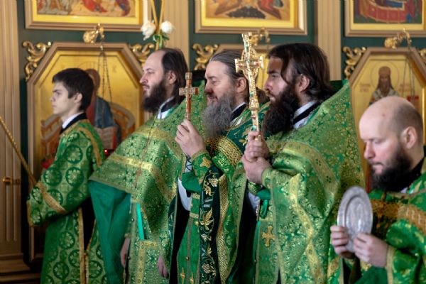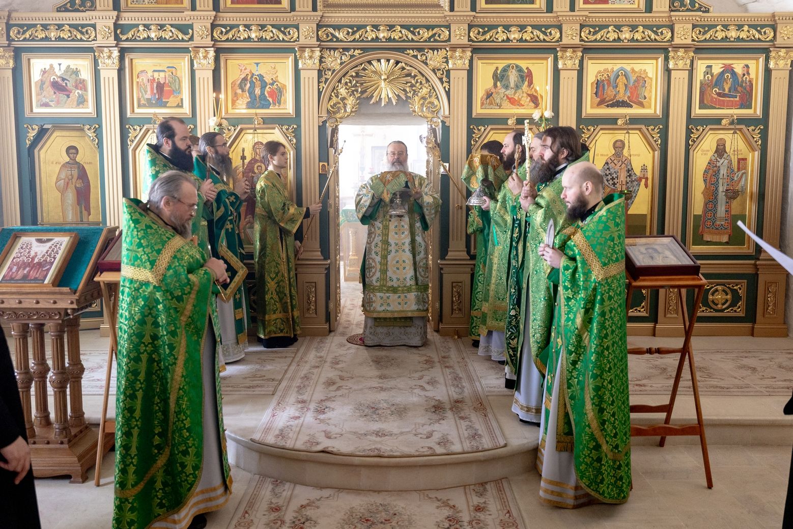 На мирной и сугубой ектениях были вознесены молитвы о Российском воинстве и о мире. По запричастном стихе проповедь произнёс наместник Вознесенского Макарьевского монастыря игумен Амвросий (Горновский).