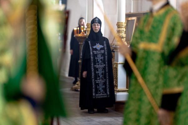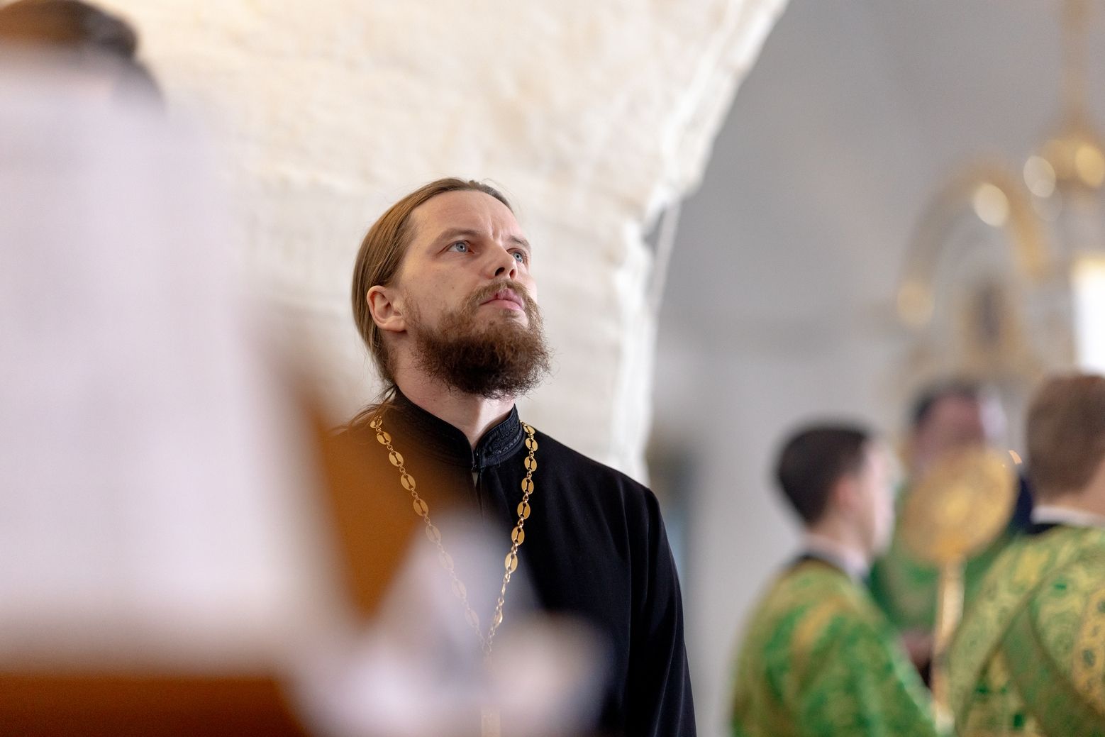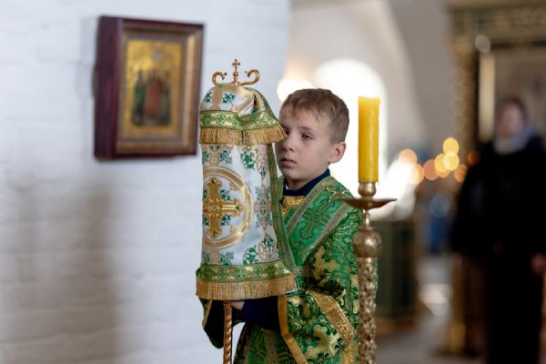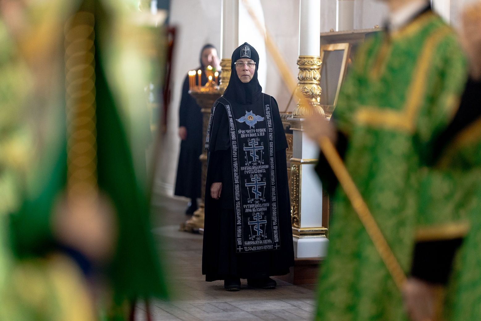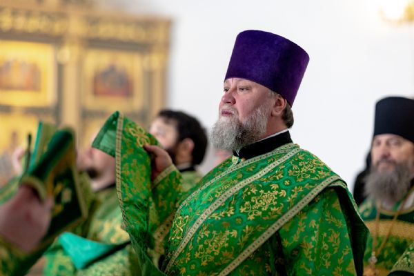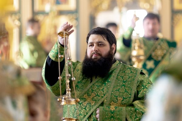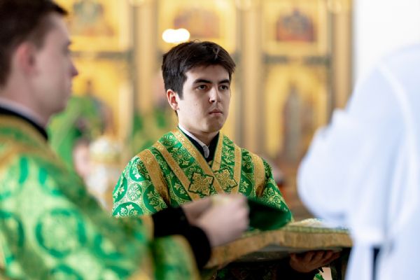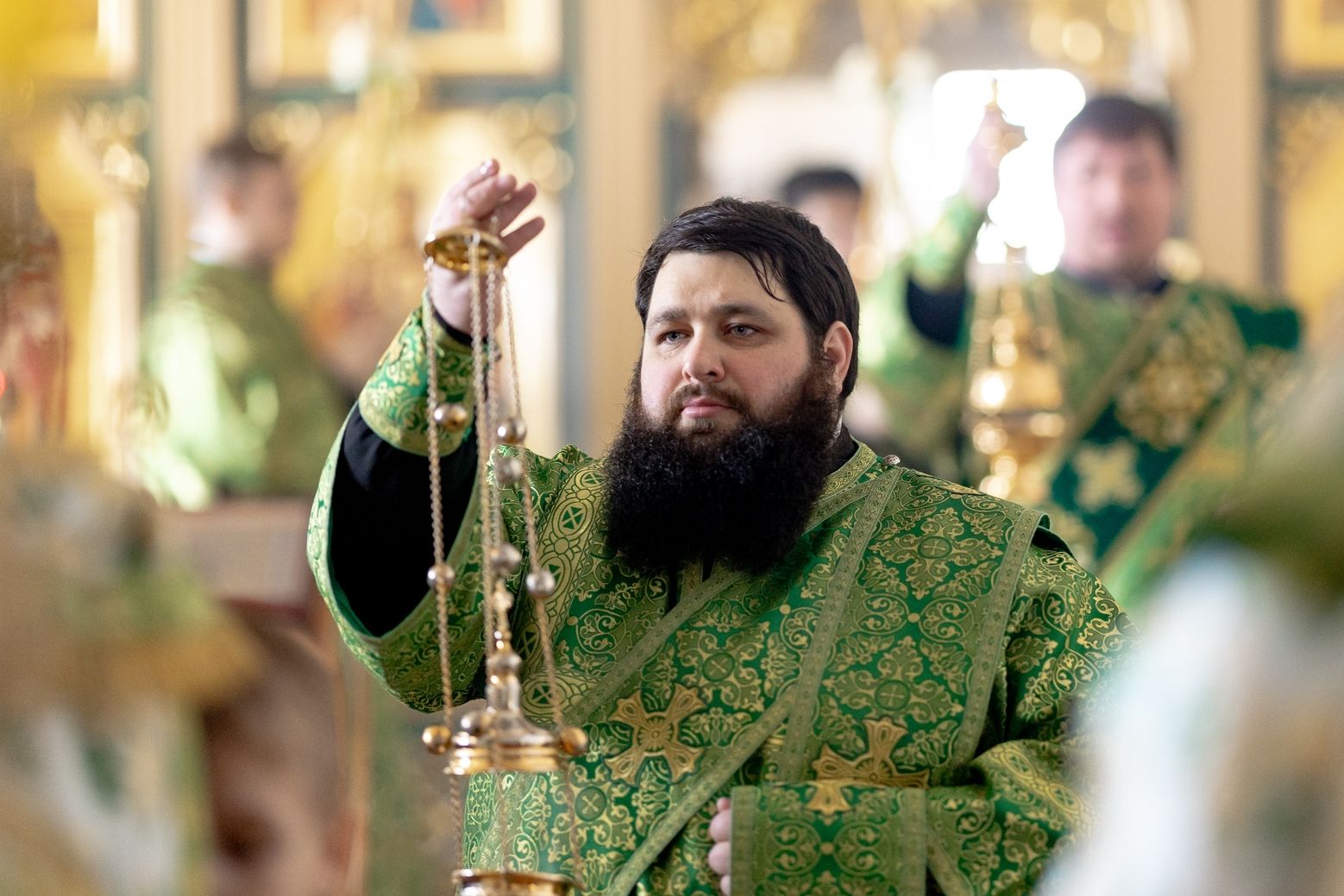 На мирной и сугубой ектениях были вознесены молитвы о Российском воинстве и о мире. По запричастном стихе проповедь произнёс наместник Вознесенского Макарьевского монастыря игумен Амвросий (Горновский).