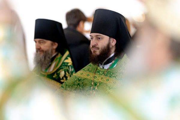 Его Высокопреосвященству сослужили секретарь Татарстанской митрополии иеромонах Кирилл (Корытко), наместник Свияжского Успенского монастыря игумен Аркадий (Логинов), наместник Казанского Богородицкого монастыря столицы Татарстана игумен Марк (Виленский), настоятель Кизического монастыря города Казани игумен Пимен (Ивентьев), настоятель Иоанно-Предтеченского монастыря города Казани игумен Алексий (Яцейко).