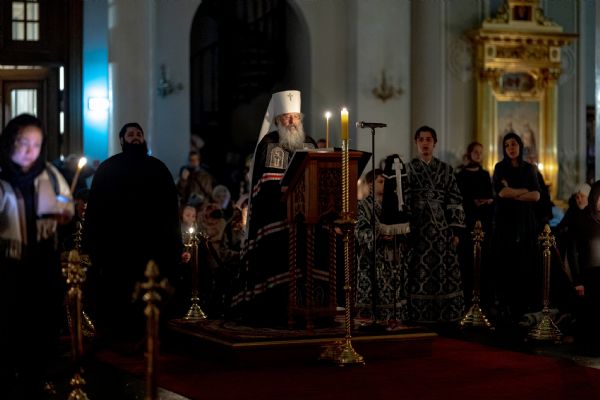 В понедельник первой седмицы Великого поста митрополит Кирилл совершил повечерие с чтением канона Андрея Критского в Казанском кафедральном соборе
