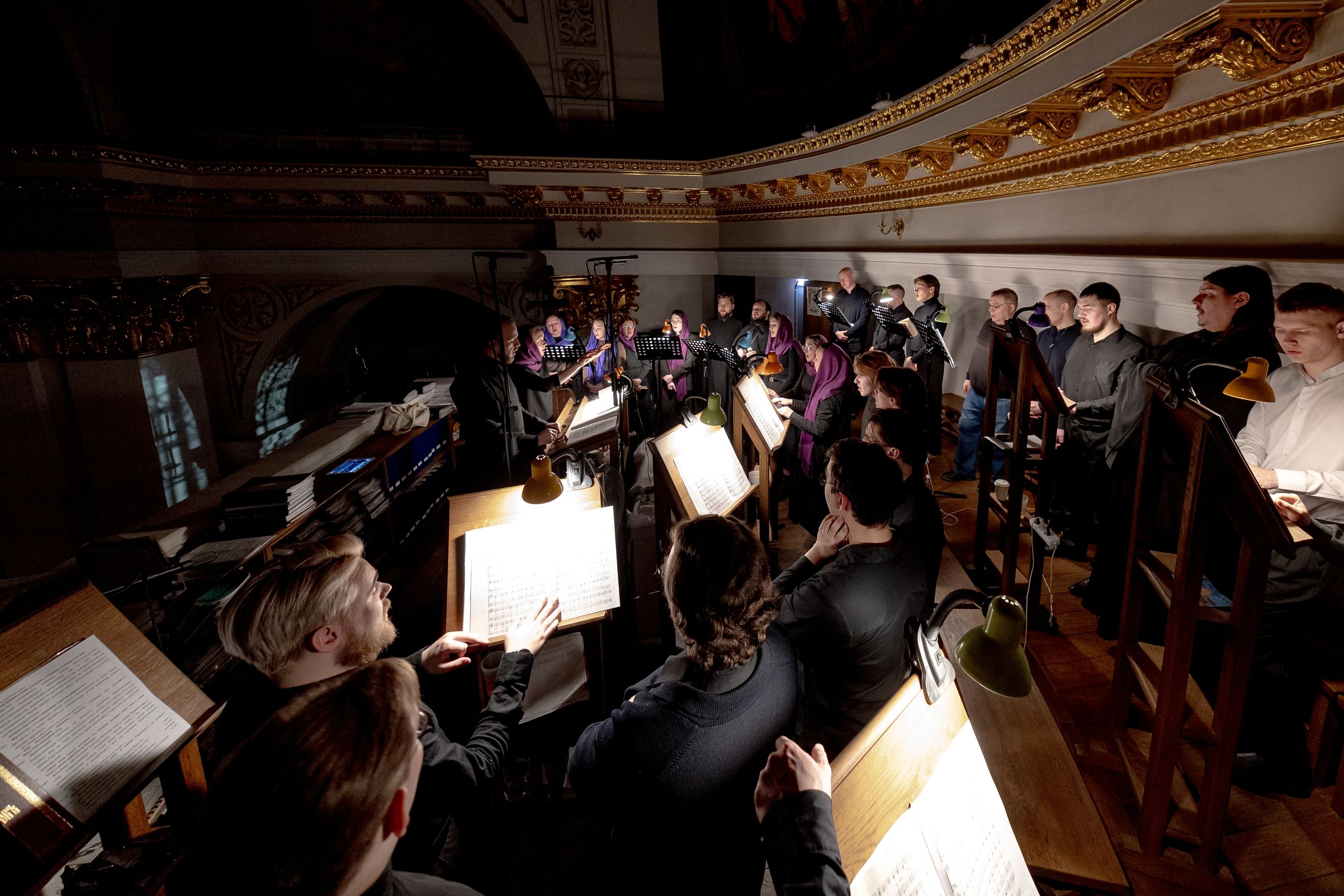 Песнопения исполнили архиерейский мужской хор под управлением Алексея Федотова и архиерейский смешанный хор под управлением Марины Литвиненко.