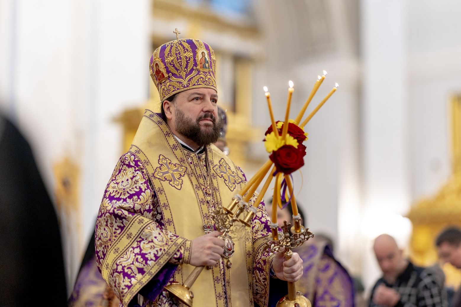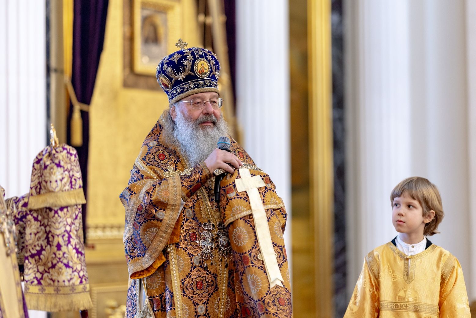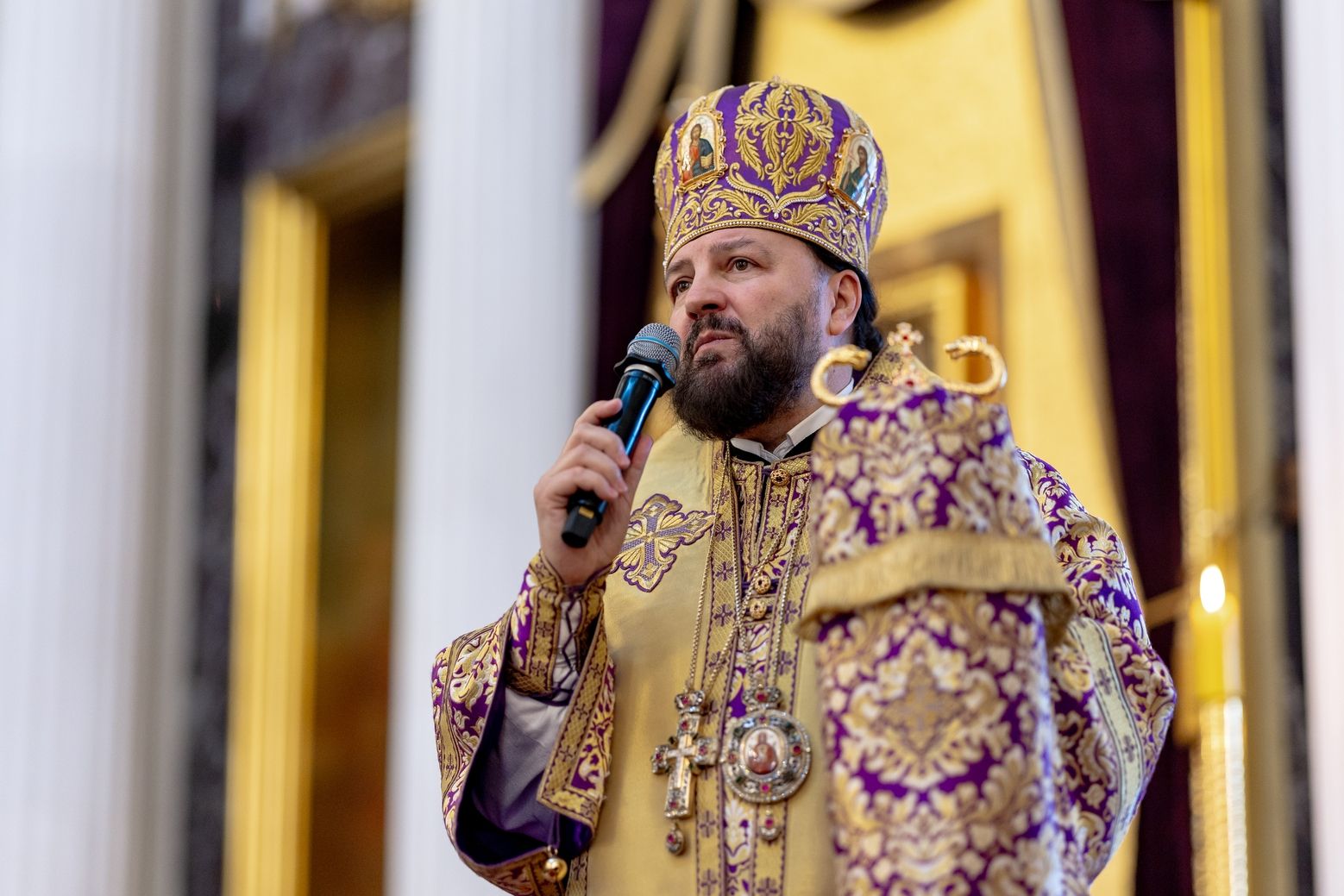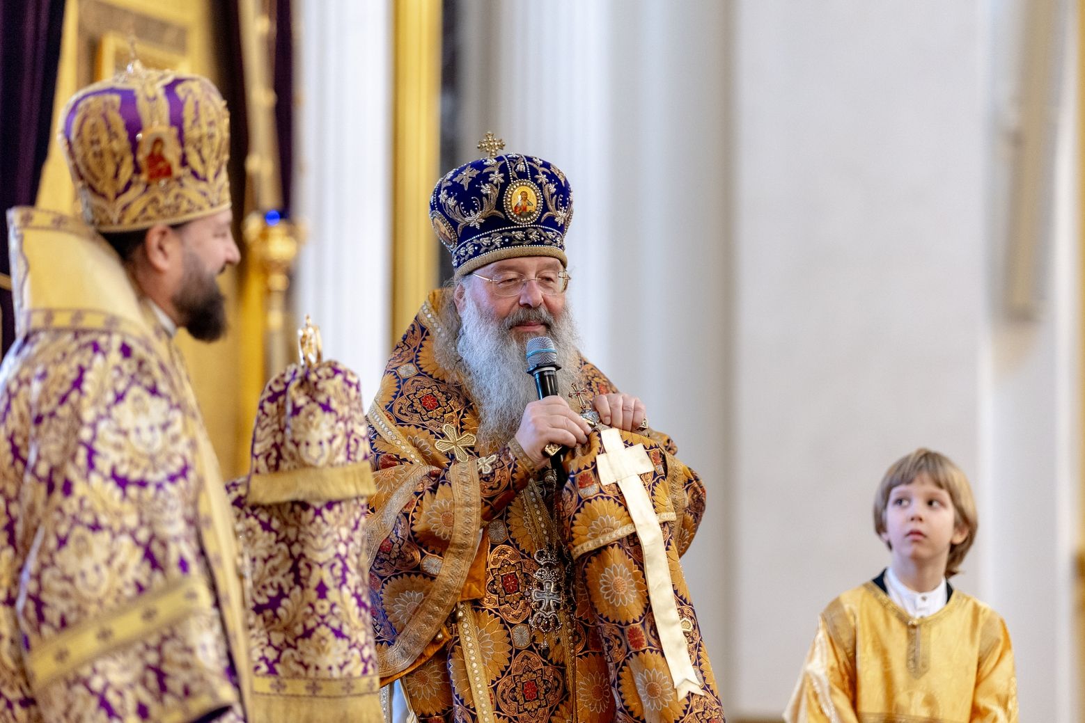 Для меня великая честь сегодня находиться в стенах кафедрального собора града Казани. Это не первое моё посещение вашего города по благословению владыки Кирилла, и я с удовольствием приезжаю поклониться казанским святыням. Сердечно благодарю вас за молитву обо мне, грешном, и за возможность разделить радость молитвенного общения вместе с вами и вашей паствой.