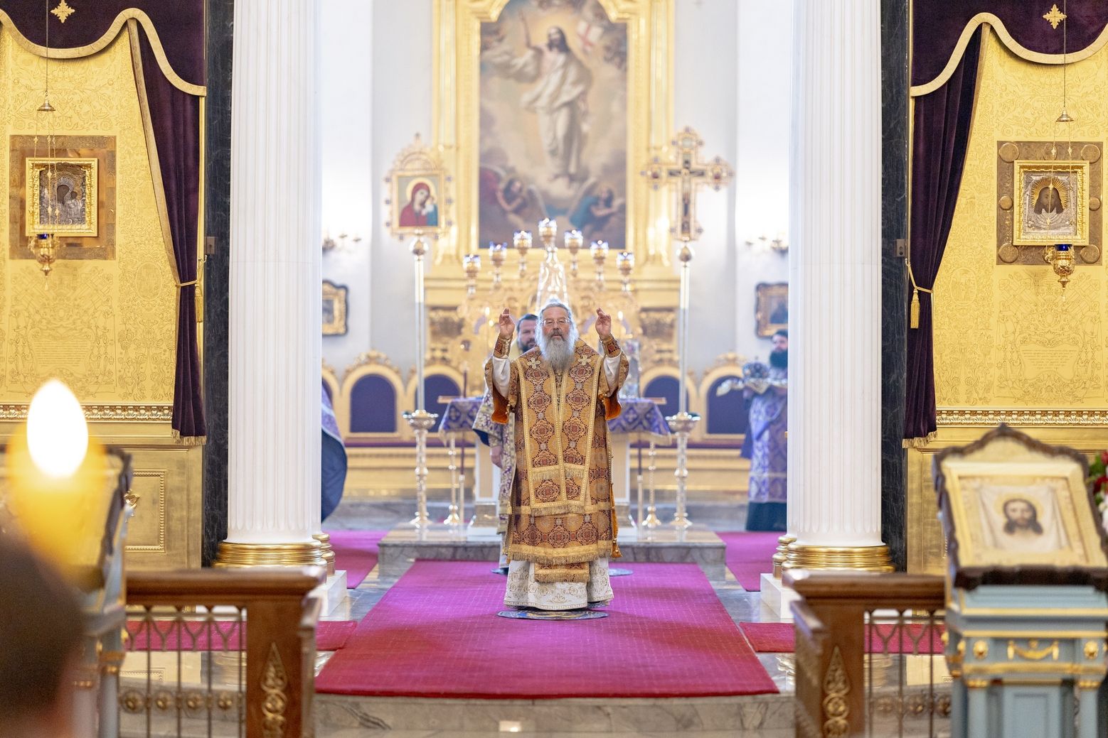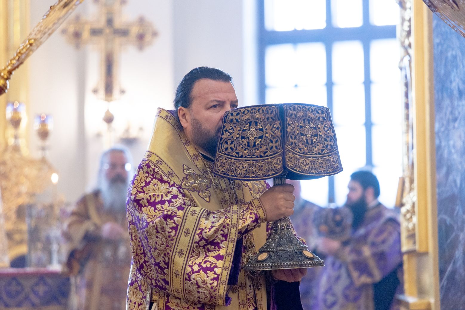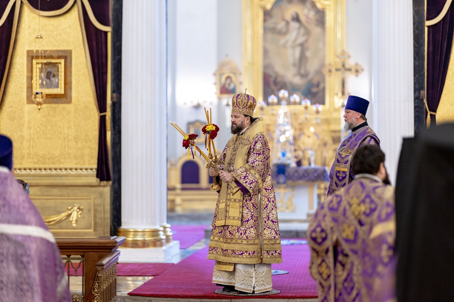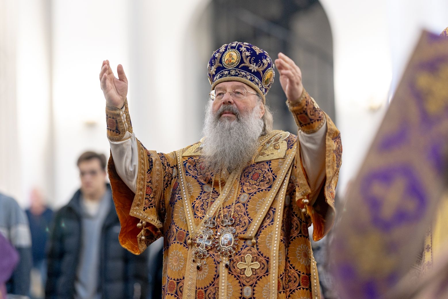 Для меня великая честь сегодня находиться в стенах кафедрального собора града Казани. Это не первое моё посещение вашего города по благословению владыки Кирилла, и я с удовольствием приезжаю поклониться казанским святыням. Сердечно благодарю вас за молитву обо мне, грешном, и за возможность разделить радость молитвенного общения вместе с вами и вашей паствой.