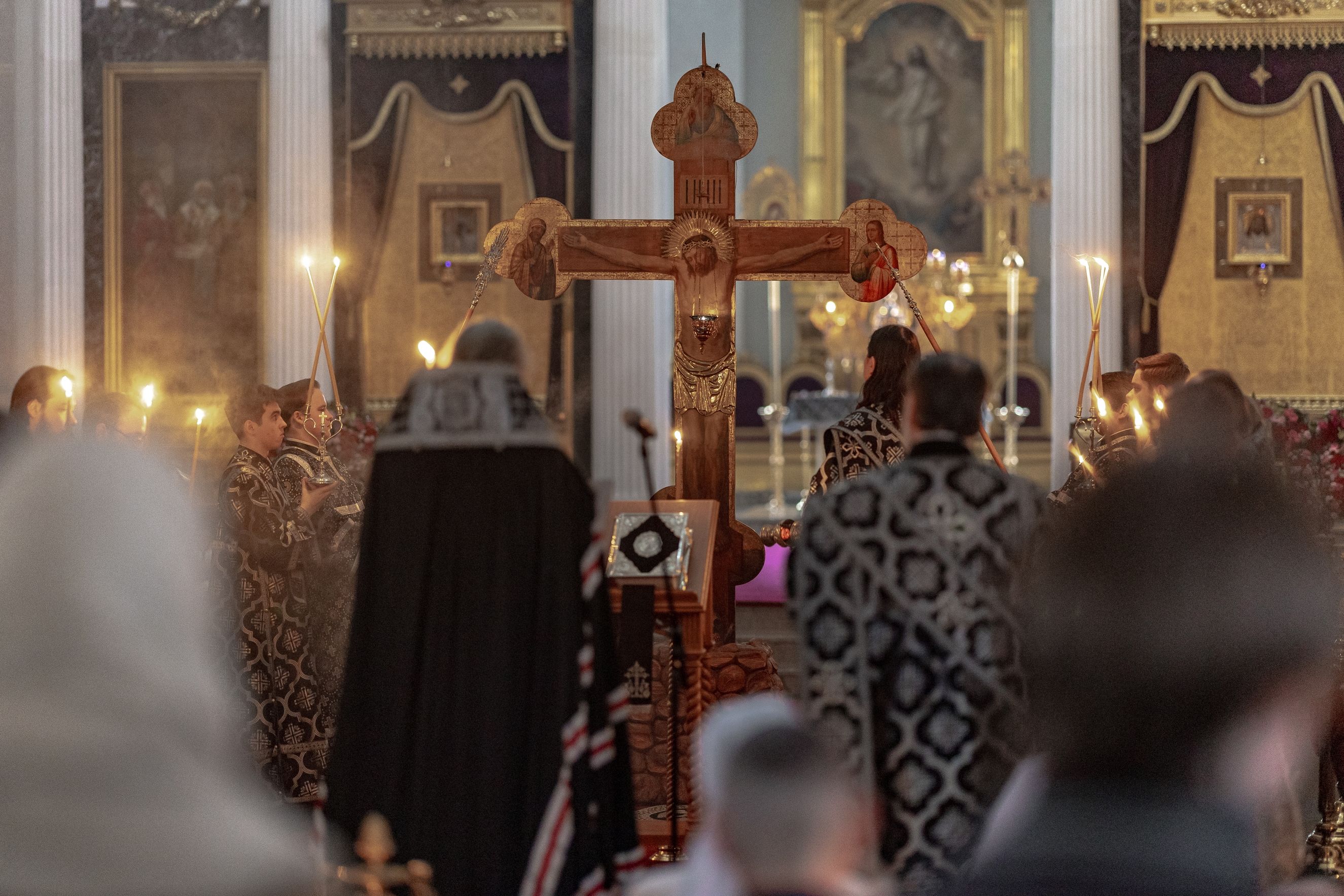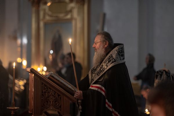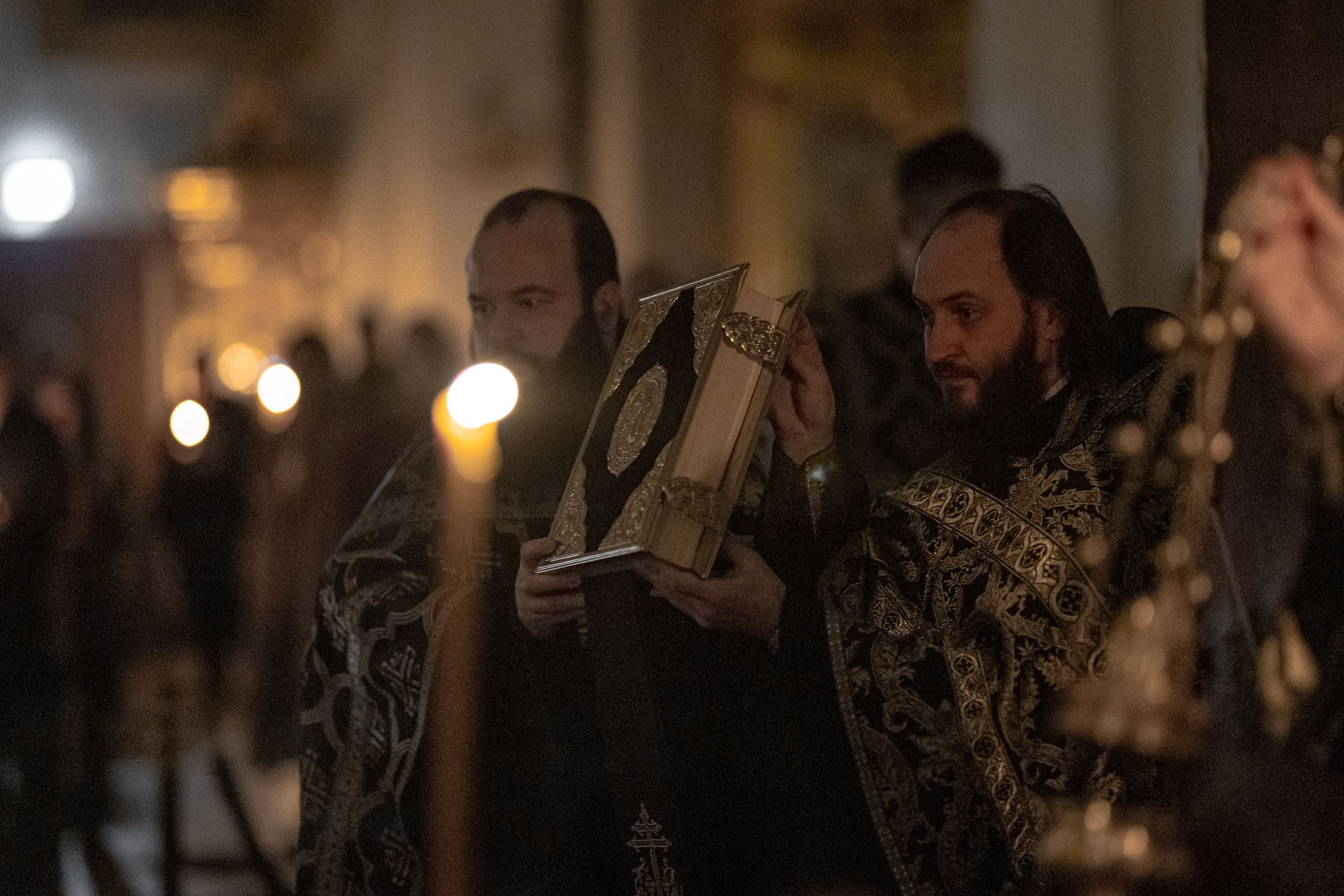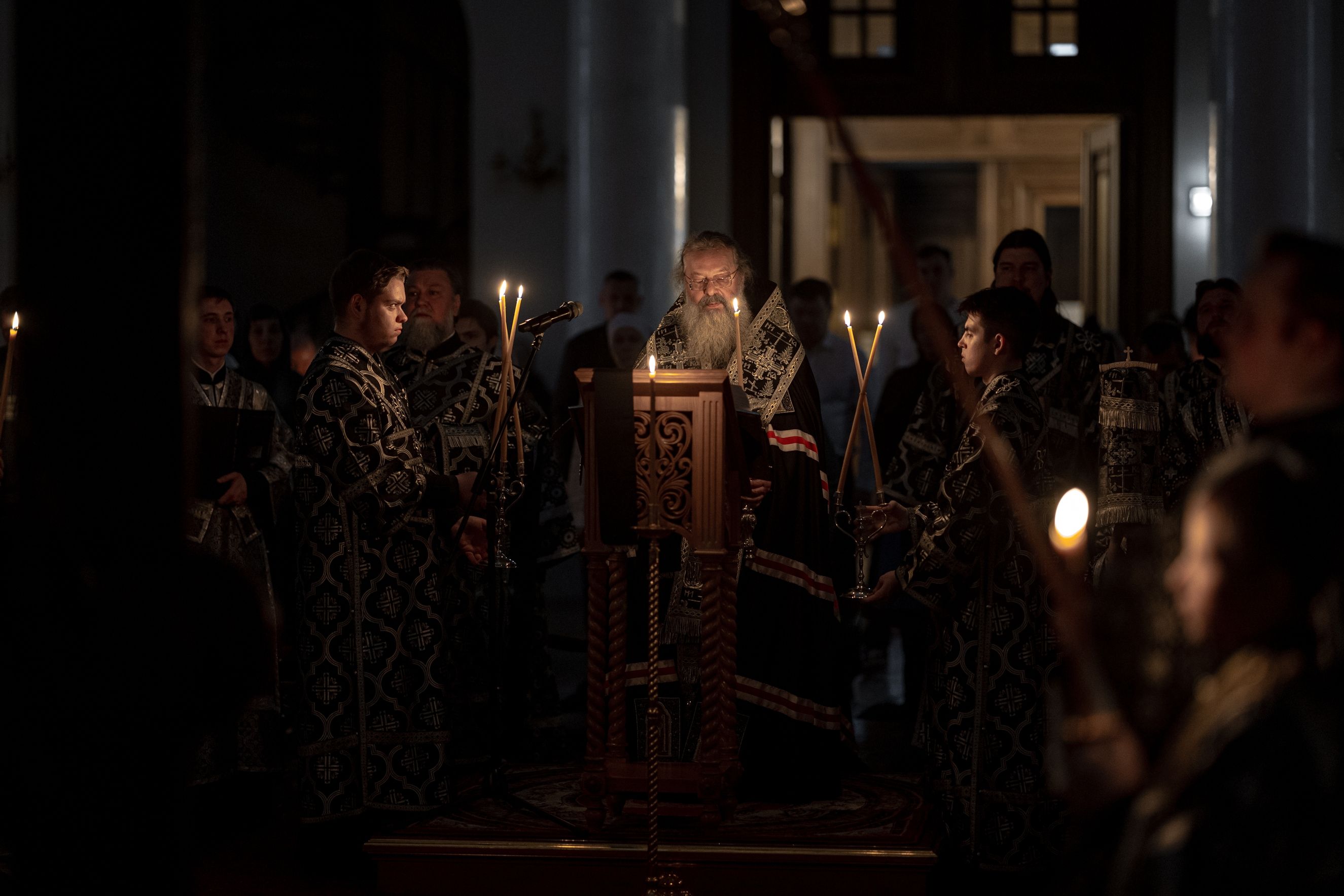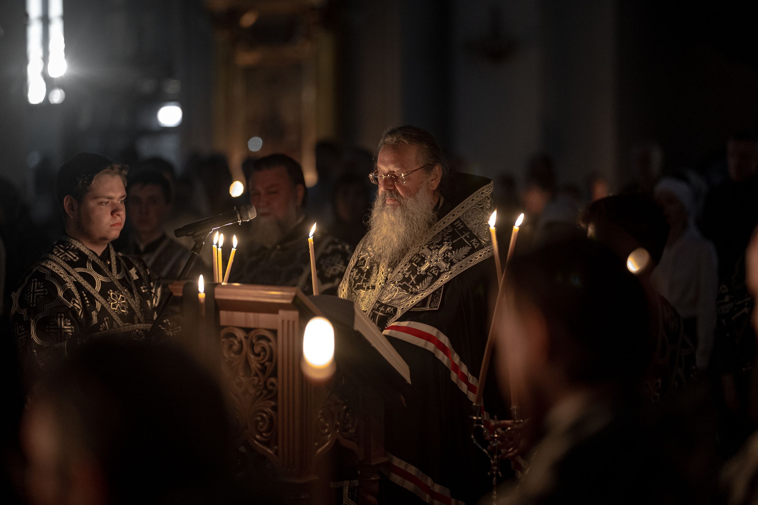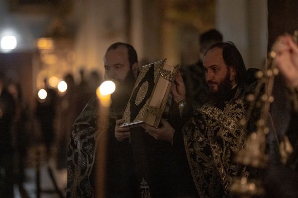На богослужении было прочитано Евангелие от Луки, повествующее о страданиях Спасителя.