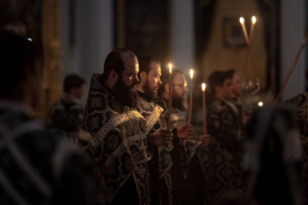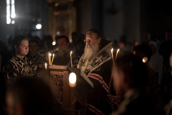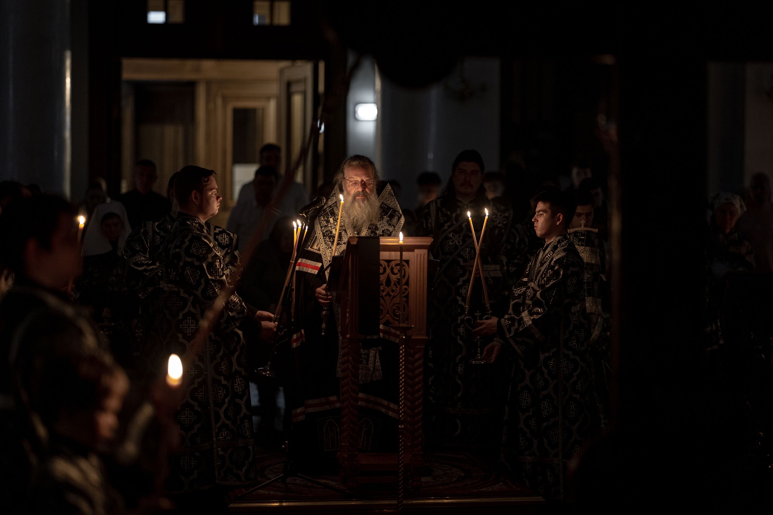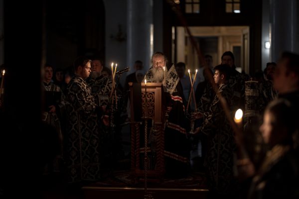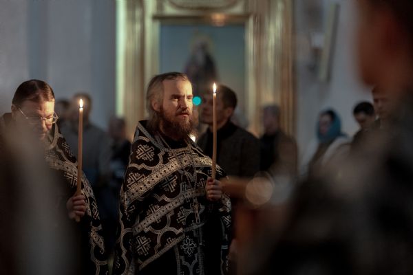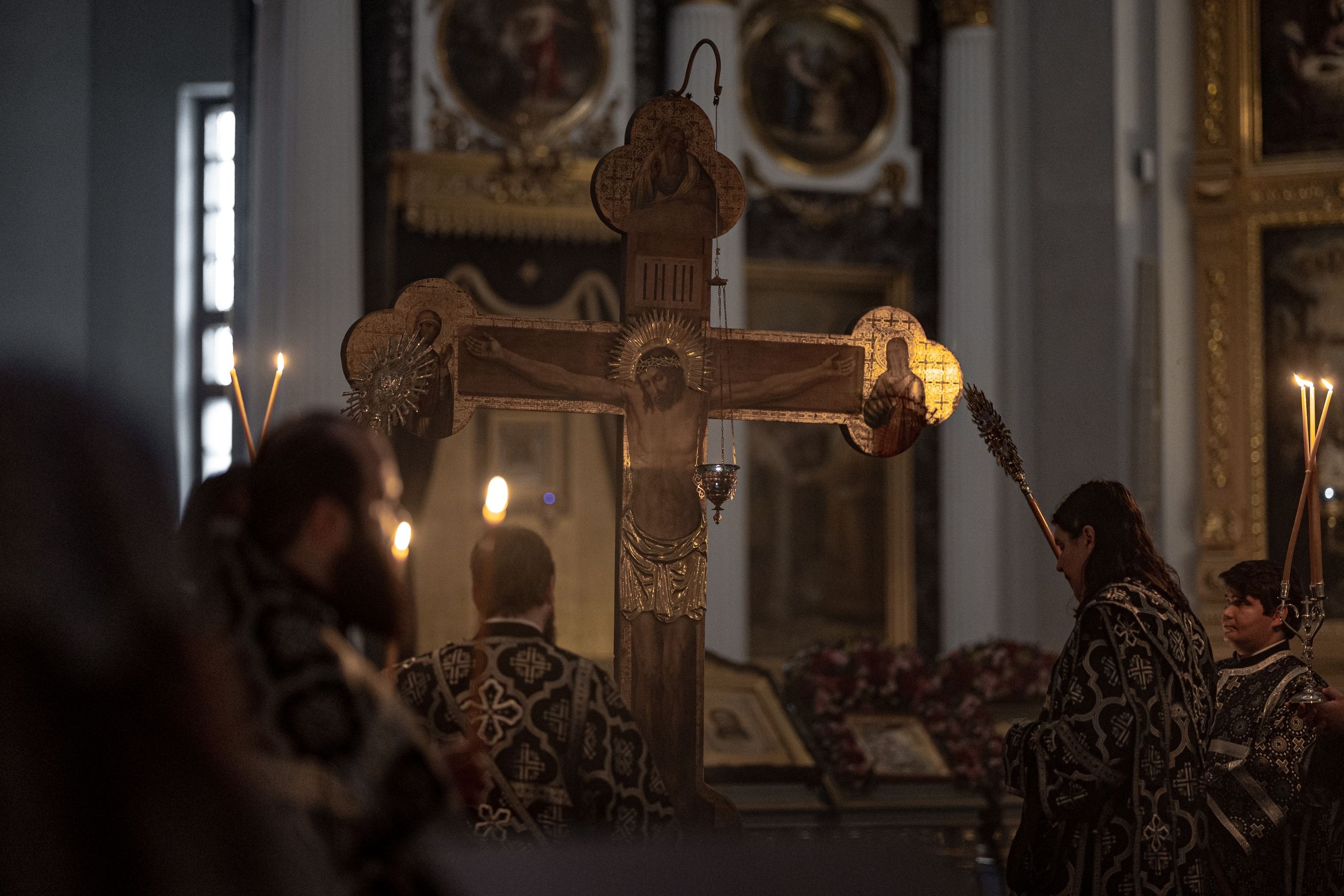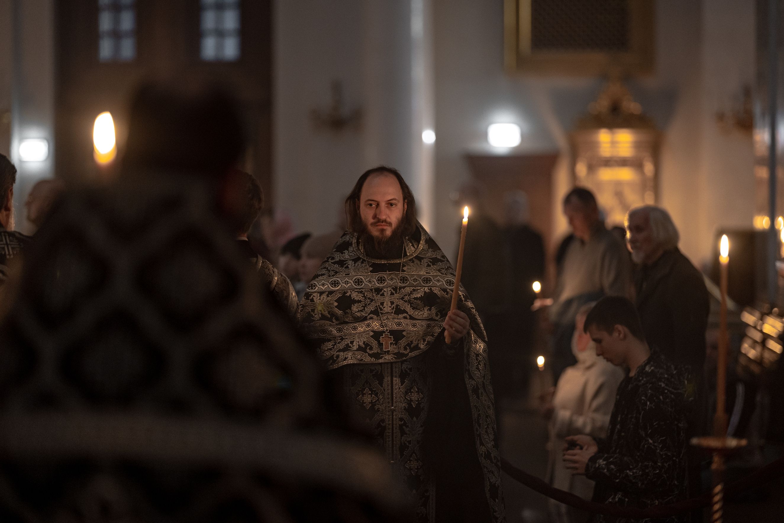 На богослужении было прочитано Евангелие от Луки, повествующее о страданиях Спасителя.