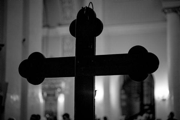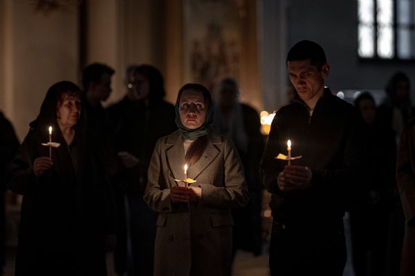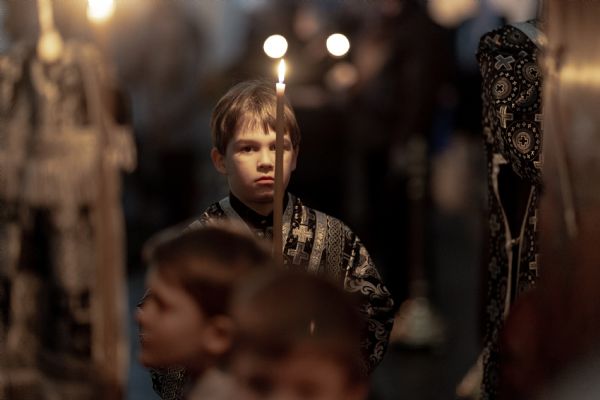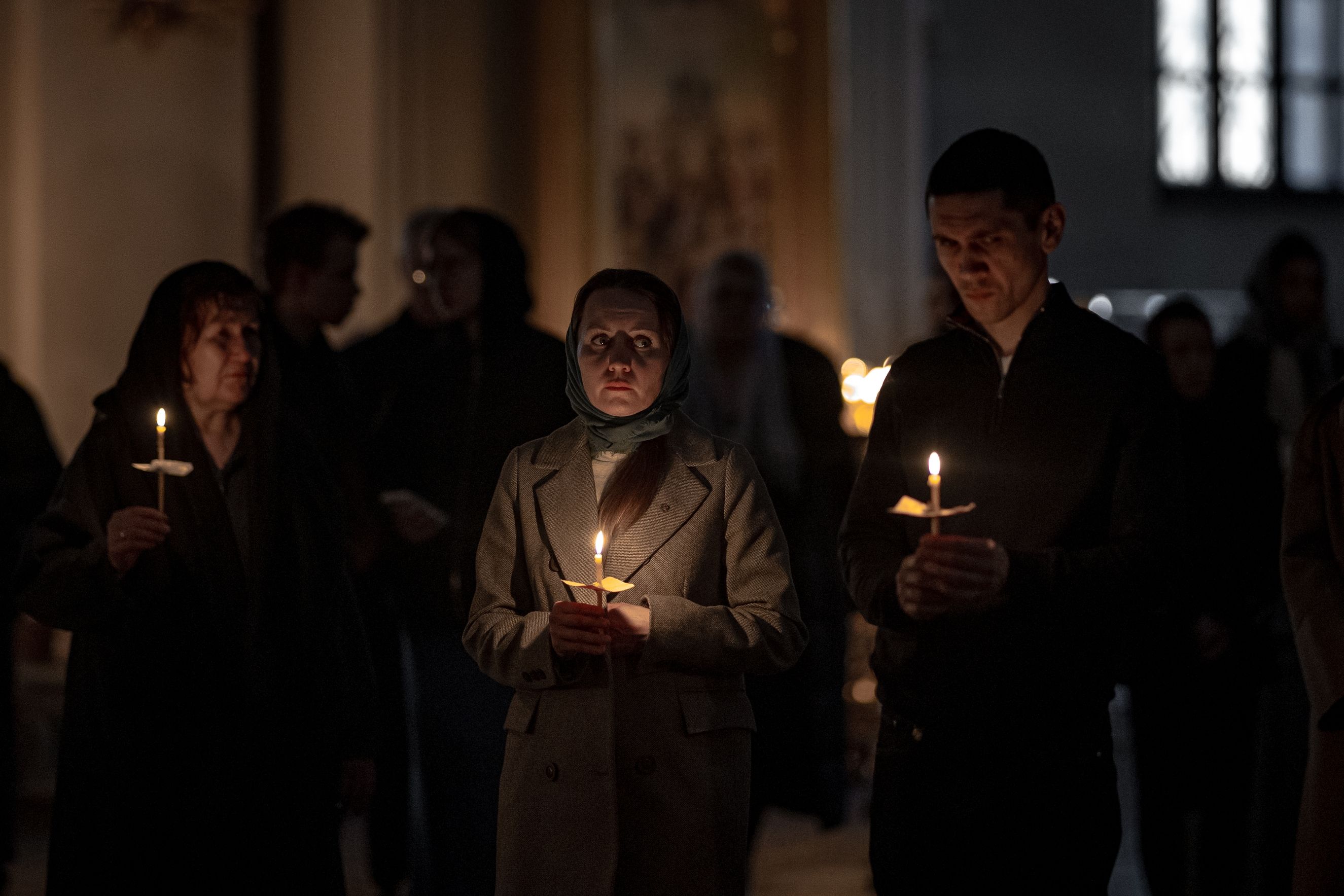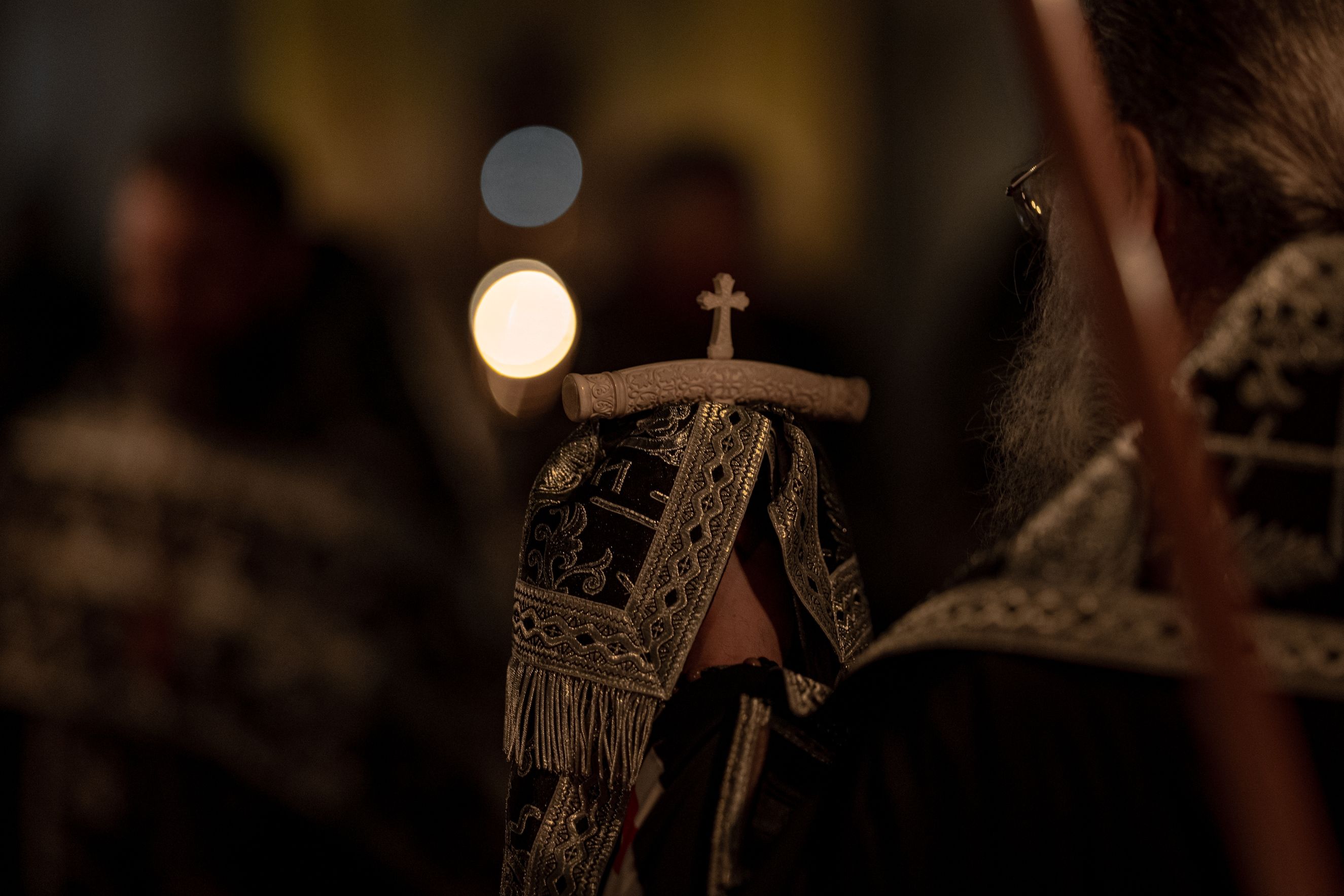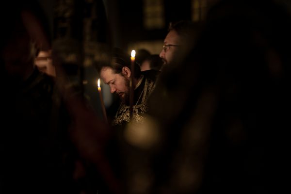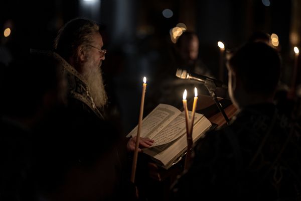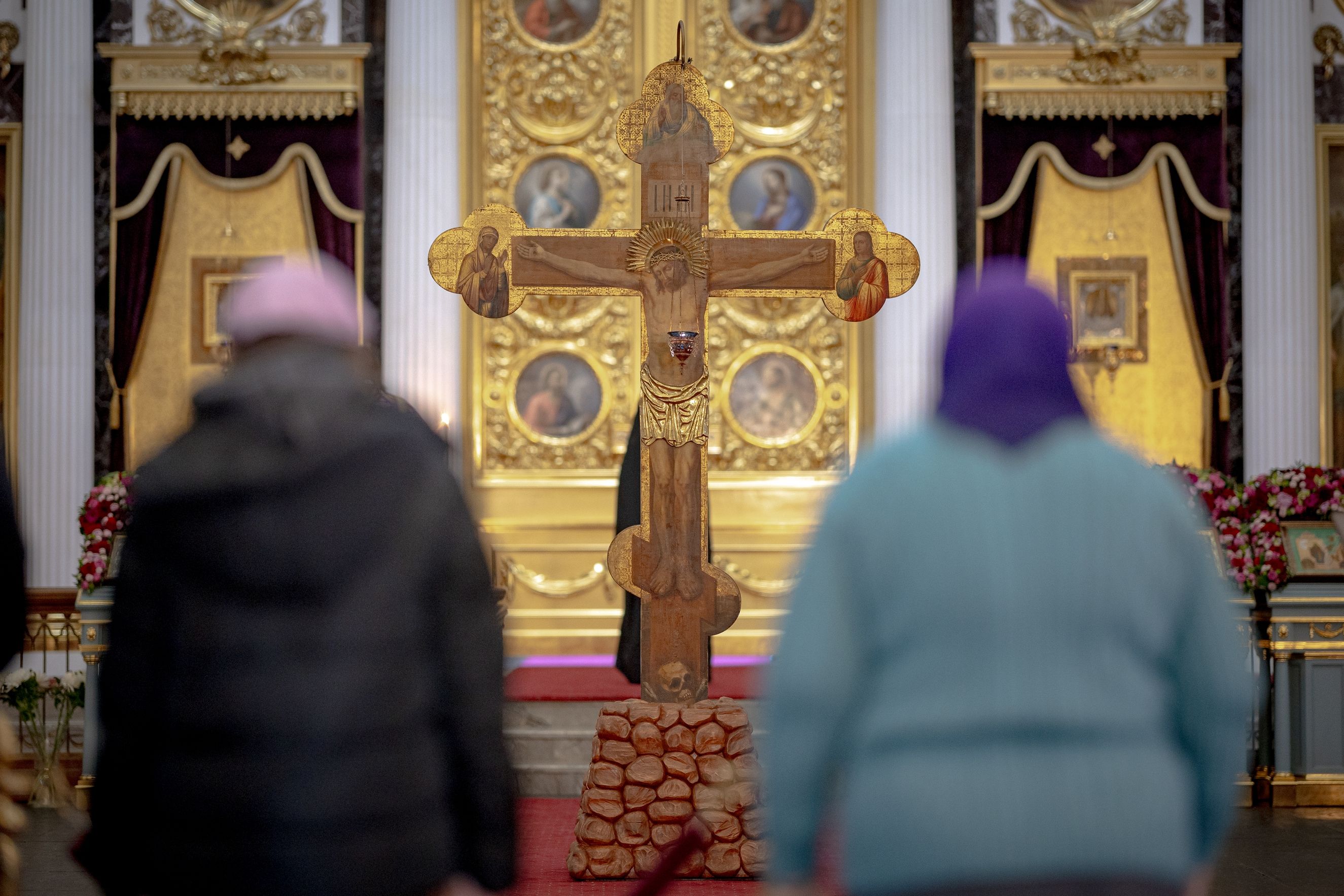На богослужении было прочитано Евангелие от Луки, повествующее о страданиях Спасителя.