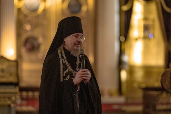 После чтения Евангелия проповедь произнёс иеромонах Ермоген (Рубан):