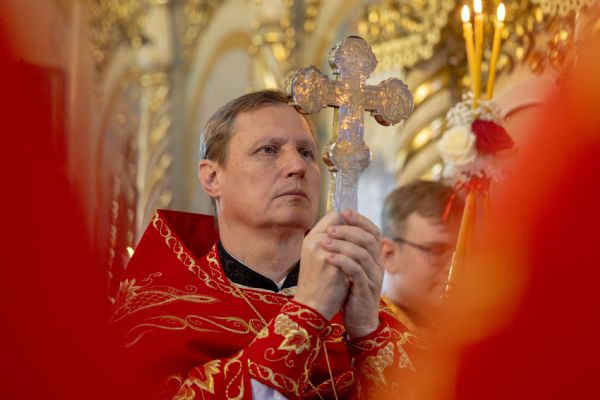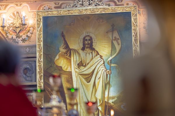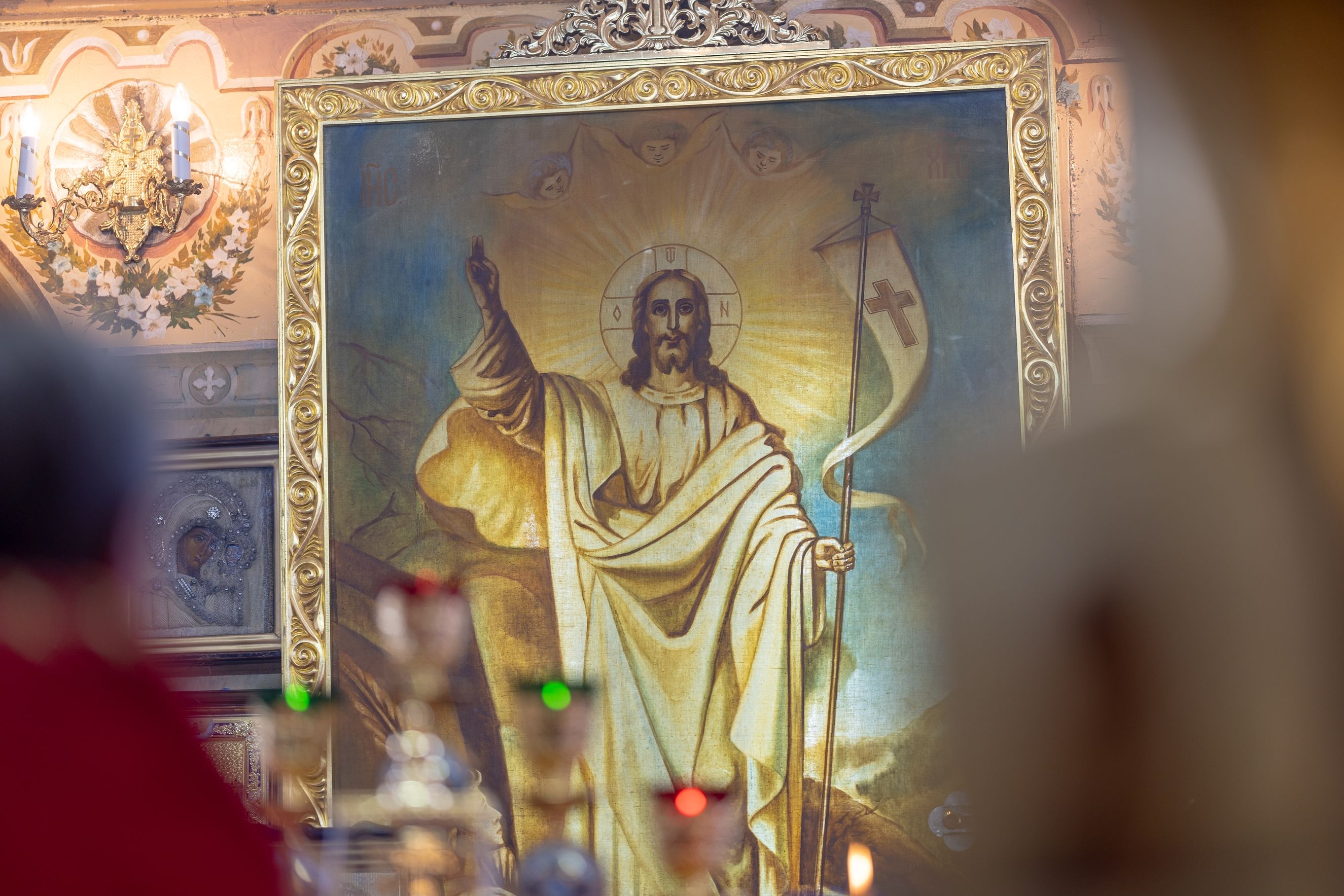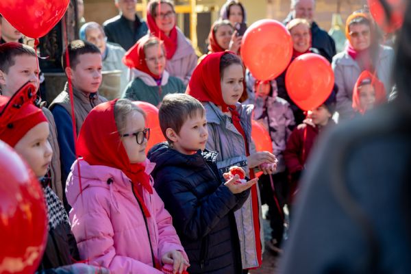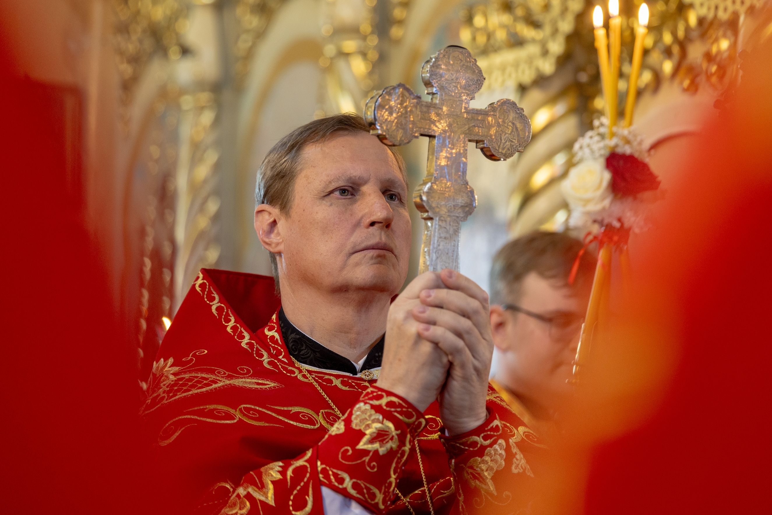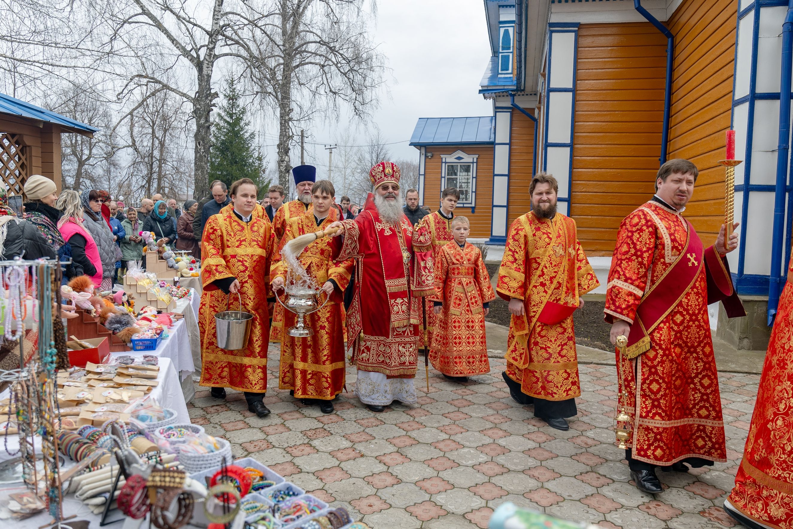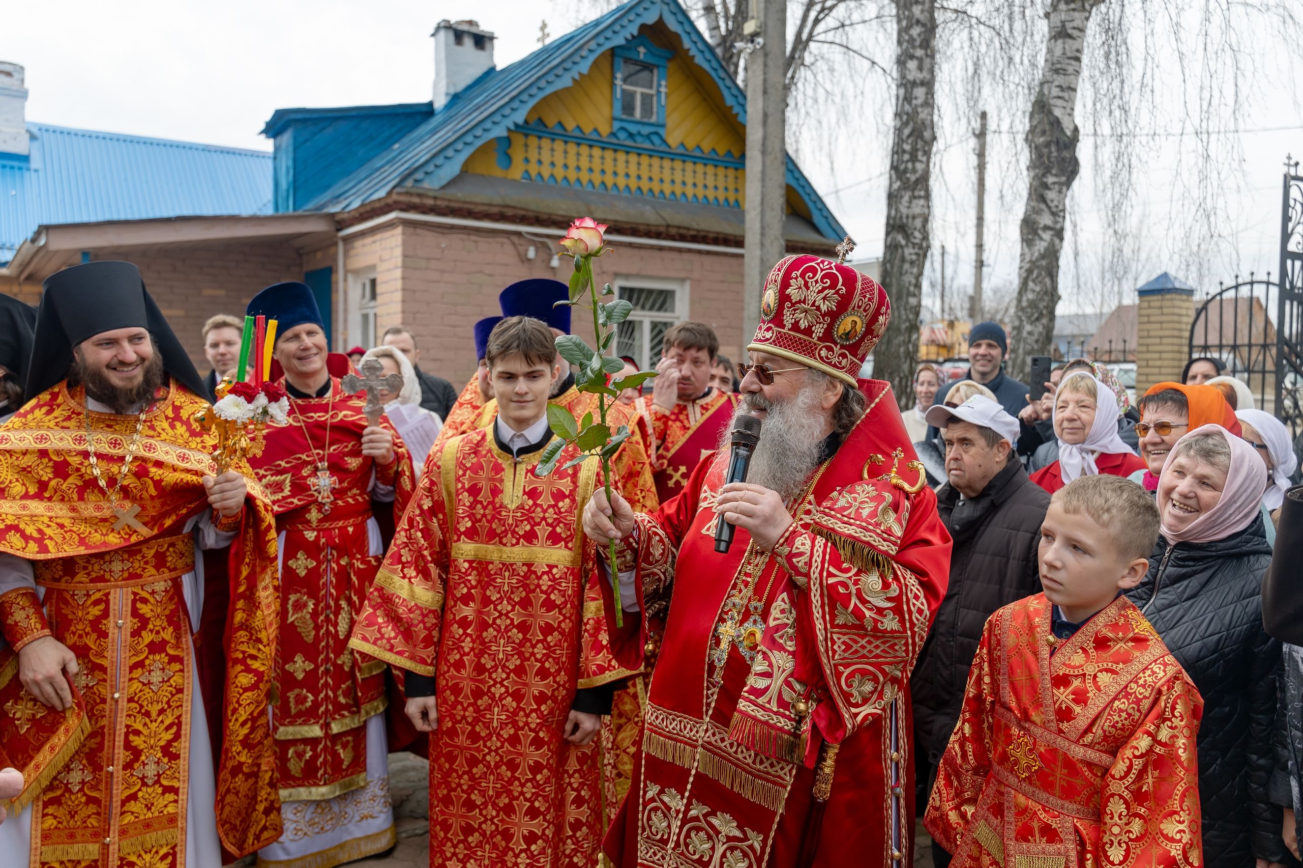 Дорогие братья и сестры, всех вас поздравляем с праздником Святой Пасхи. Сугубо сегодня поздравляем тех, кто продолжает дело святых жён-мироносиц. Присутствующих на богослужении женщин поздравляем с православным женским днём.