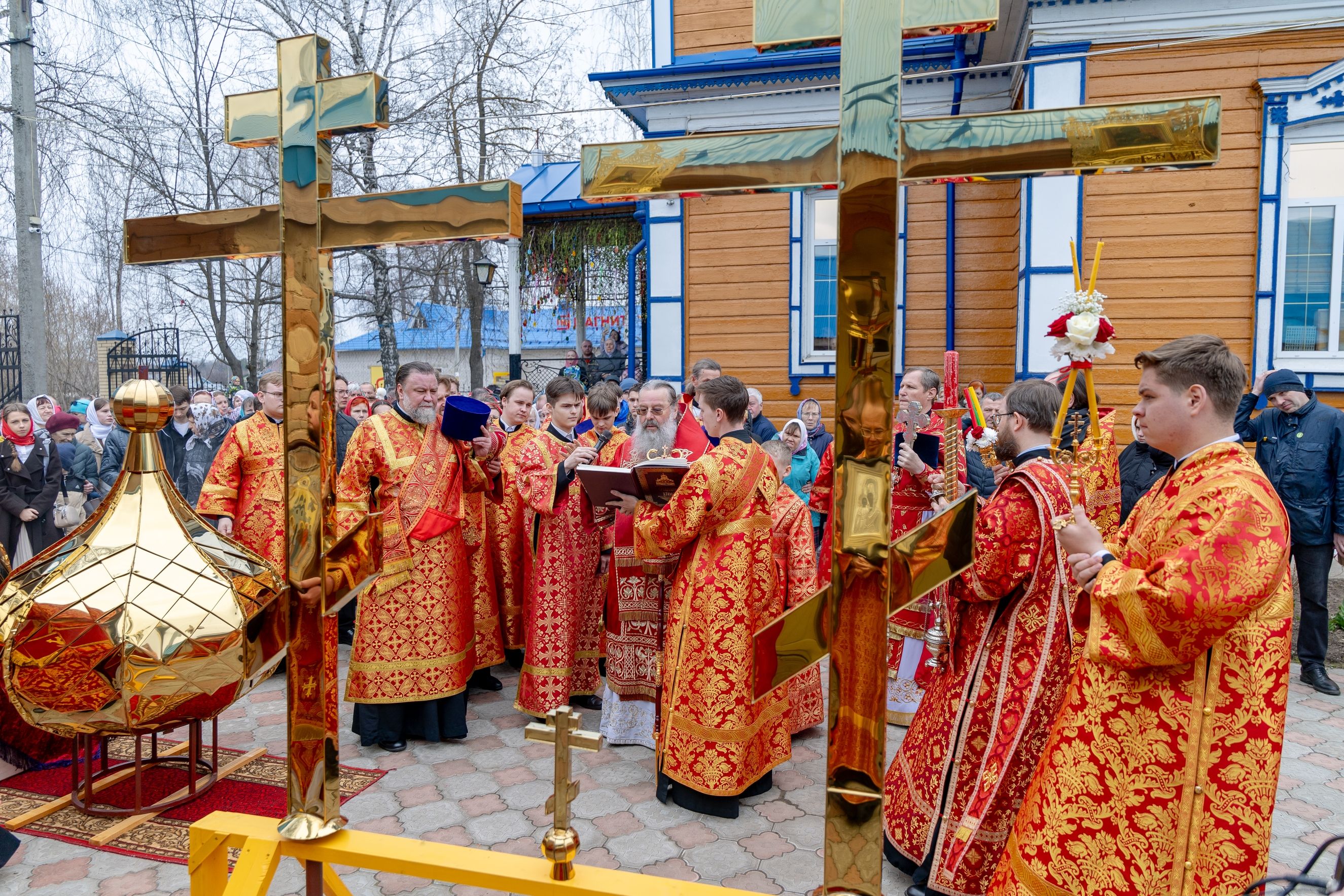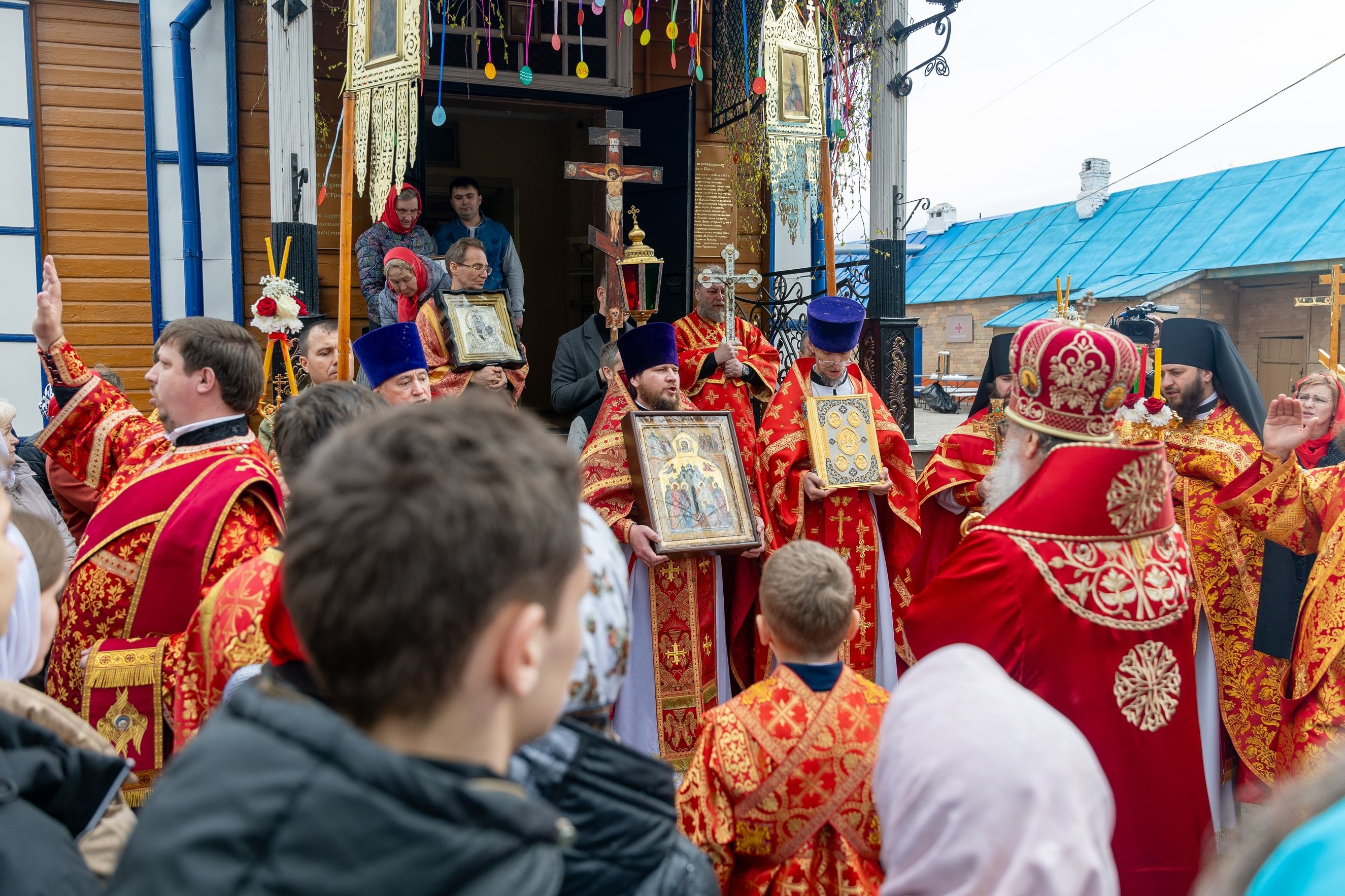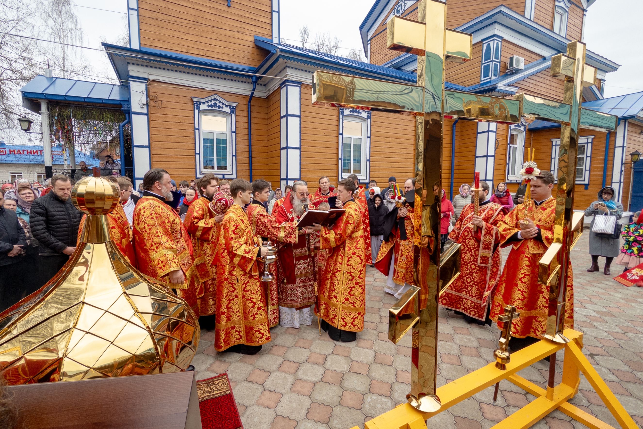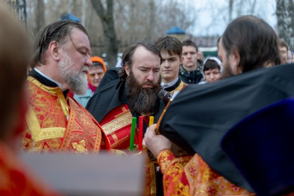 Вокруг храма был совершён пасхальный крестный ход. Митрополит Кирилл совершил освящение куполов и крестов для Петропавловского храма. В завершение были пропеты стихиры Пасхи.