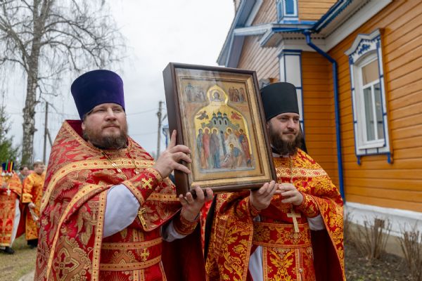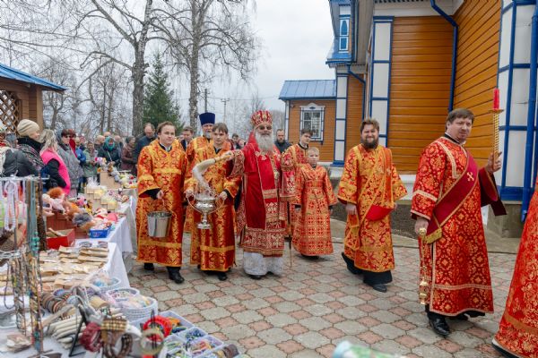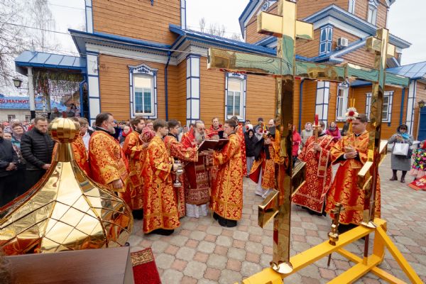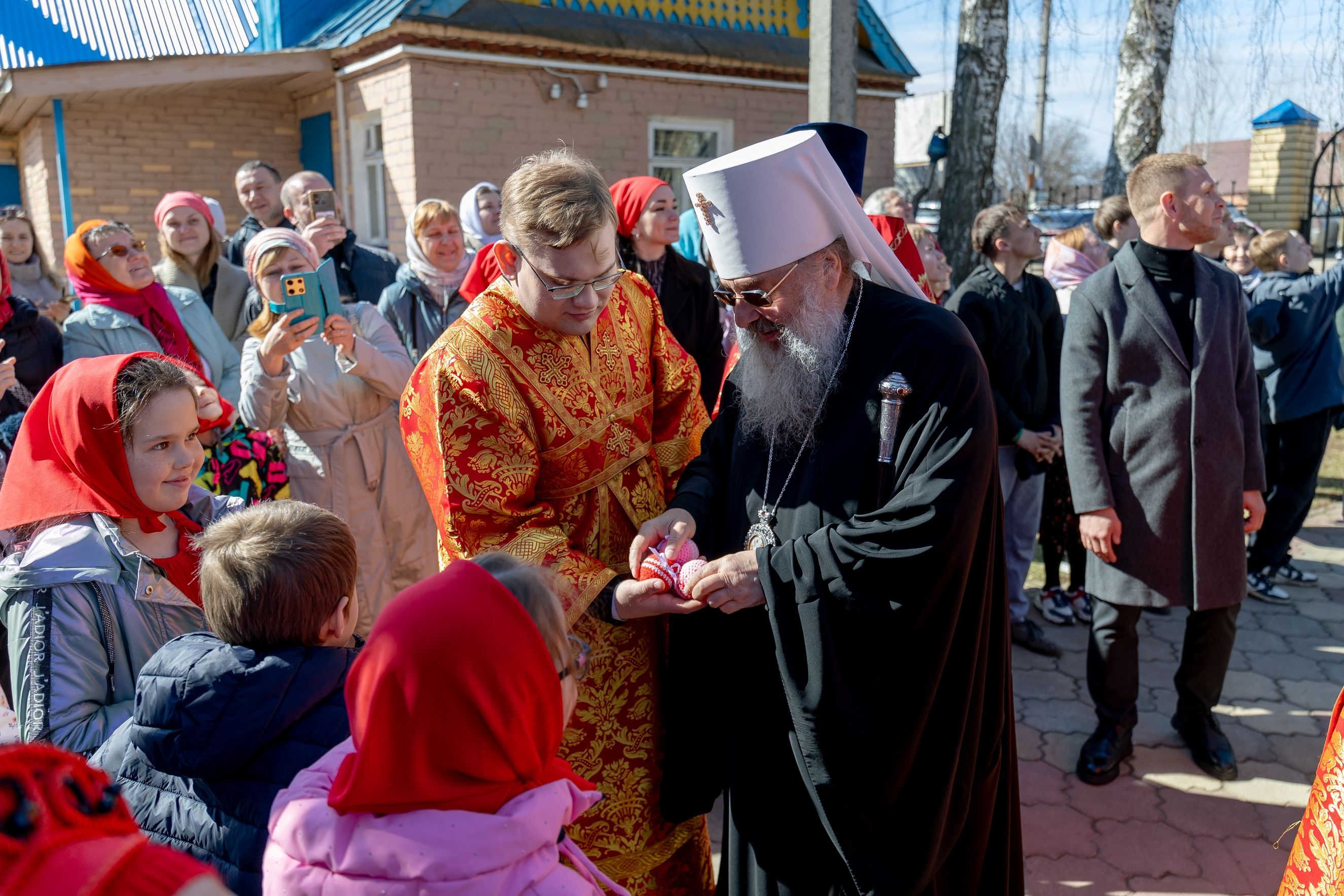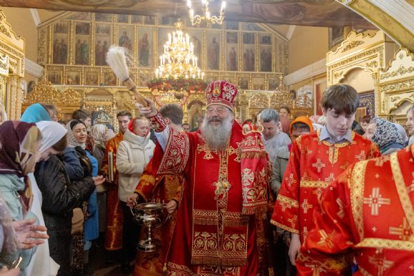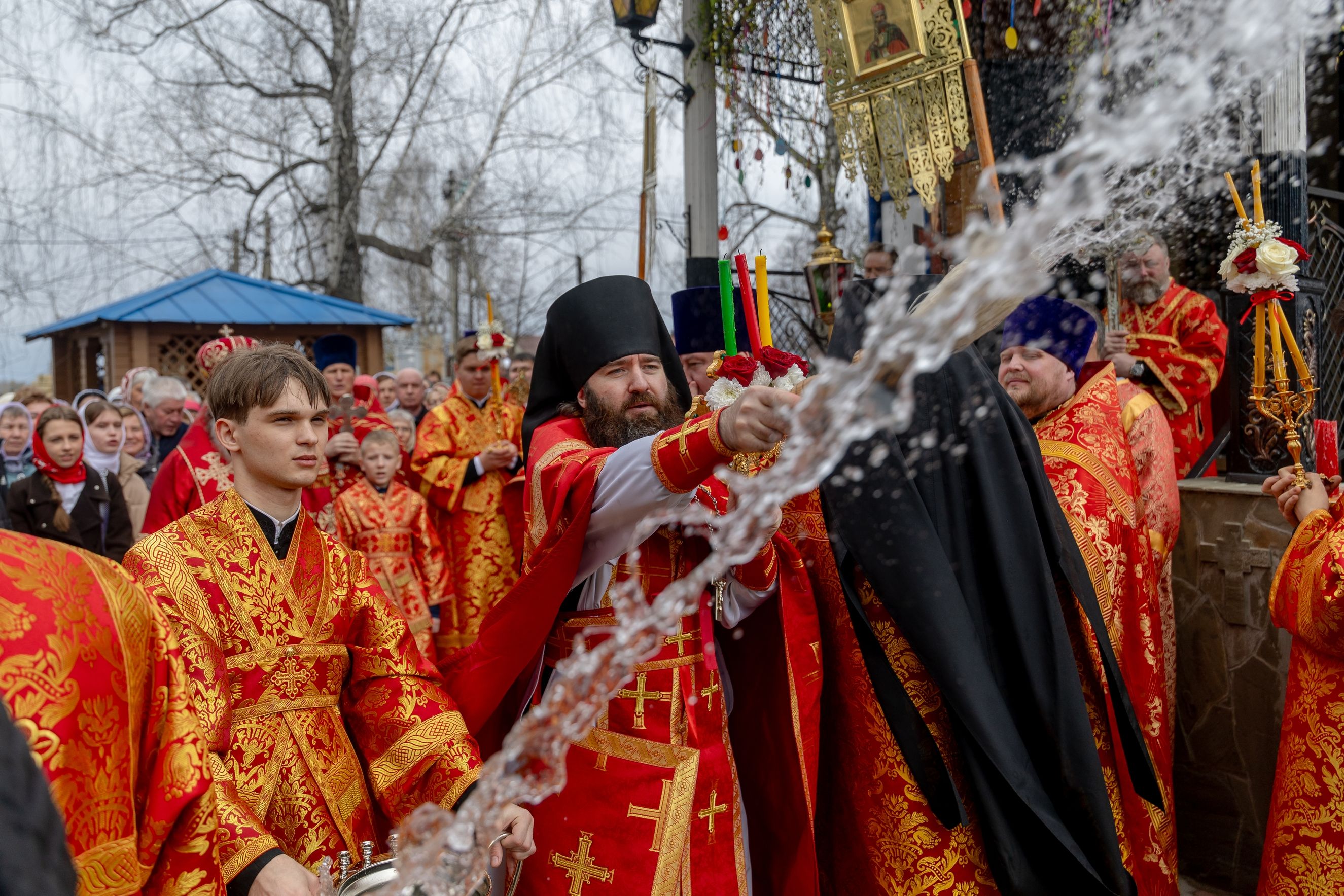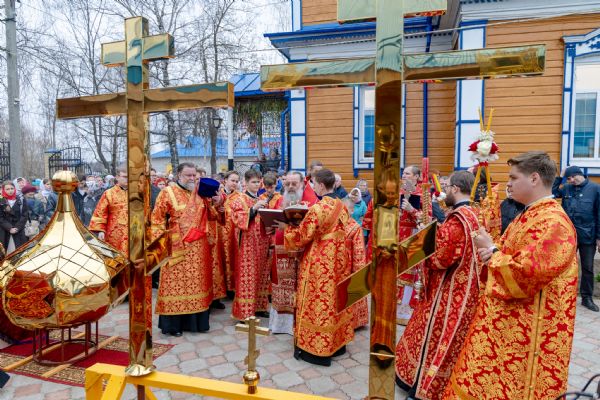 Вокруг храма был совершён пасхальный крестный ход. Митрополит Кирилл совершил освящение куполов и крестов для Петропавловского храма. В завершение были пропеты стихиры Пасхи.