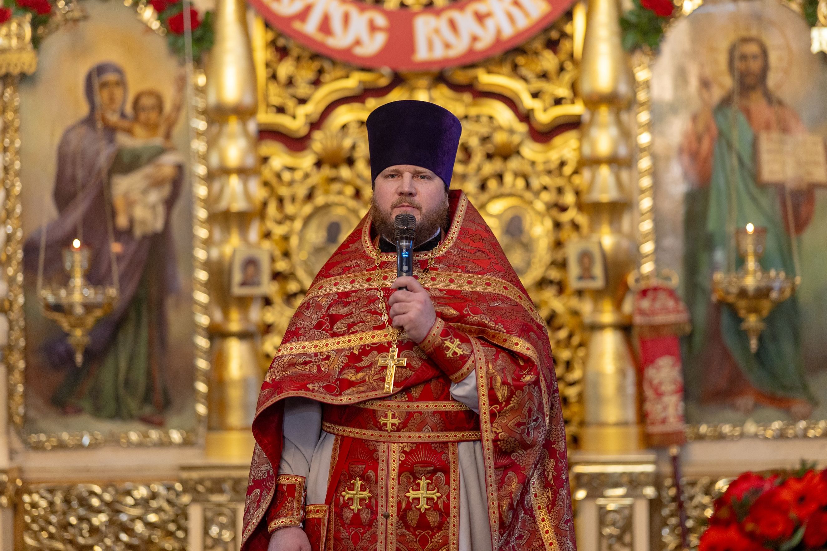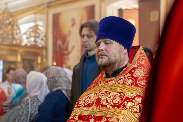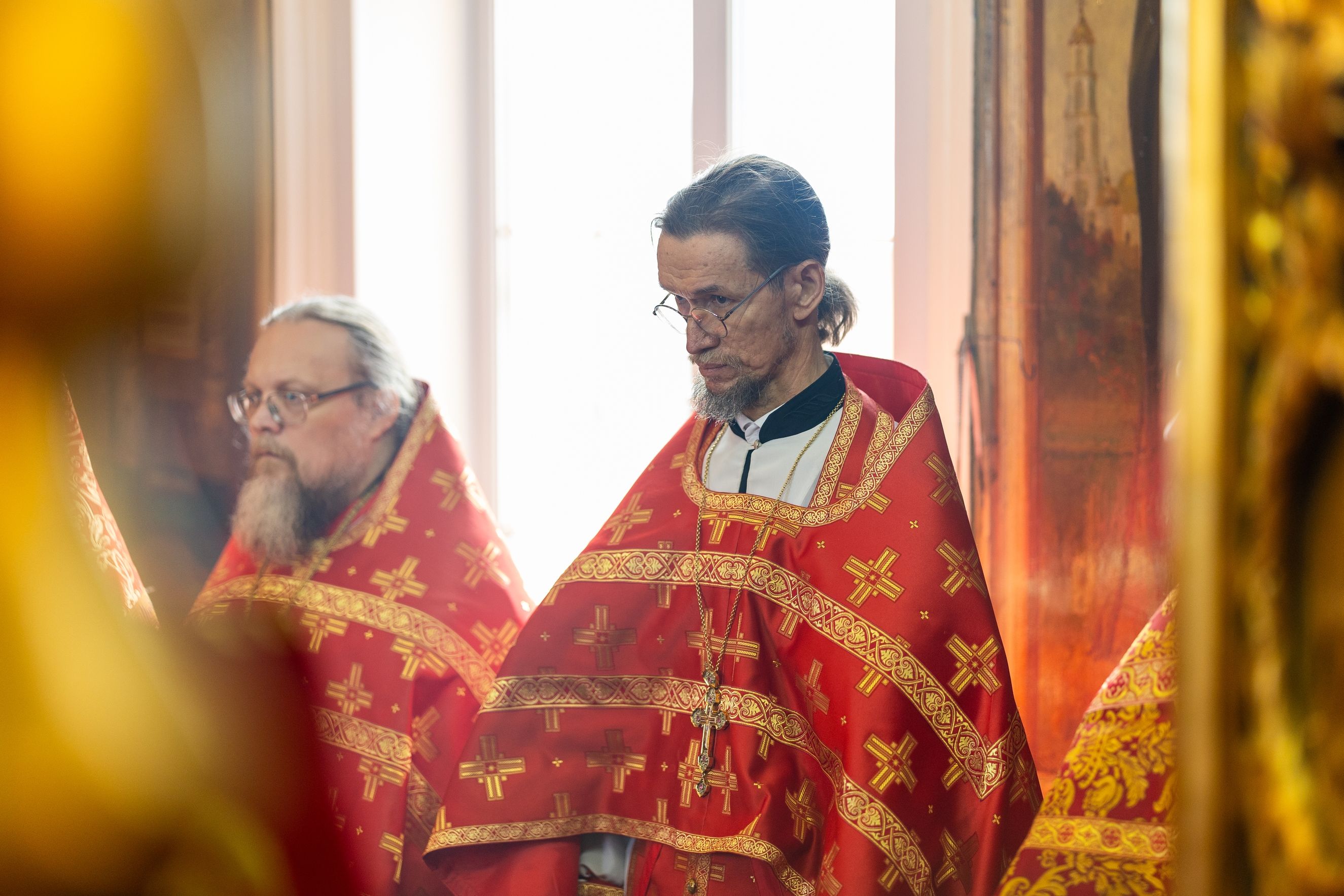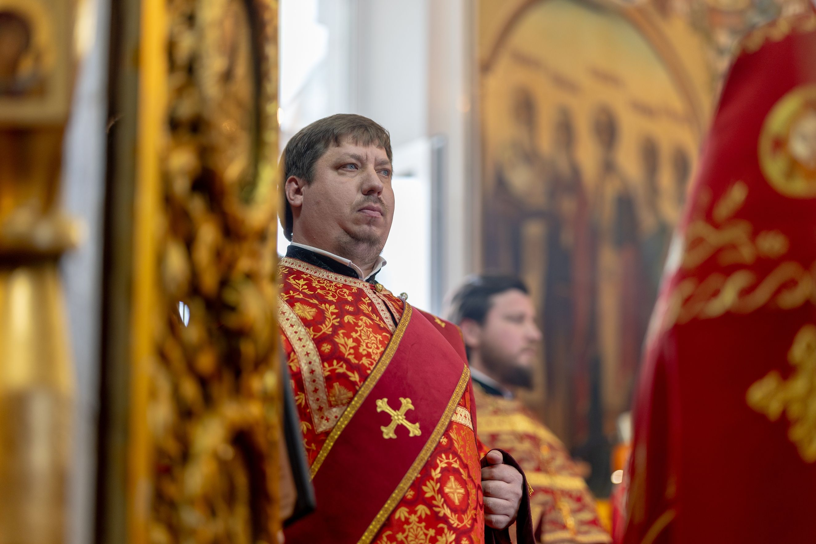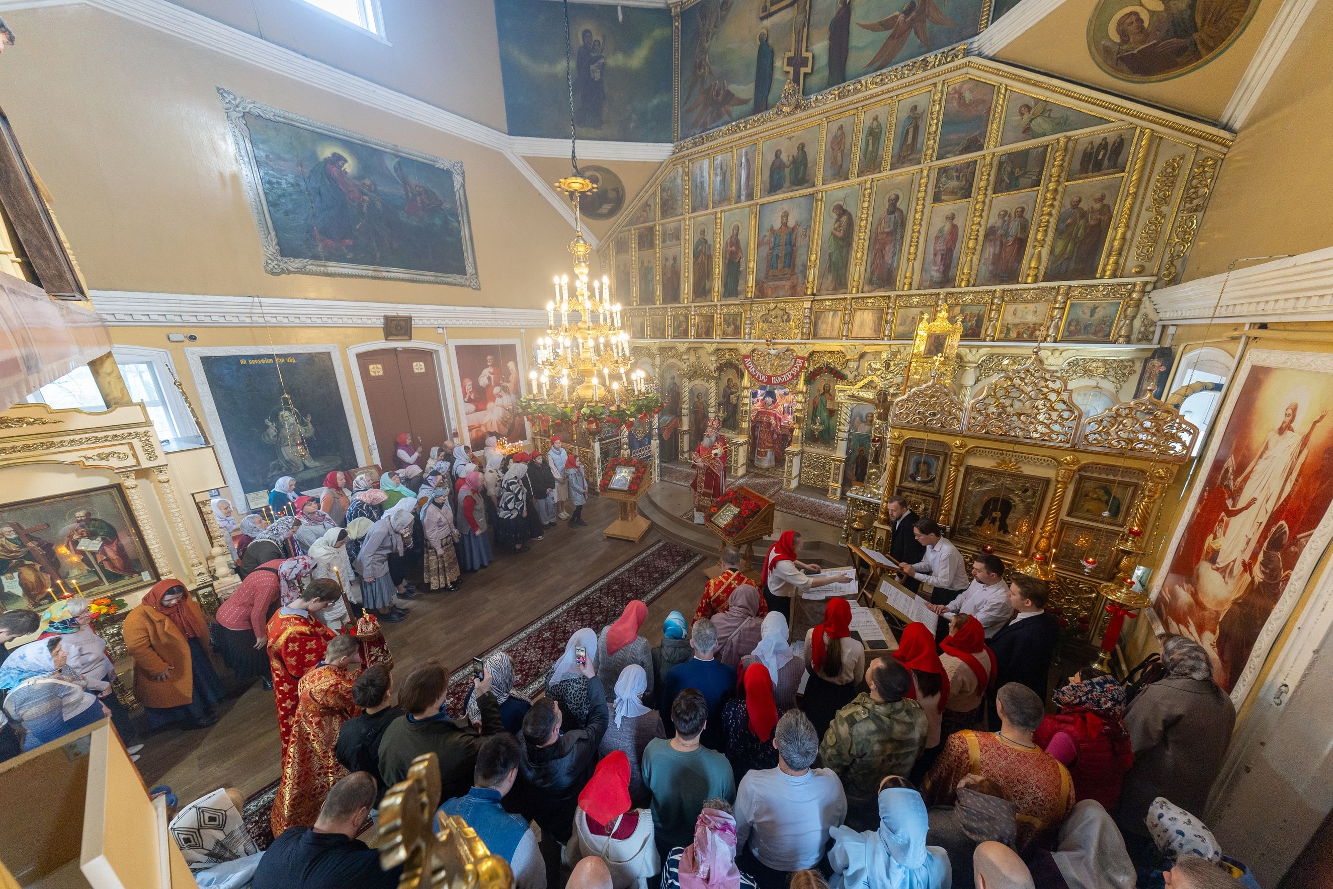 На мирной и сугубой ектениях были вознесены молитвы о Российском воинстве и о мире. По запричастном стихе проповедь произнёс настоятель храма апостола Андрея Первозванного города Зеленодольска иерей Николай Назаров.
