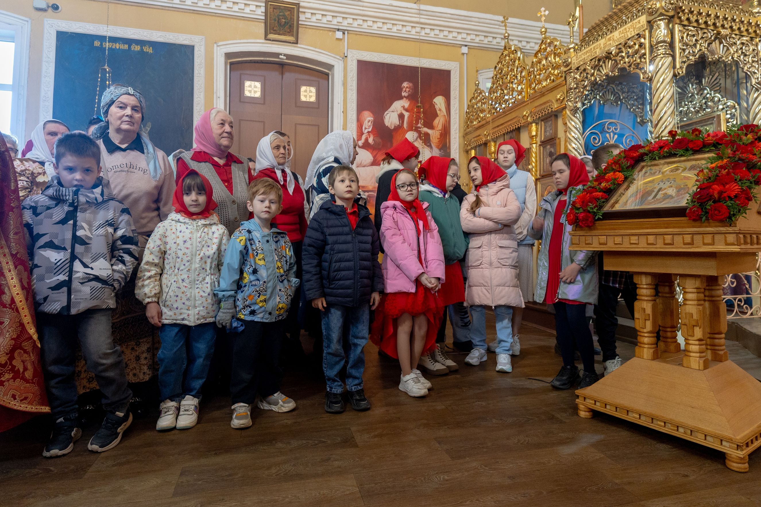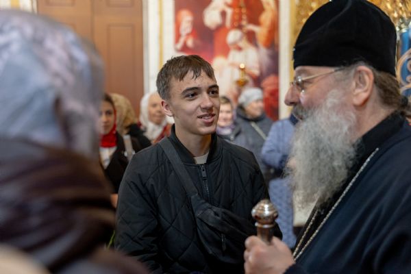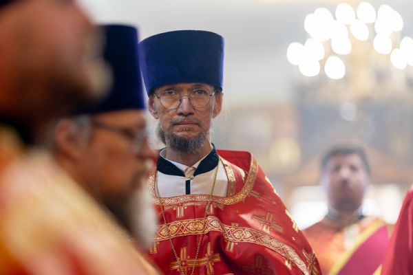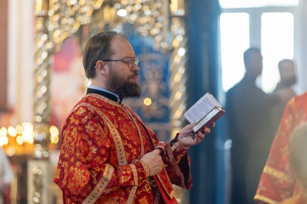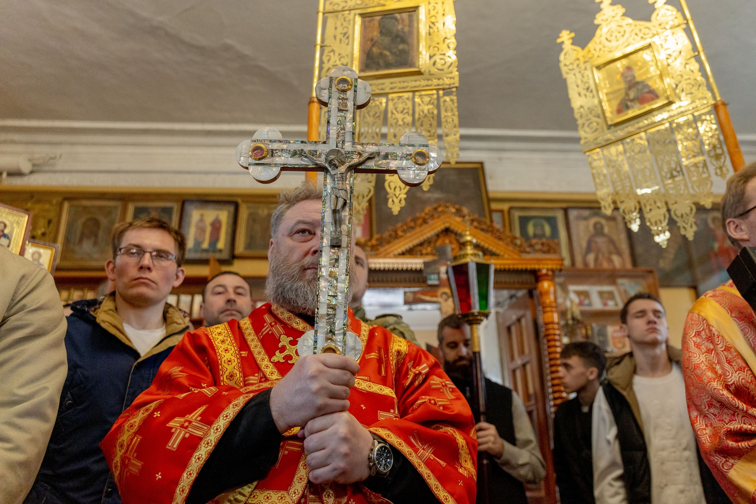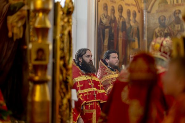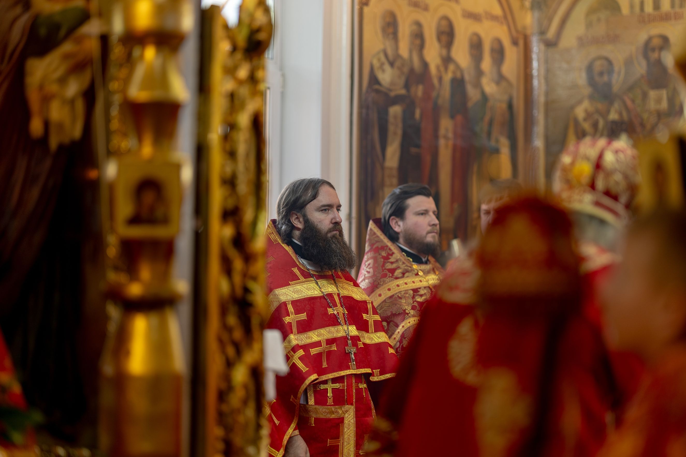 На мирной и сугубой ектениях были вознесены молитвы о Российском воинстве и о мире. По запричастном стихе проповедь произнёс настоятель храма апостола Андрея Первозванного города Зеленодольска иерей Николай Назаров.