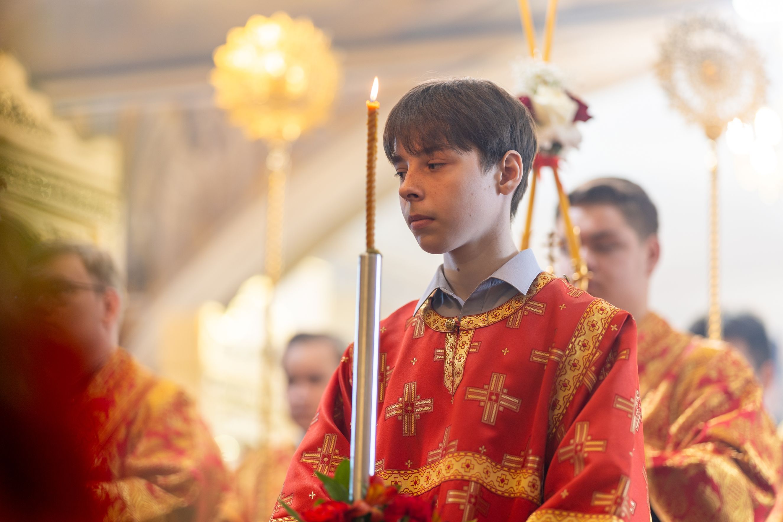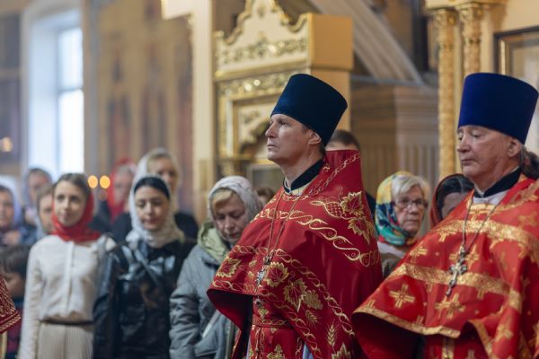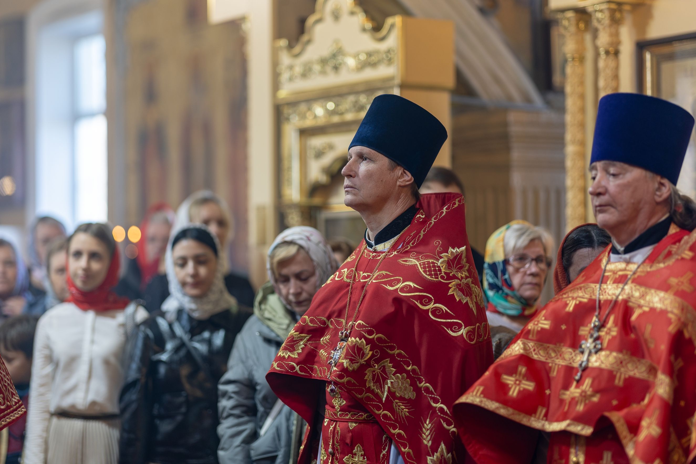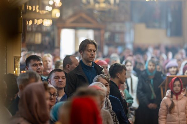 Песнопения исполнили архиерейский хор под управлением Марины Литвиненко и приходской хор под управлением Марины Коратаевой.