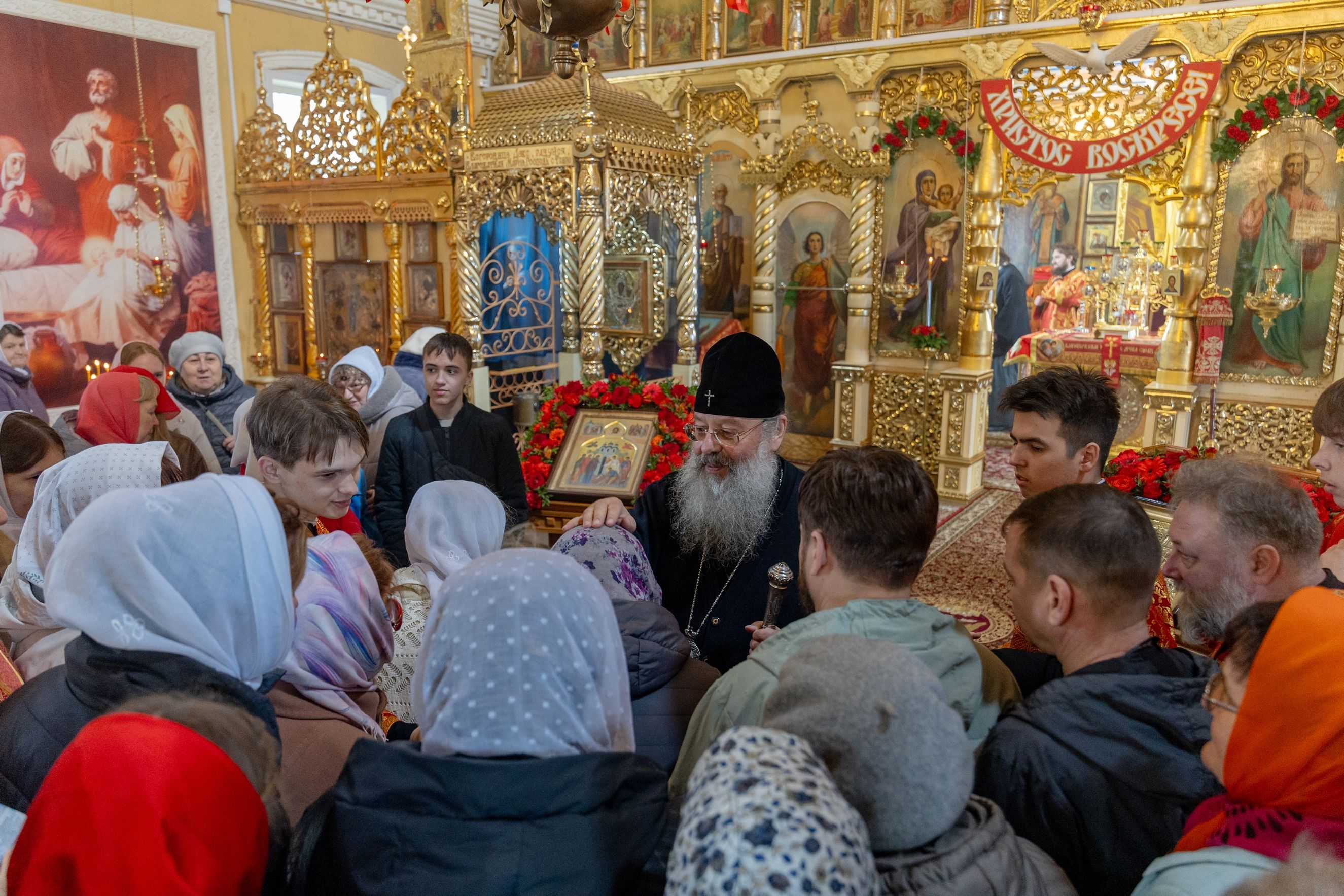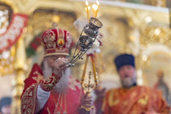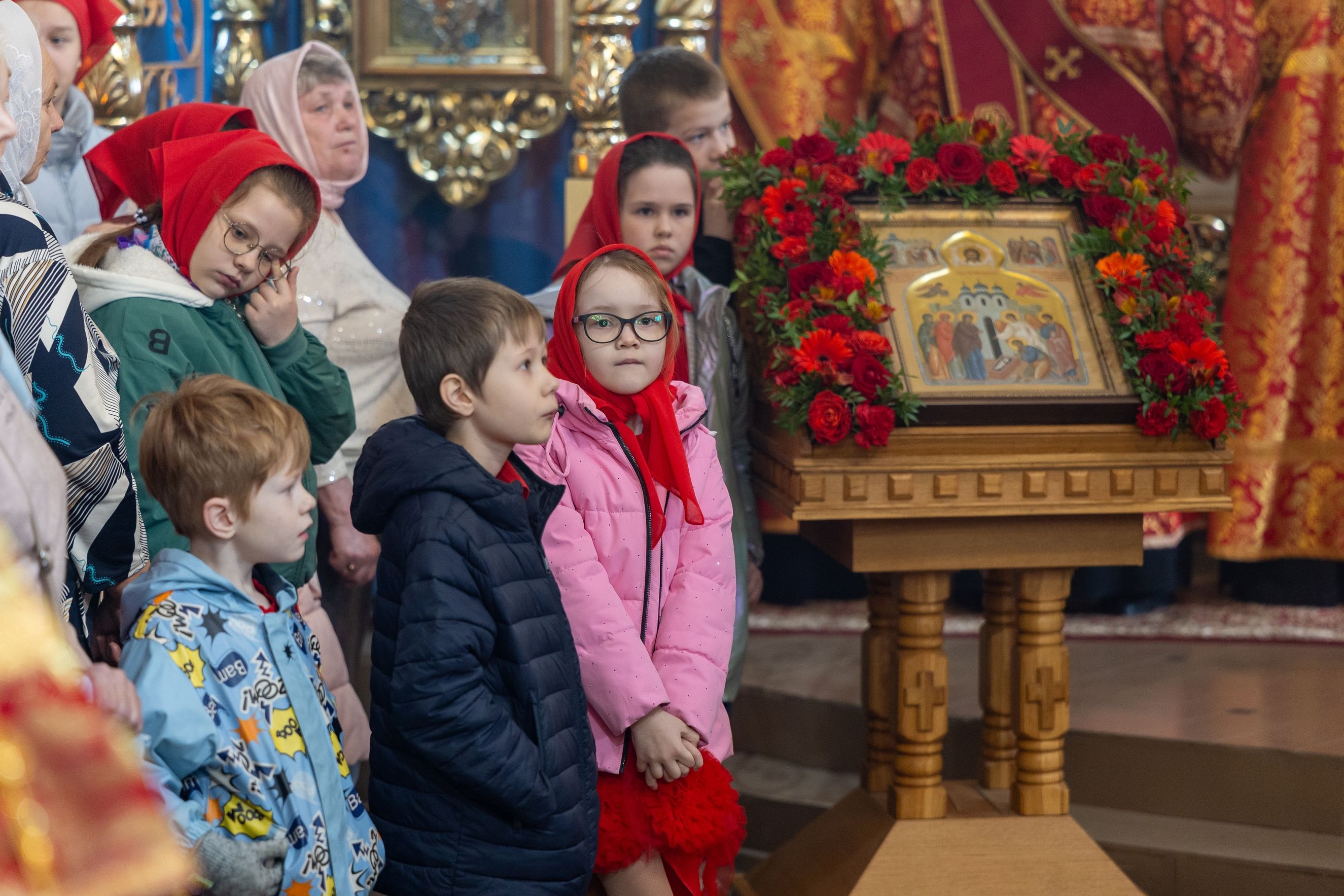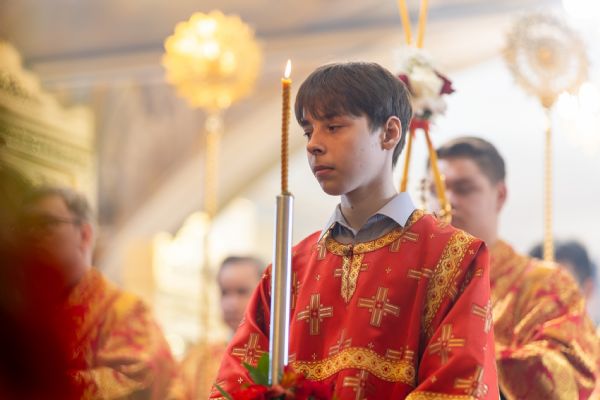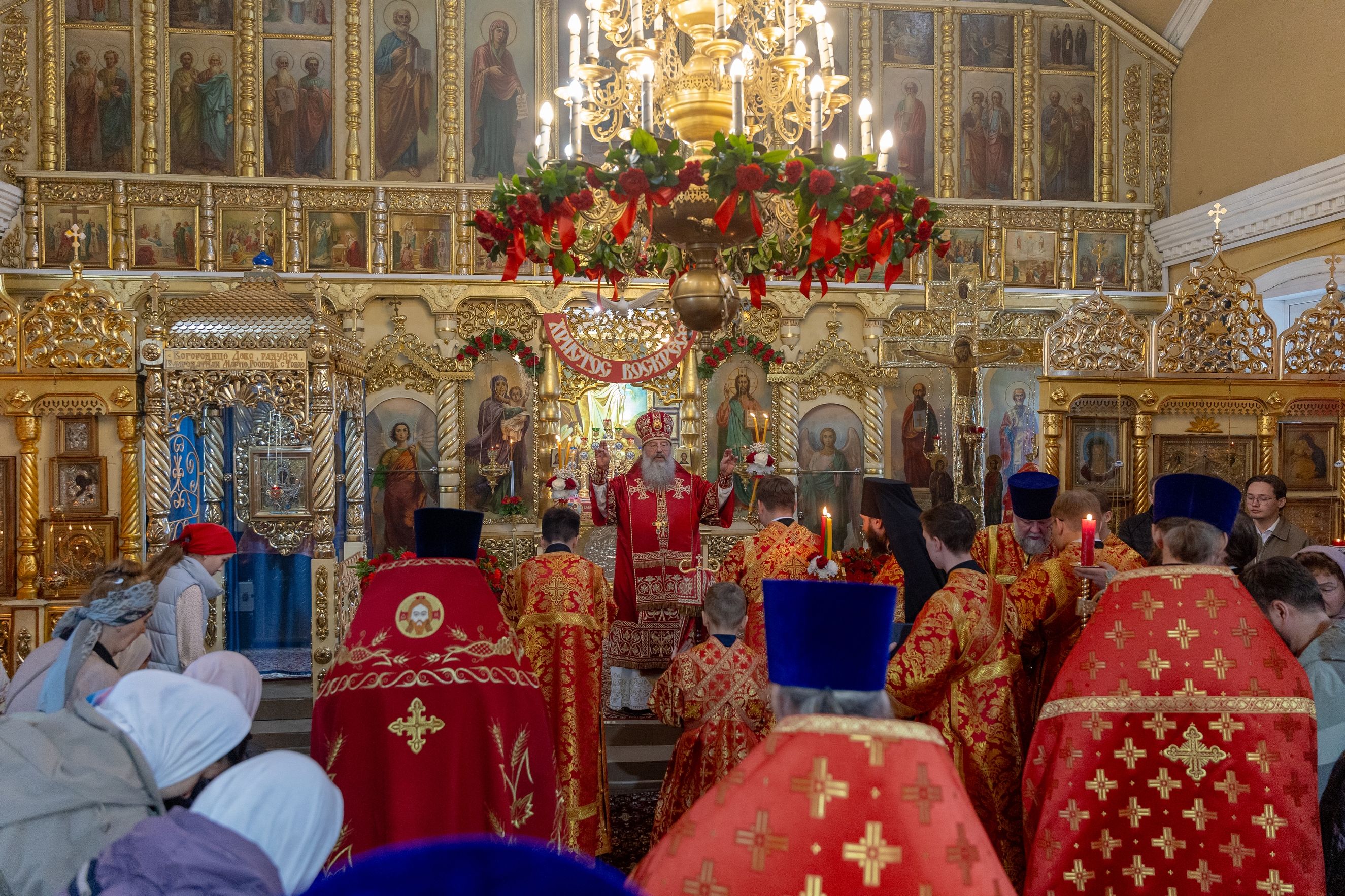 Песнопения исполнили архиерейский хор под управлением Марины Литвиненко и приходской хор под управлением Марины Коратаевой.