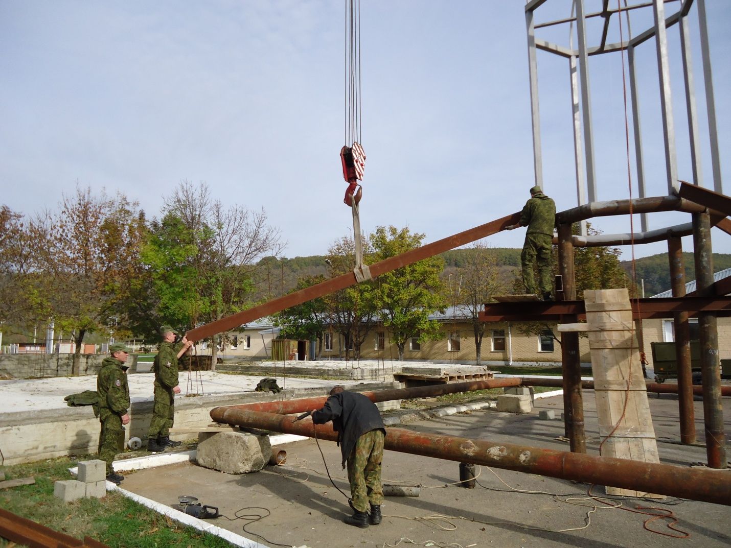 Сварщик, рядовой Павел. Маленький, щупленький. Две недели осталось до увольнения в запас. Казалось бы, только пряжку чистить и ждать приказа. Нет, с раннего утра «ныряет» под свою маску и варит. Миром строится войсковой храм Пресвятой Богородицы. Вот конструкция приобретает «понятный» вид. Раскосы, подкосы, балки. Это каркас крыши храма.
