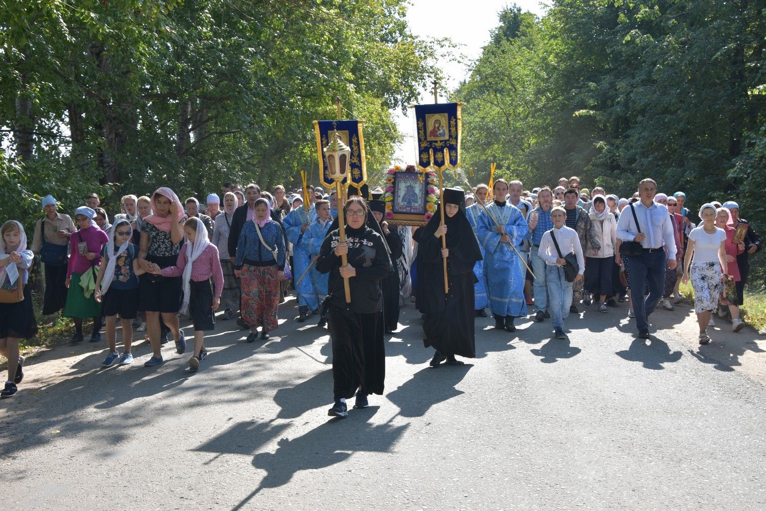 После Божественной литургии начался традиционный многодневный крестный ход с Мироносицкой иконой Божией Матери. В первый день он прошел от монастыря до храма Рождества Пресвятой Богородицы села Семеновка.