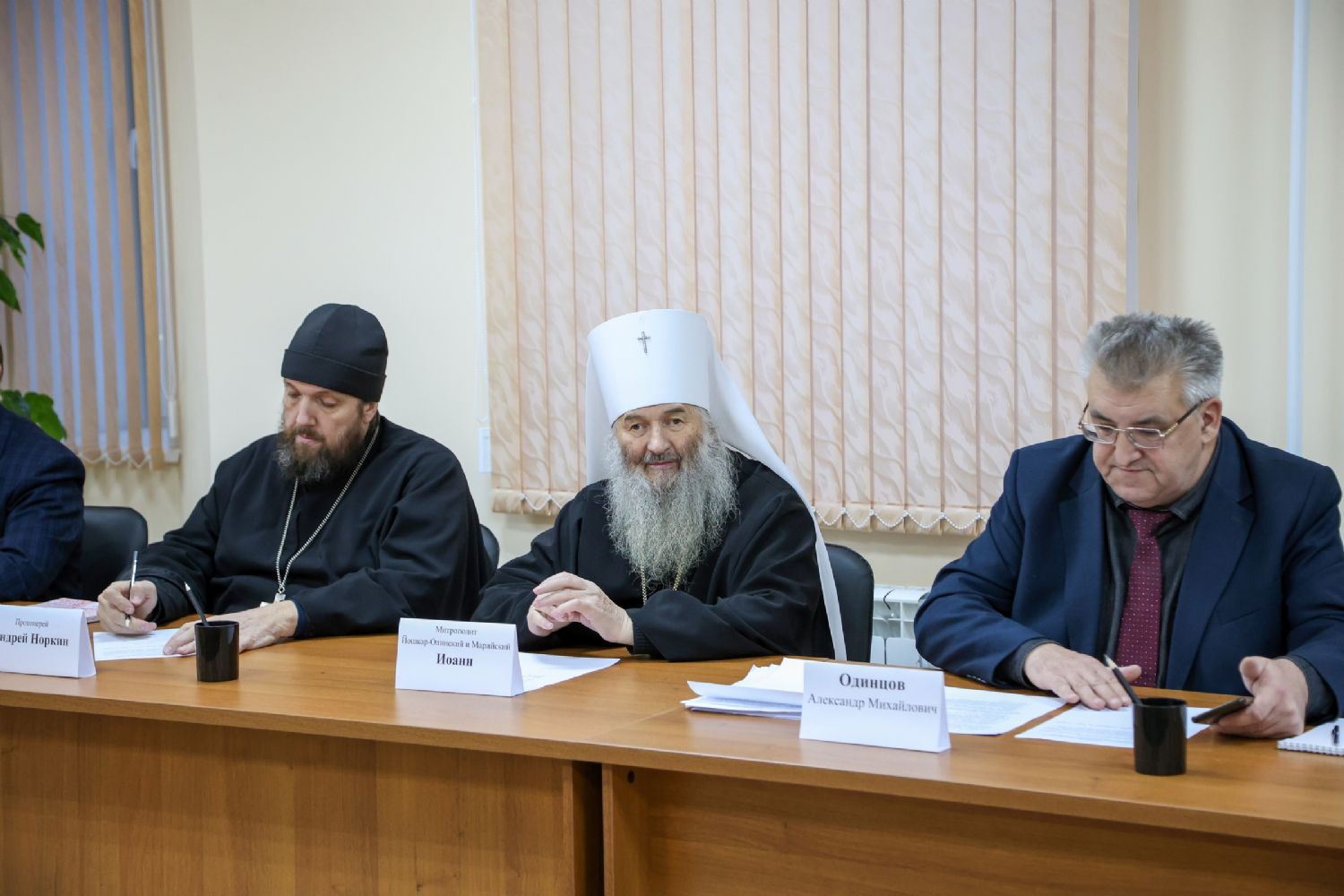 Собрание возглавили два сопредседателя регионального отделения ВРНС – митрополит Йошкар-Олинский и Марийский Иоанн и председатель регионального отделения Общества «Царьград» в РМЭ Алексей Сердюков. Вел собрание директор Государственного архива Республики Марий Эл, член Правления регионального отделения ВРНС Александр Одинцов.