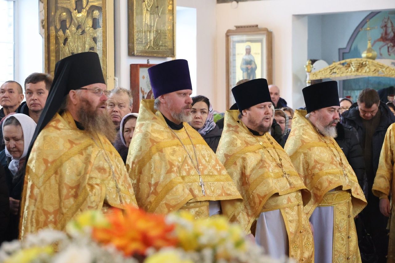 Архипастырям сослужили клирики Волжской епархии: протоиерей Виталий Михеев, иерей Александр Усков, иерей Сергий Першаков, иеромонах Авель (Крашенинников), иерей Николай Аникин, иерей Герман Михайлов, иеромонах Тихон (Белавин), диакон Иоанн Захаров, а также диакон Благовещенского кафедрального собора г. Йошкар-Олы диакон Андрей Дружинин. Песнопения исполнил архиерейский хор под управлением Любови Михеевой.