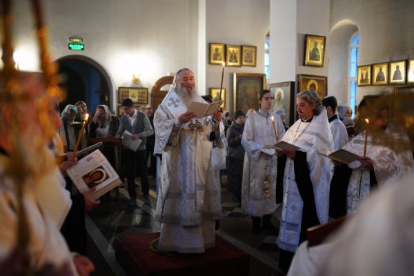 Митрополит Иоанн возглавил вечерню с акафистом в храме Рождества Христова
