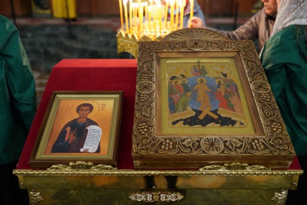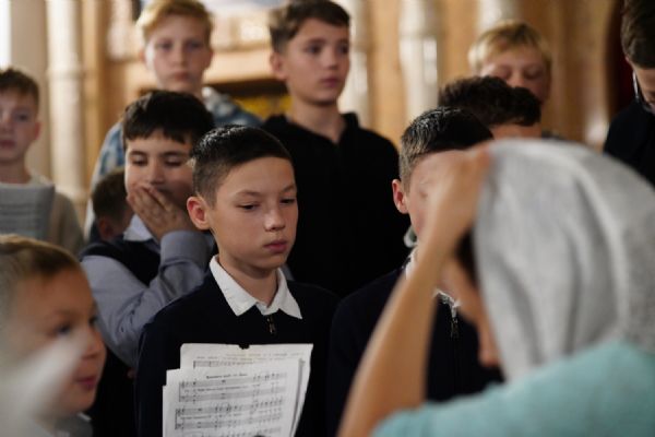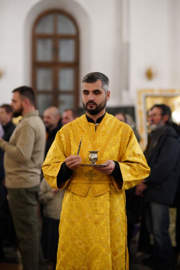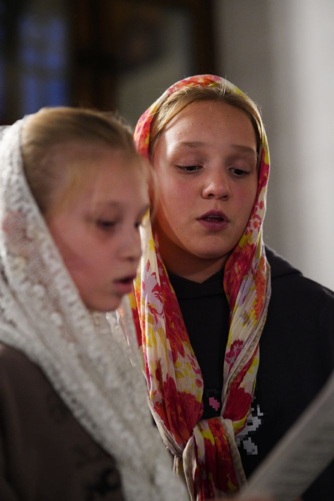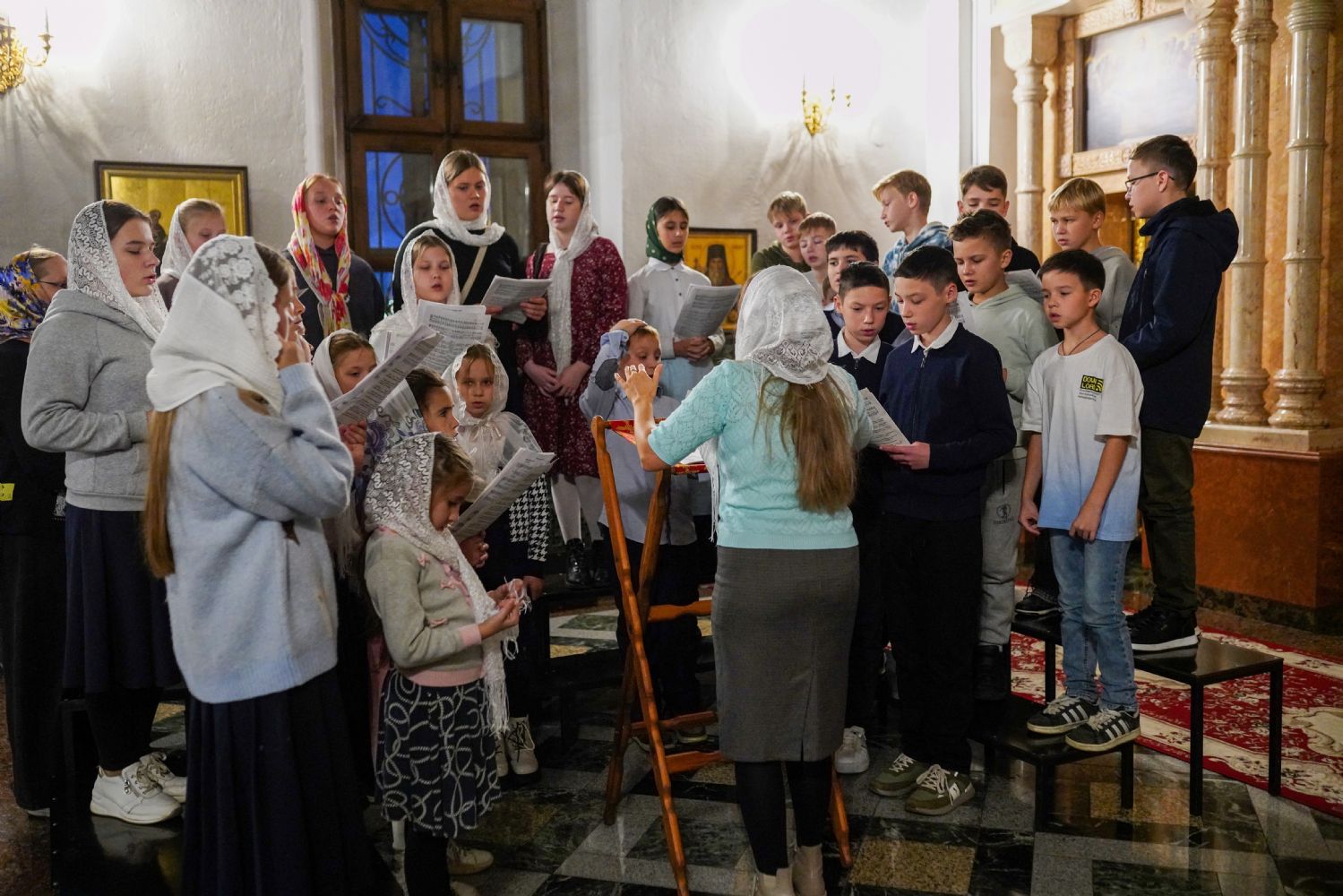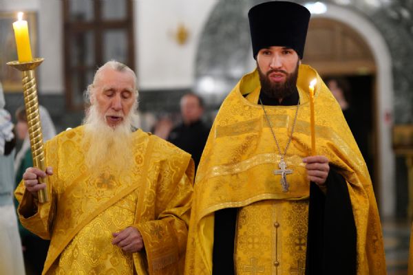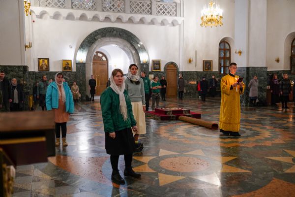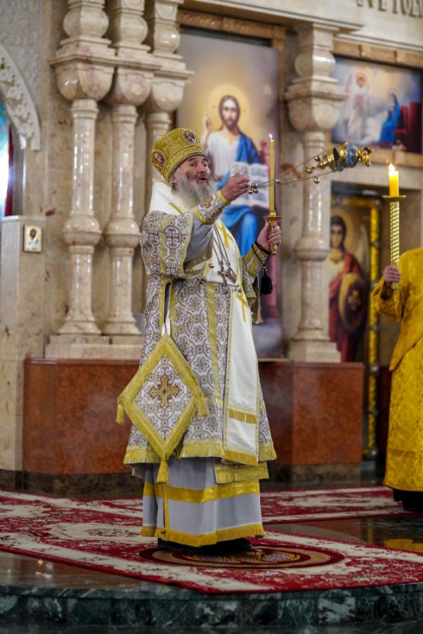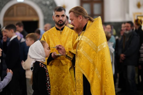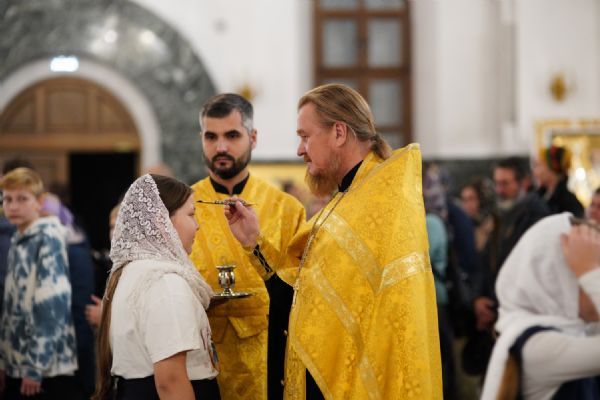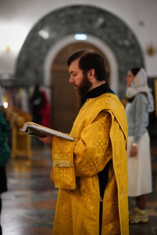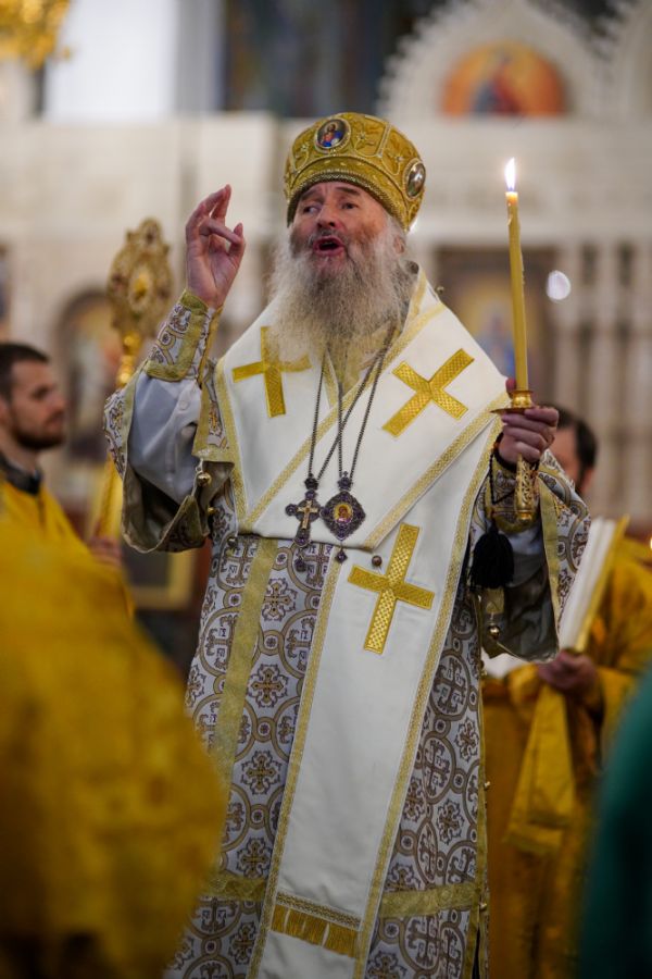 Его Высокопреосвященству сослужили ключарь собора протоиерей Сергий Поглазов, клирики собора иереи Никифор Захаров, Евгений Самойлов, Александр Староверов, Иоанн Милютин и диакон Артемий Бобоч, а также протодиакон Михаил Козловский и клирик Минусинской епархии иерей Матфей Фокша. Песнопения исполняли старший и младший составы архиерейского детско-юношеского хора «Благовест» под управлением регентов Татьяны Черновой и Надежды Поздеевой.