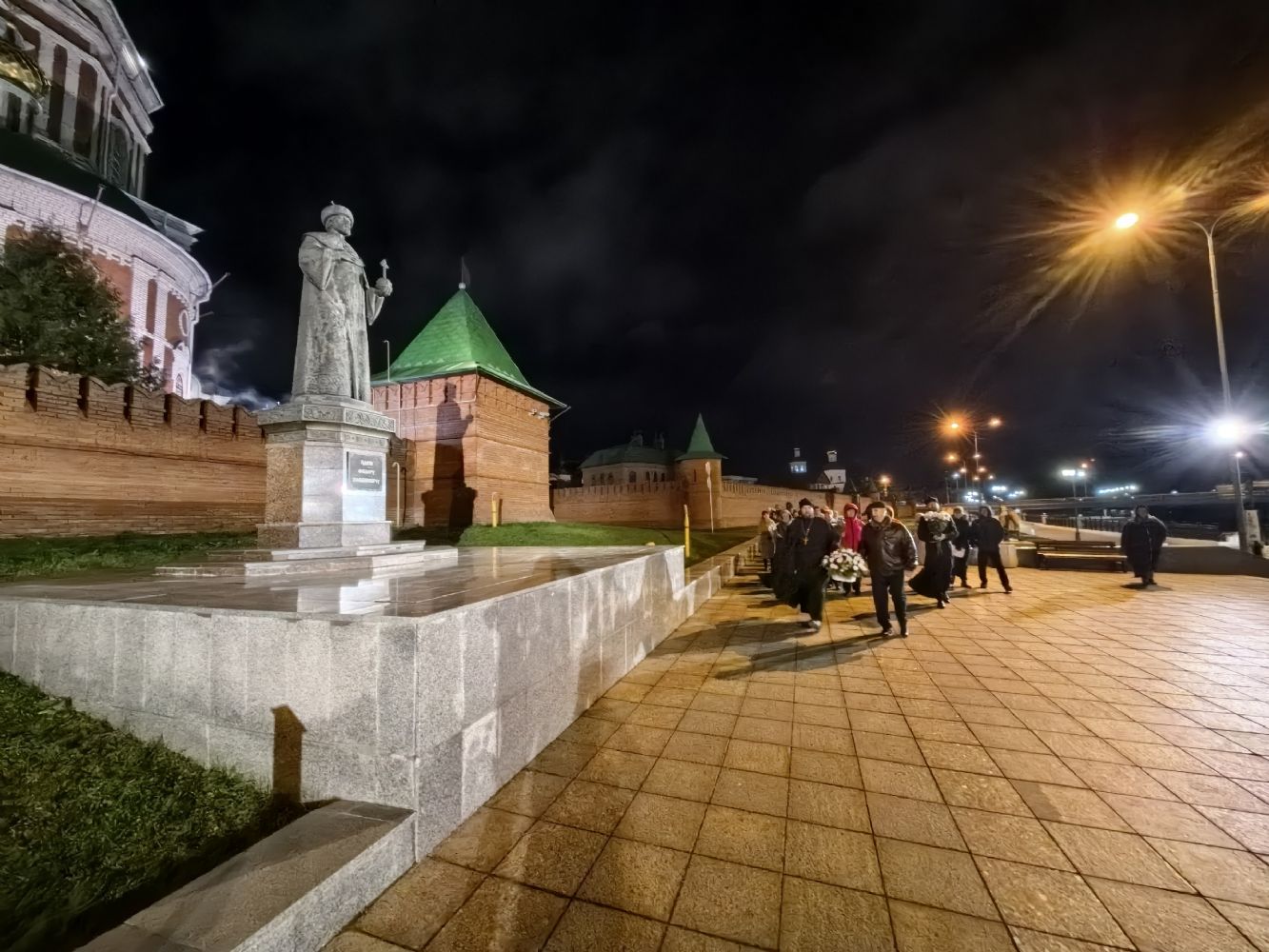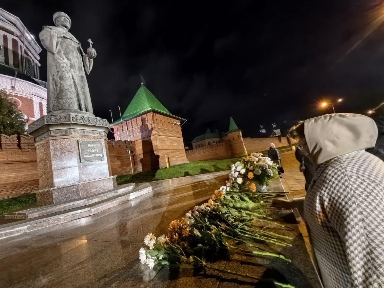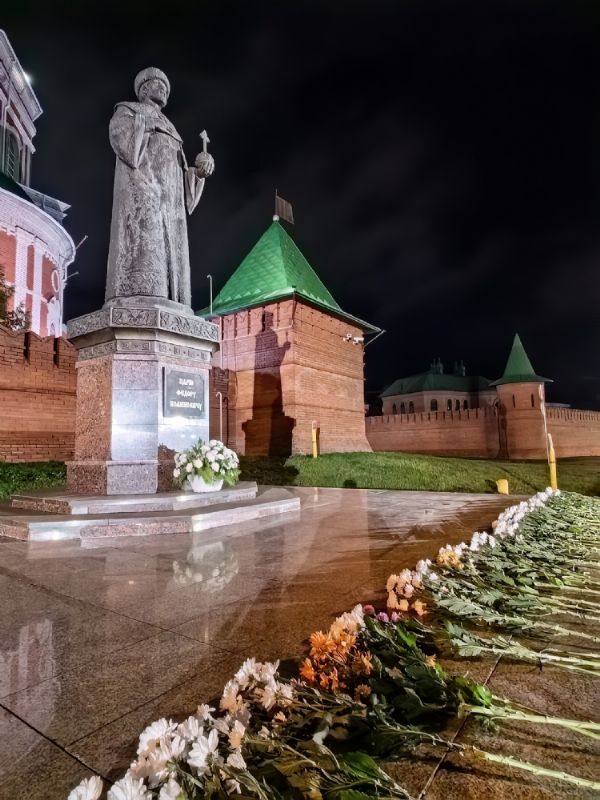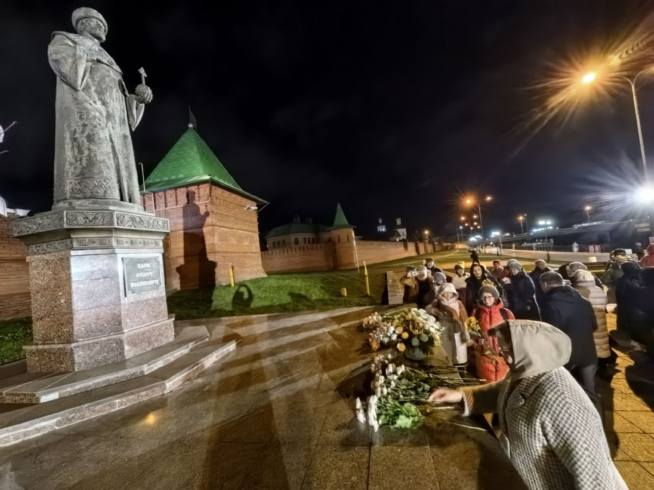 В конце мероприятия был продемонстрирован видеоролик, посвященный царю-основателю города, после чего все участники вечера, взяв в руки живые цветы, прошли на Воскресенскую набережную, где с пением величания праведному царю Феодору возложили цветы к его памятнику.