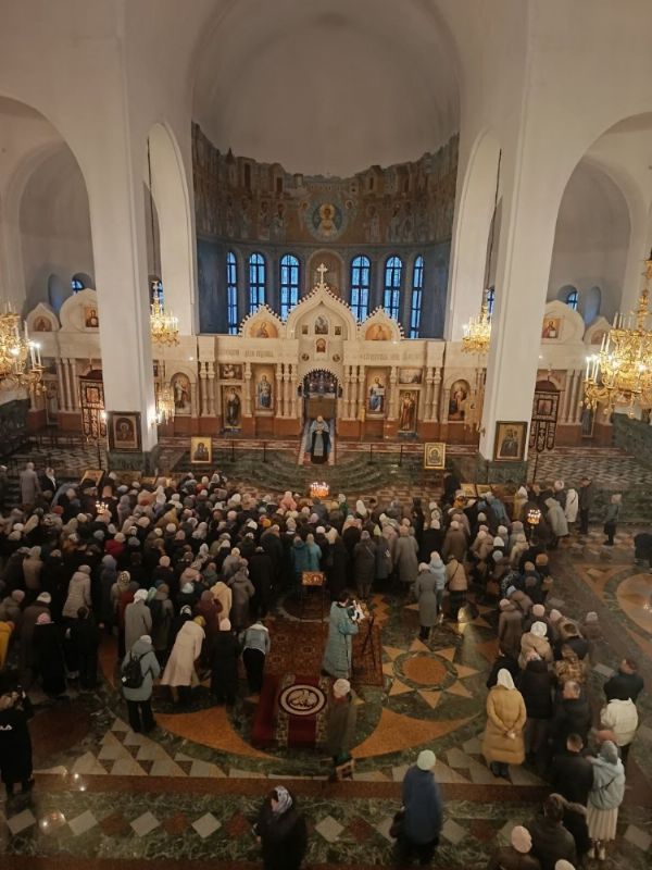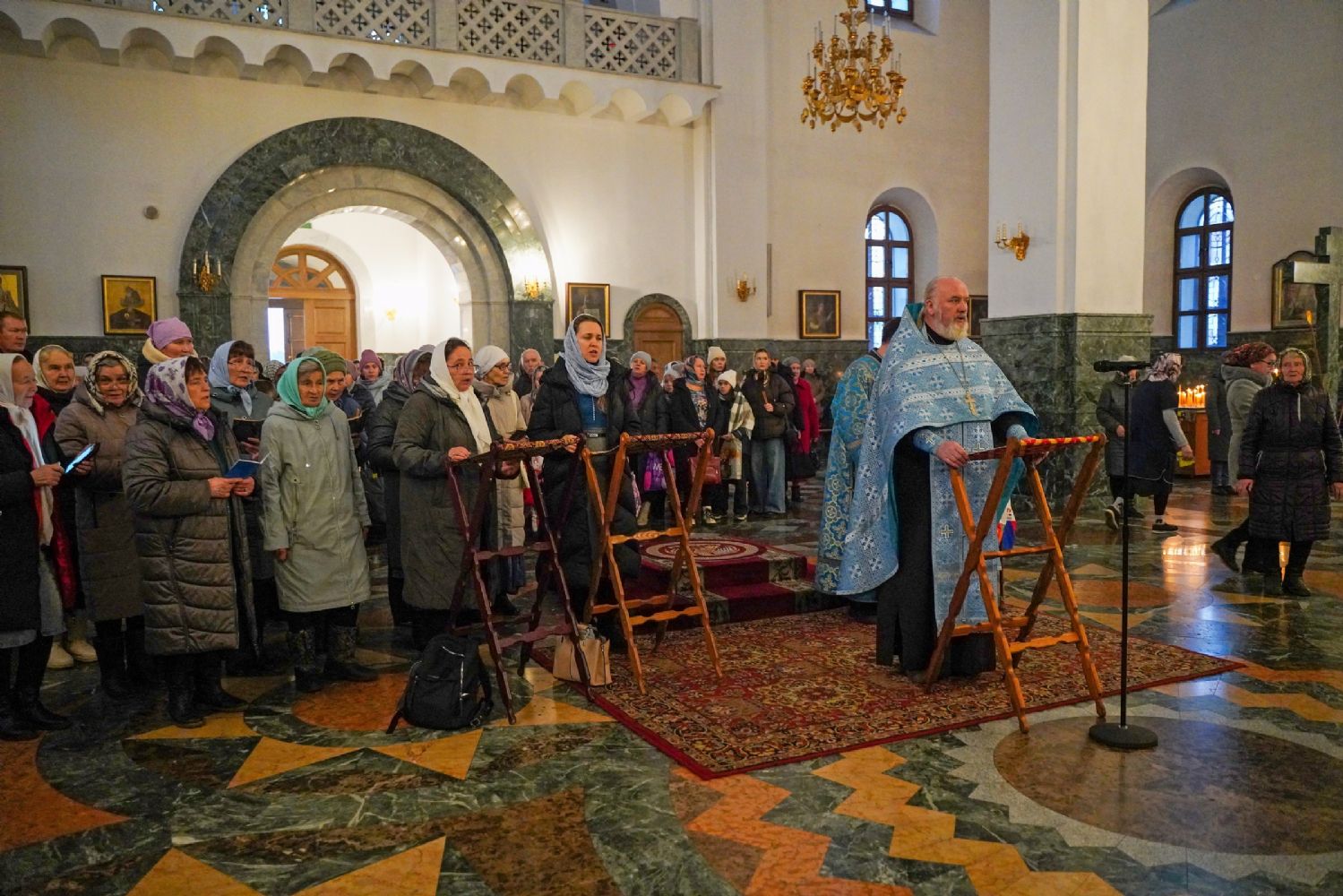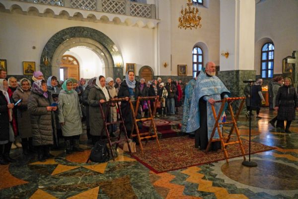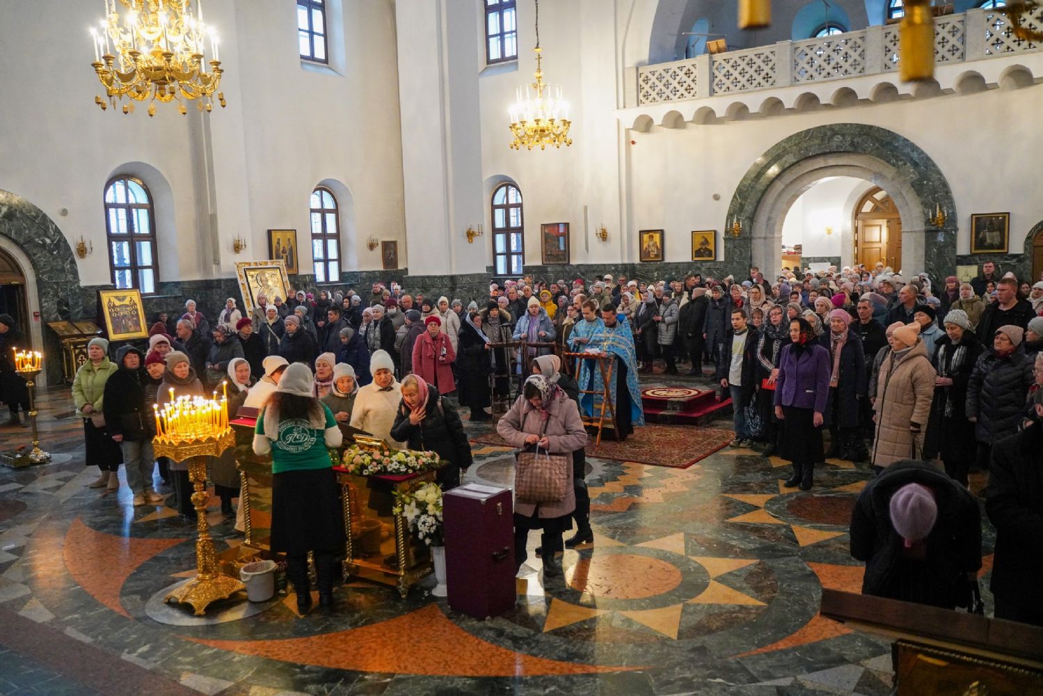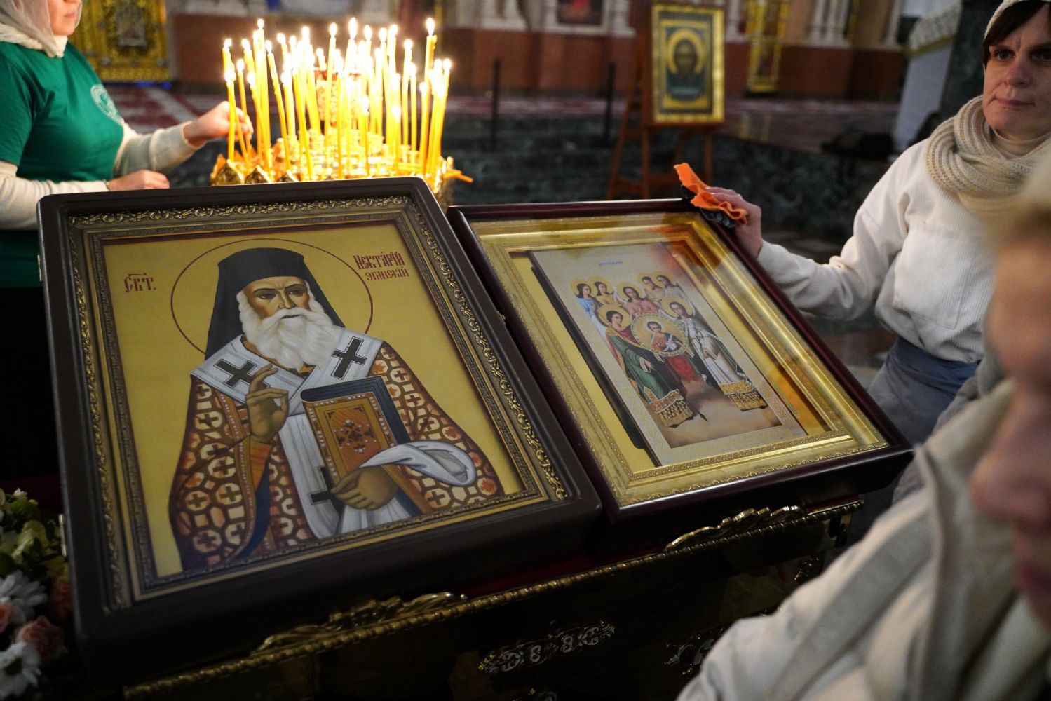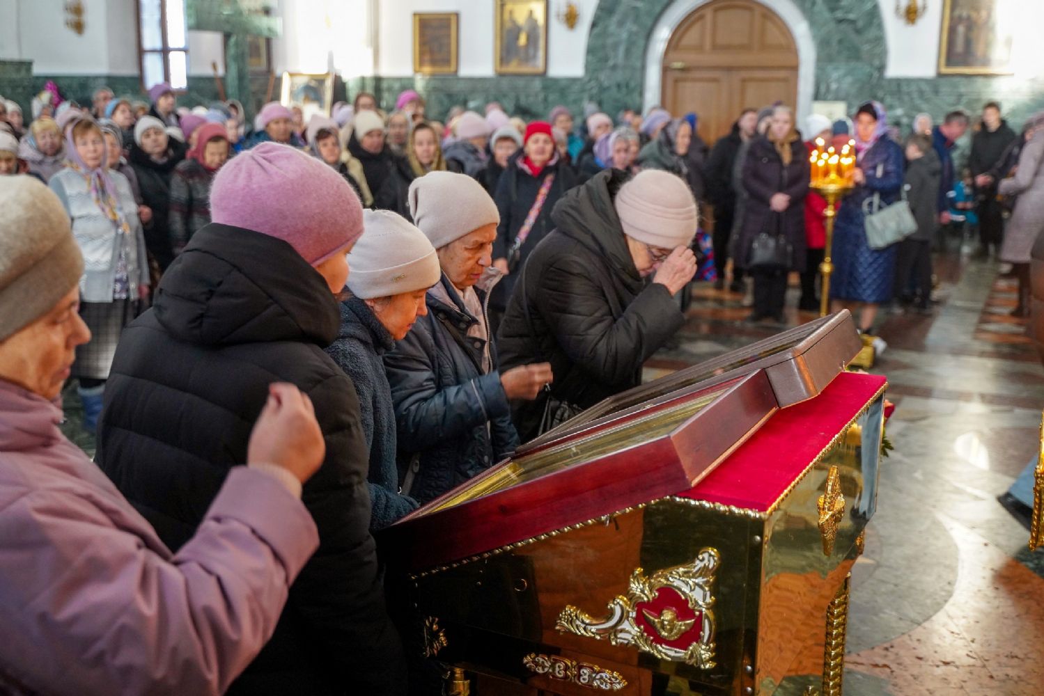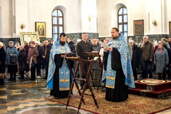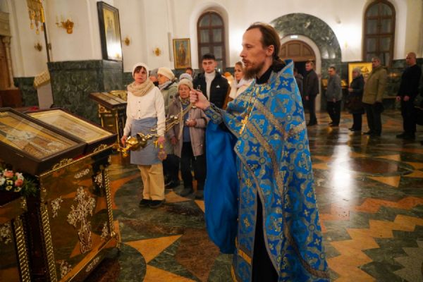 Ежедневно перед ковчегом в 12.00, 14.00 и 16.00 силами приходов епархии совершались и продолжают совершаться молебны с акафистом Пресвятой Богородице. А в воскресенье в 17.00 в кафедральном соборе вечерню с акафистом возглавит митрополит Йошкар-Олинский и Марийский Иоанн, после чего верующие проводят святыню из Йошкар-Олы