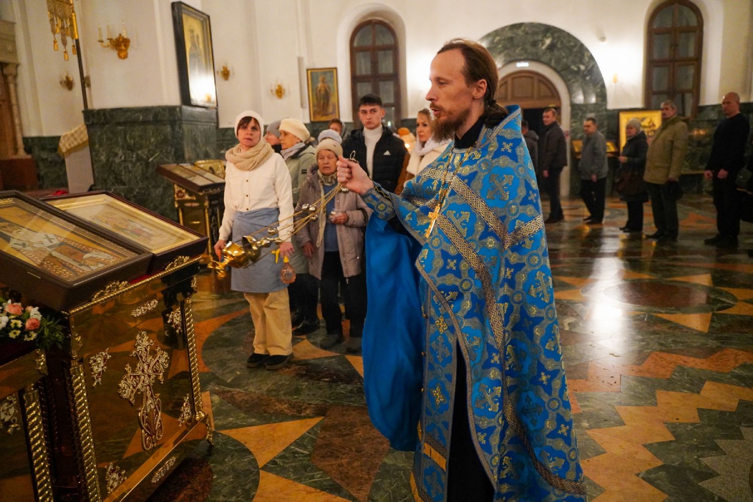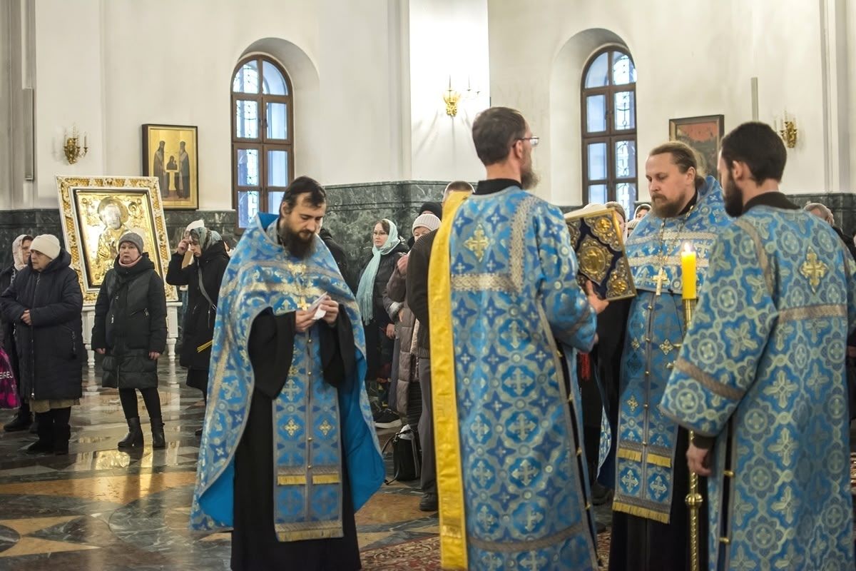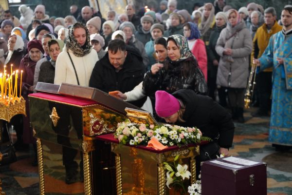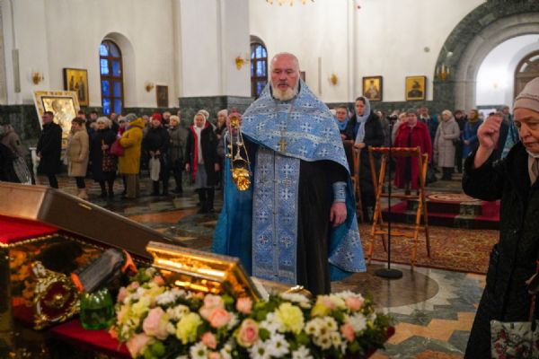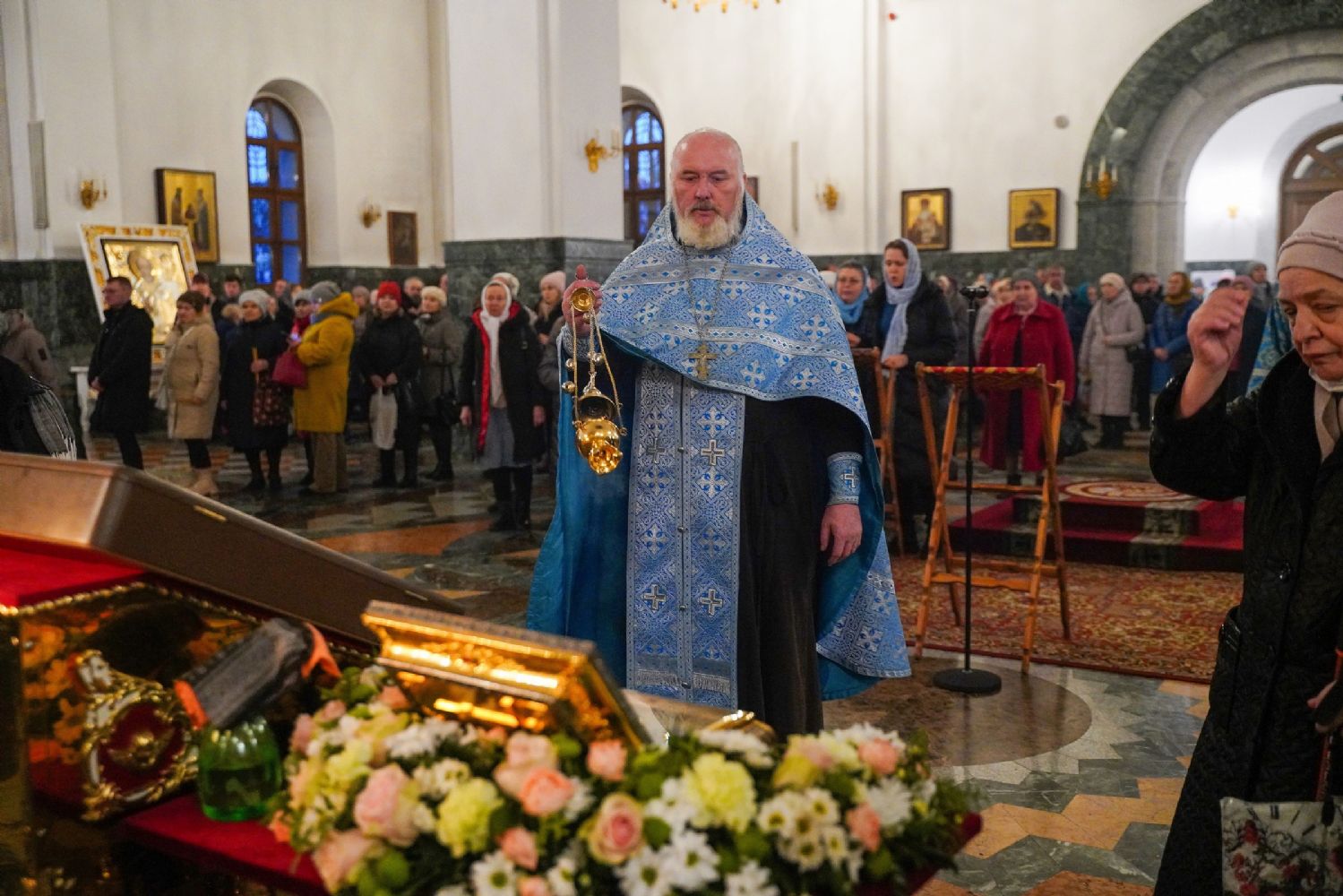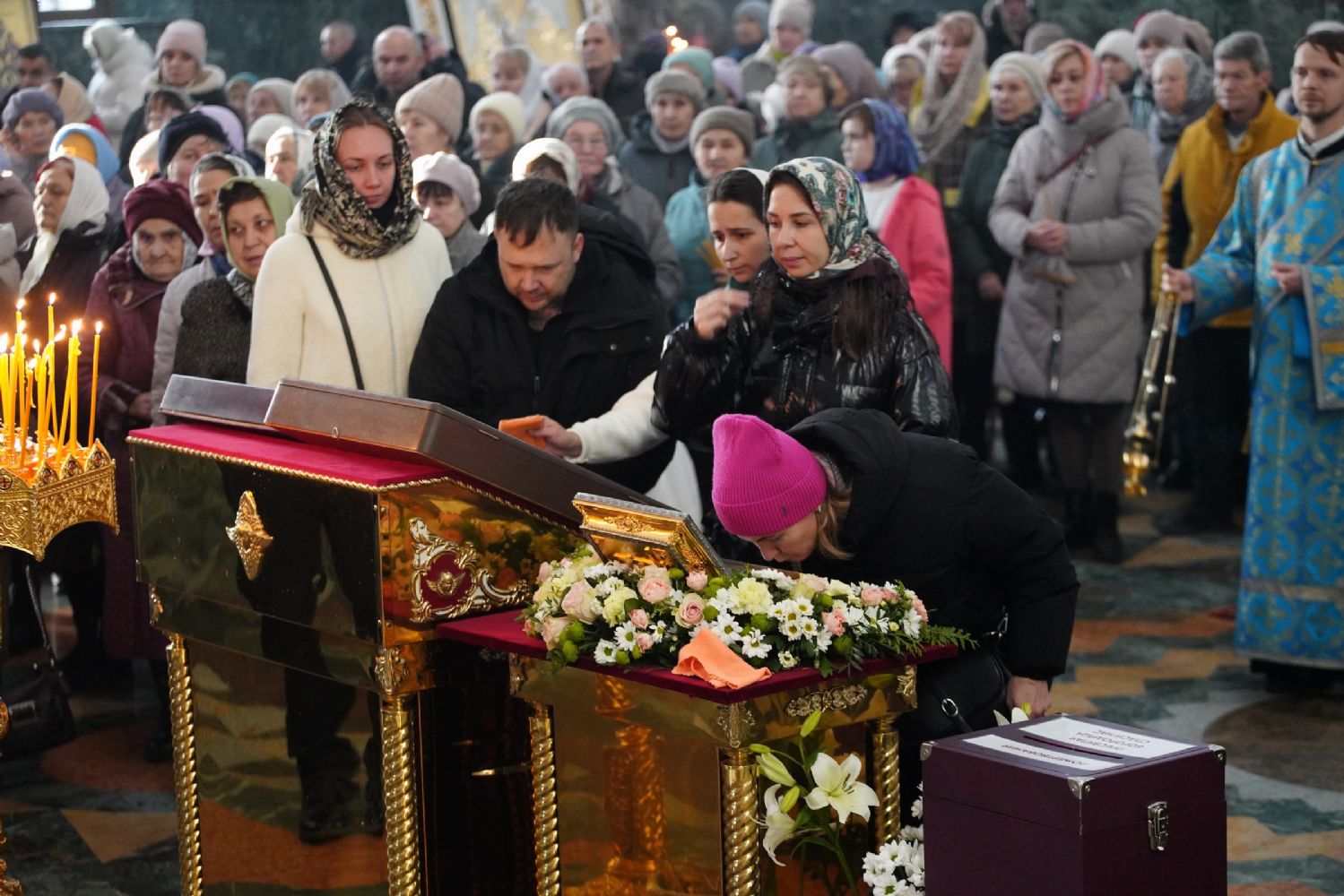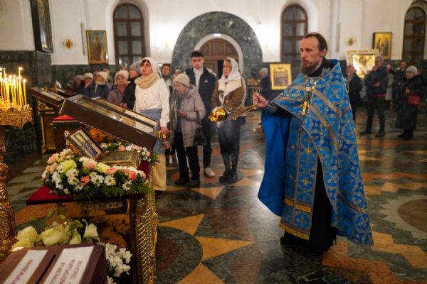 Вечером 20 ноября в Благовещенском кафедральном соборе Йошкар-Олы встретили ковчег с частью пояса Пресвятой Богородицы, а также частицами мощей Ее святых родителей Иоакима и Анны.