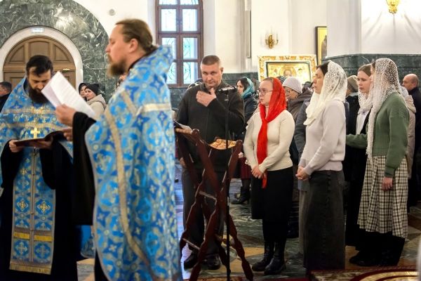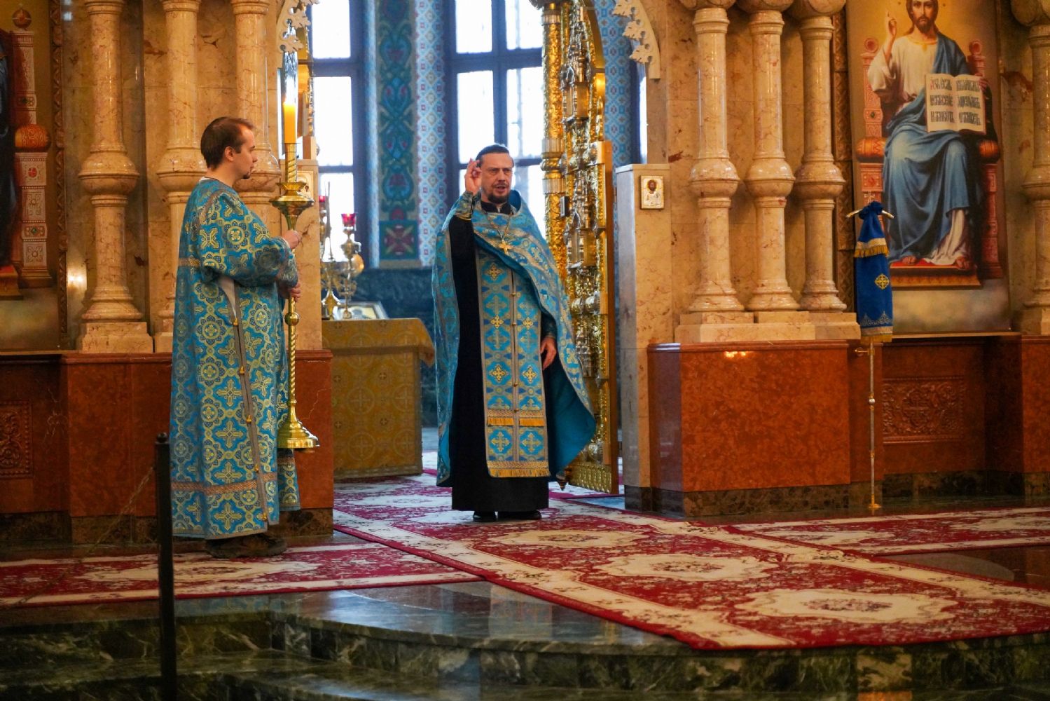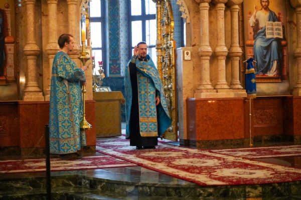 В Благовещенском соборе совершаются молебны перед ковчегом с частью пояса Пресвятой Богородицы