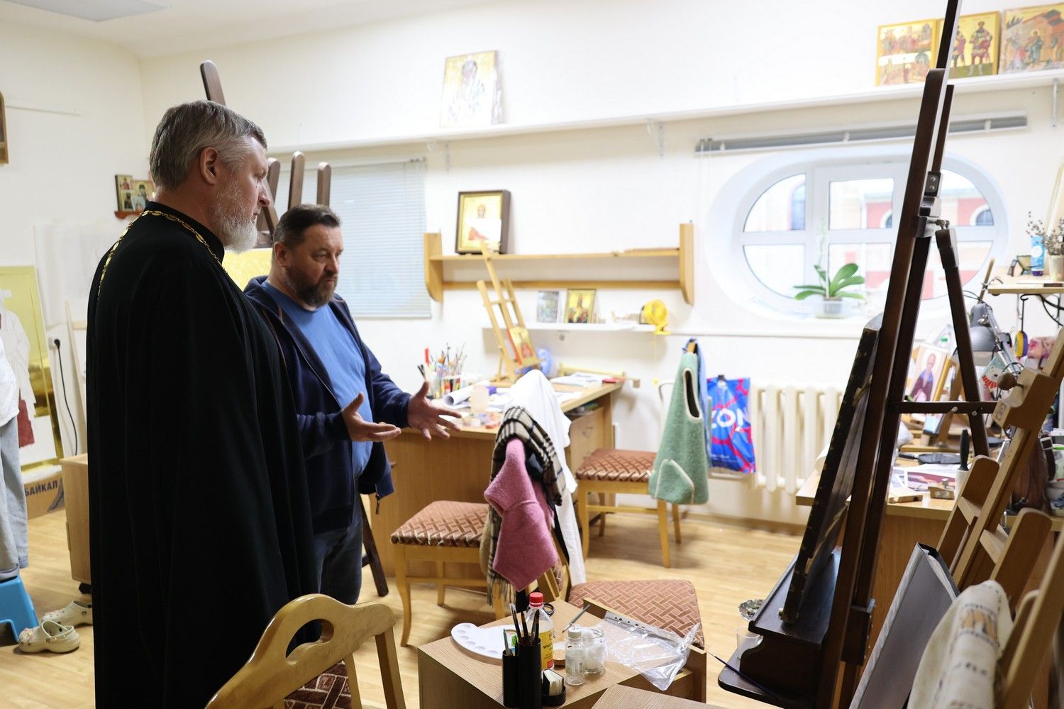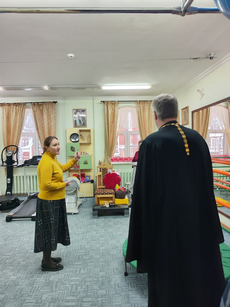 Гостей встретил пресс-секретарь Йошкар-Олинской епархии Сергей Скорик – он провел для них экскурсию по зданию Православного центра. Волжане с интересом осмотрели домовый храм в честь преподобномученицы великой княгини Елисаветы, реабилитационный центр для детей с ОВЗ «Добрые зернышки», Царевококшайскую иконописную мастерскую, ознакомились с прочими епархиальными службами, расположенными в Православном центре.