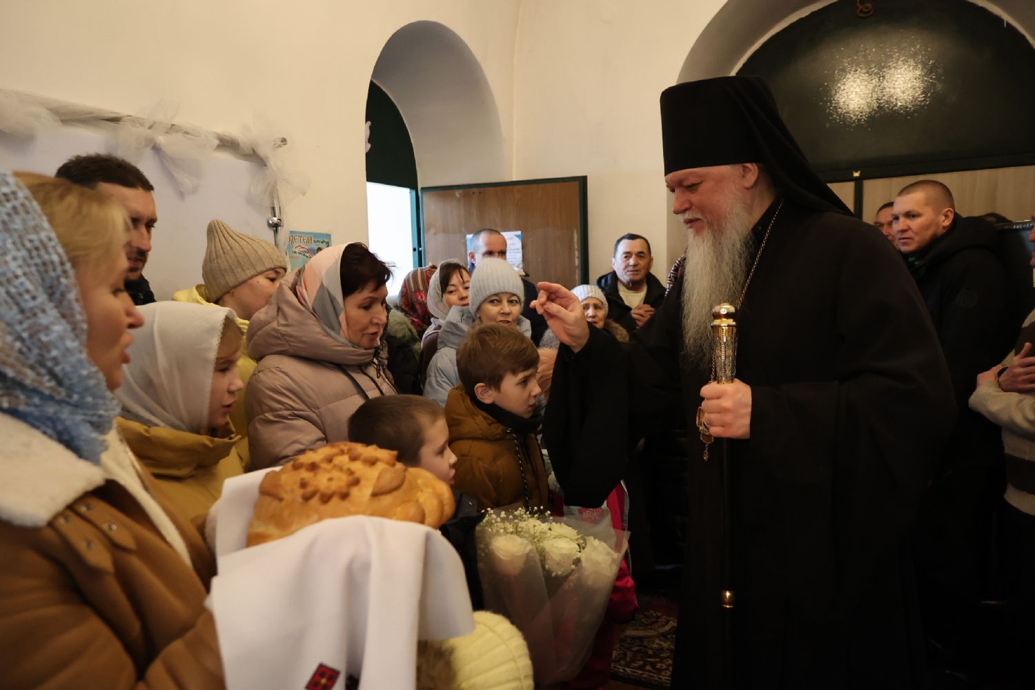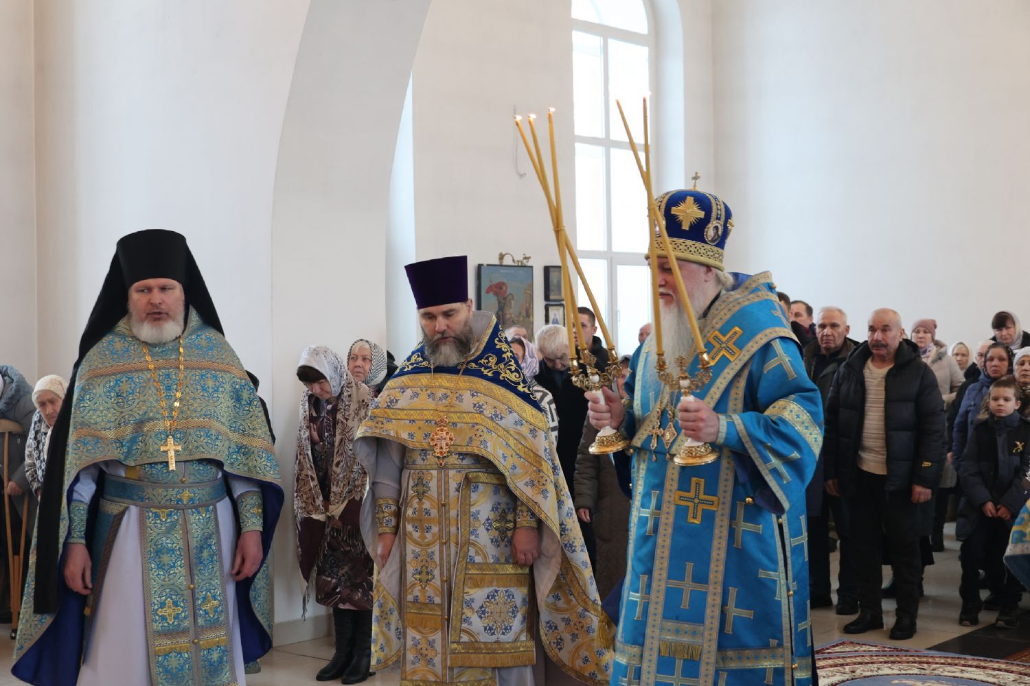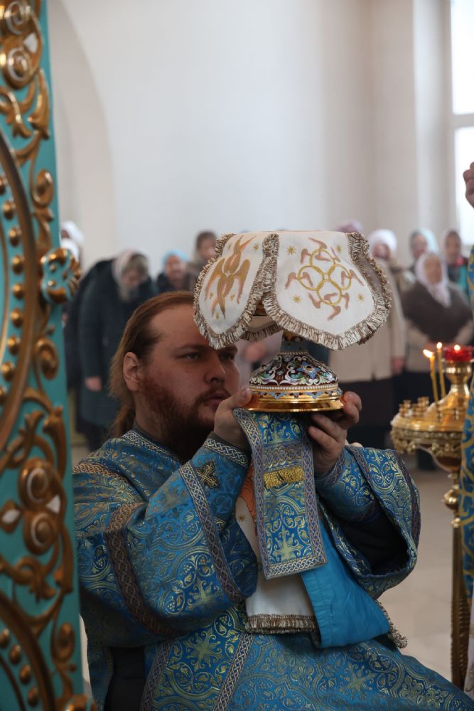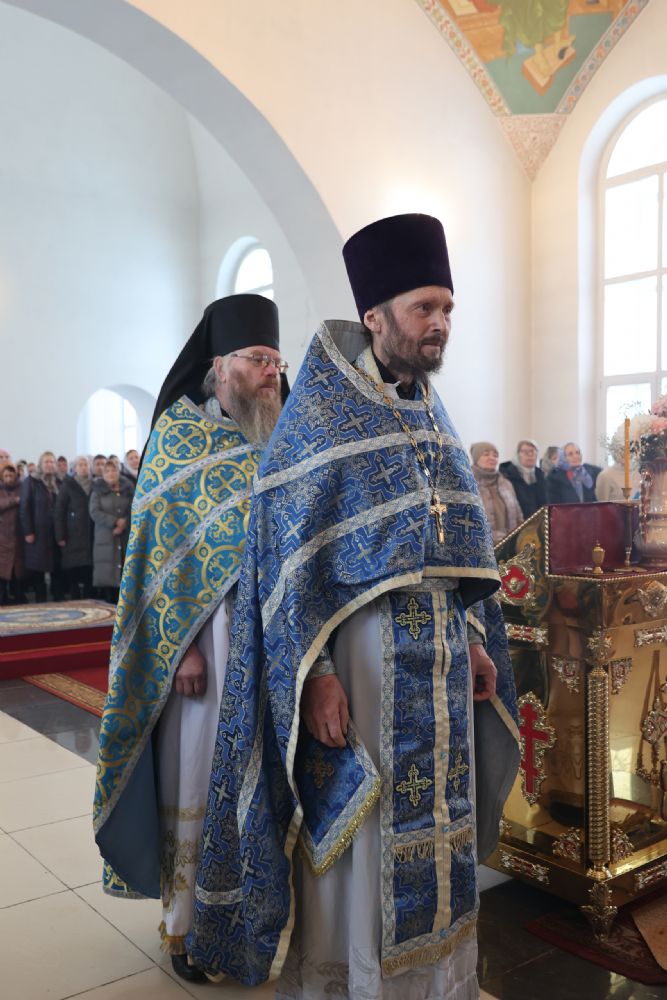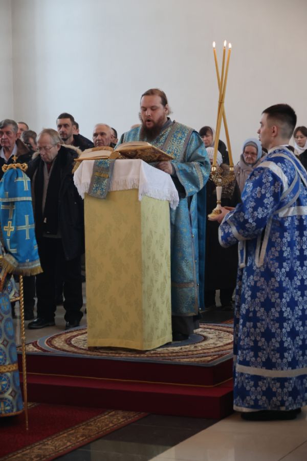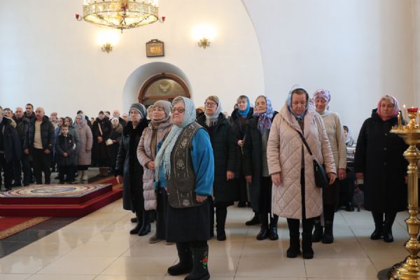Также епископ Феофан напомнил о евангельских событиях праздника Сретения Господня. Ветхозаветный закон предписывал женщинам, родившим младенца мужского пола, по истечении 40 дней принести в храме благодарственную и очистительную жертву. И хотя Рождество Иисуса Христа не нарушило девства Пречистой Матери, Она, повинуясь закону, со смирением пришла во храм, неся на руках Богомладенца Христа.