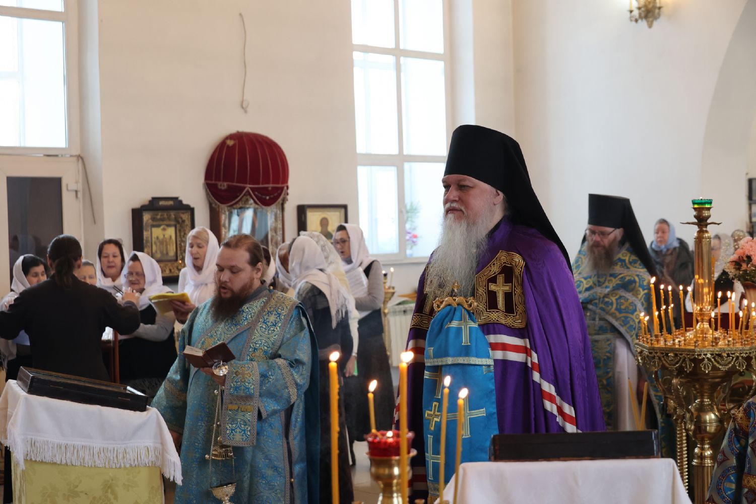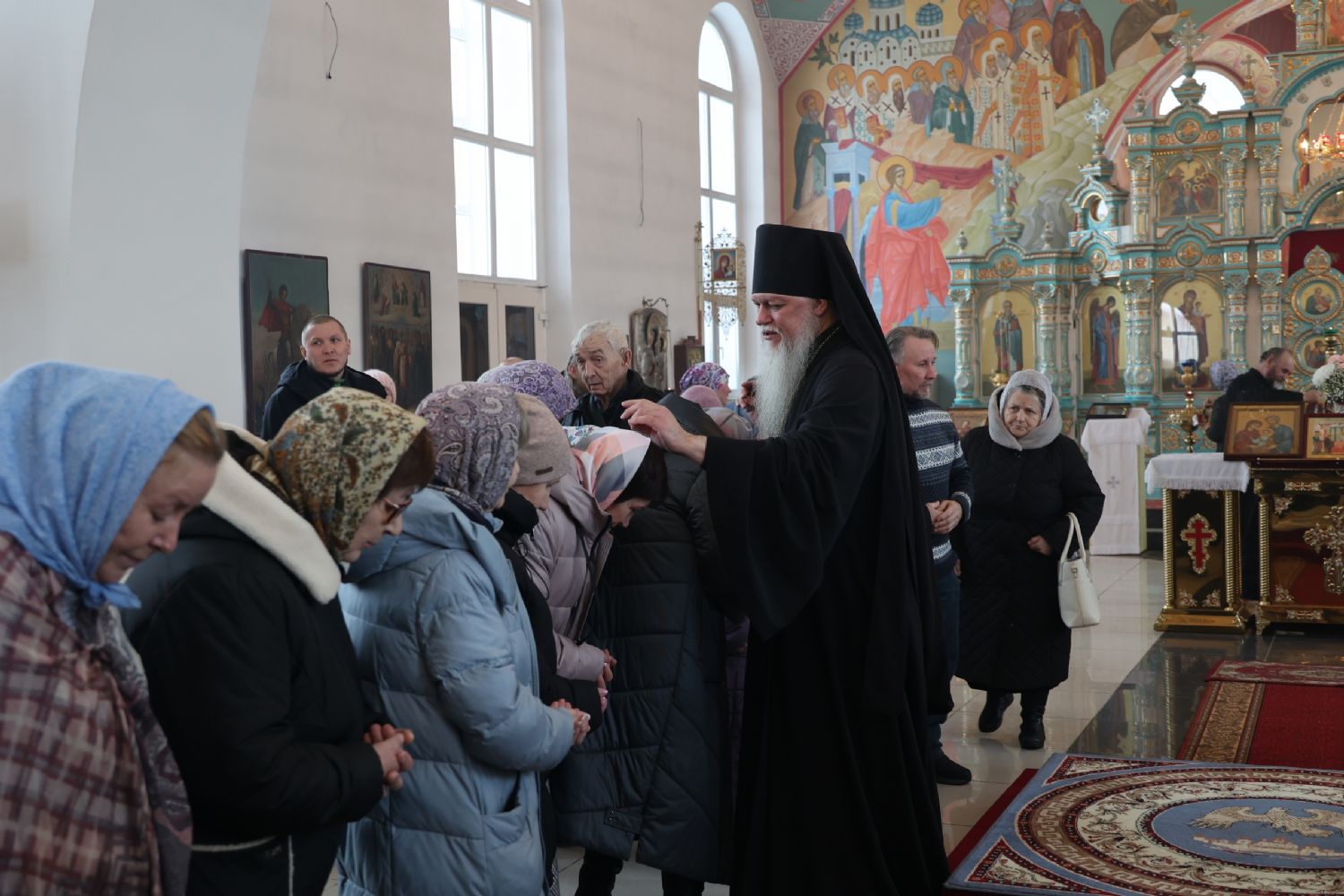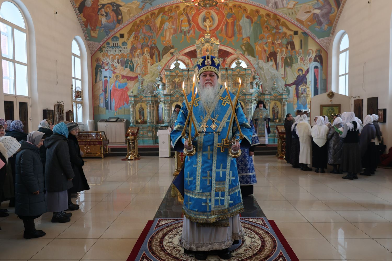 Также епископ Феофан напомнил о евангельских событиях праздника Сретения Господня. Ветхозаветный закон предписывал женщинам, родившим младенца мужского пола, по истечении 40 дней принести в храме благодарственную и очистительную жертву. И хотя Рождество Иисуса Христа не нарушило девства Пречистой Матери, Она, повинуясь закону, со смирением пришла во храм, неся на руках Богомладенца Христа.