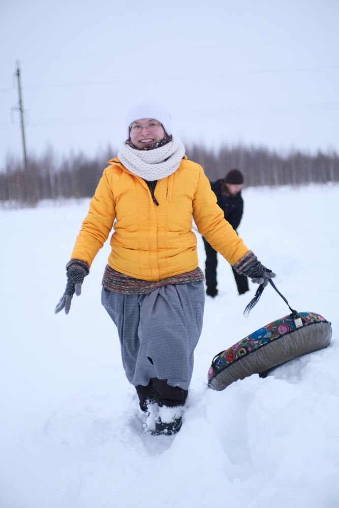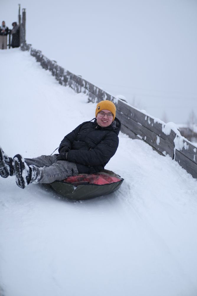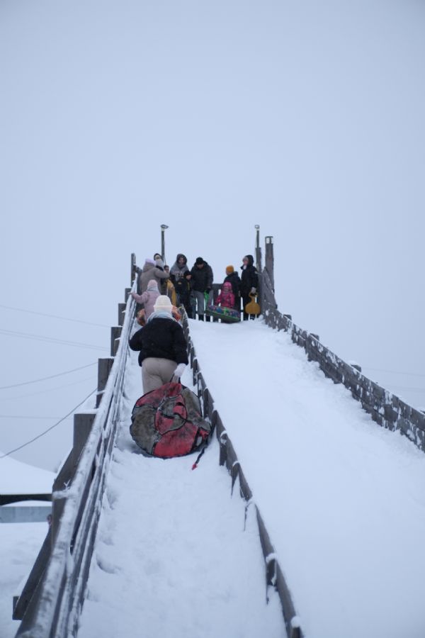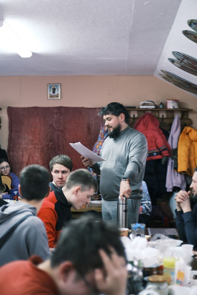 Праздничная программа продолжилась весёлыми гуляниями. Молодые люди отправились на горку, где с радостью и задором катались на «ватрушках». Затем участники мероприятия переместились в трапезную. Ребята приготовили сочные сосиски на мангале, а девушки заботливо накрыли стол. За тёплой беседой и угощением молодёжь успела сыграть в познавательную викторину, спеть любимые песни, душевно побеседовать.